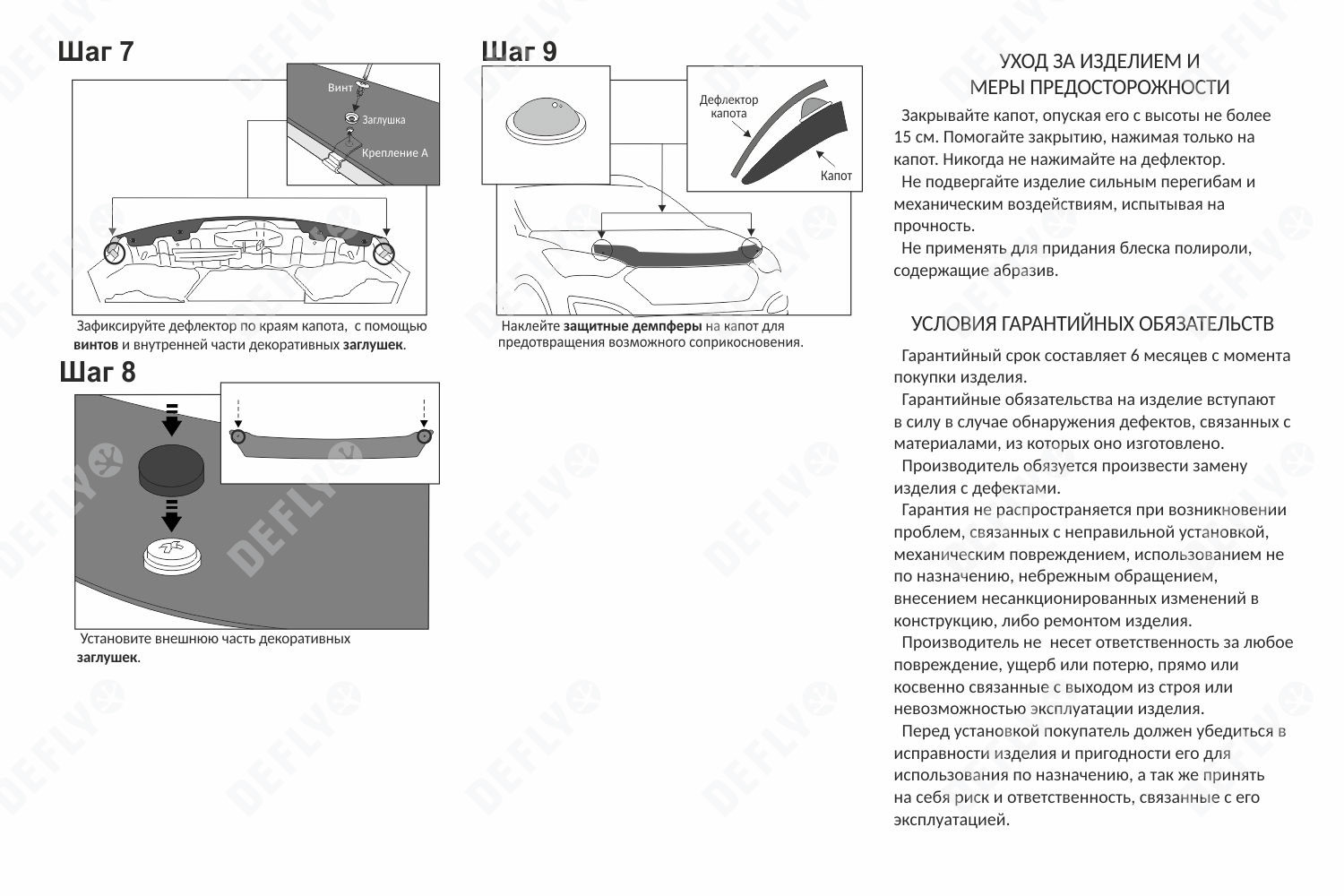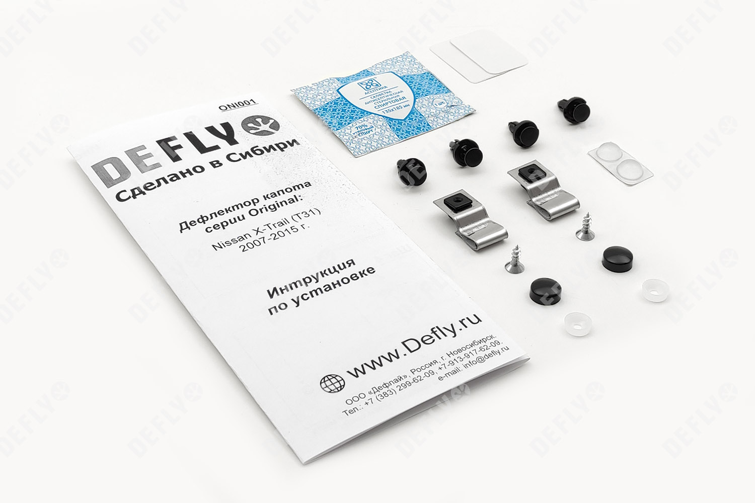 Дефлекторы капота от производителя “Defly” cерии «Original» минимально влияют на аэродинамические характеристики автомобиля и органично вписывается в его дизайн. Ребро жесткости, созданное загибом передней части дефлектора, увеличивает прочность конструкции и надежно защищает край капота от сколов. Уникальные системы креплений серии «Original» разрабатываются индивидуально для каждой модели автомобиля. Максимально надежная фиксация дефлектора обеспечивается за счет установки пластиковых клипс в штатные места, с внутренней стороны капота, и дополнительных фиксаторов по краю изделия. Дополнительные демпферы предотвращают вибрации дефлектора при движении. Изделие легко снимается, что позволяет беспрепятственно мыть, красить и производить необходимые действия с транспортным средством. Наклейку с логотипом автомобиля можно легко удалить.