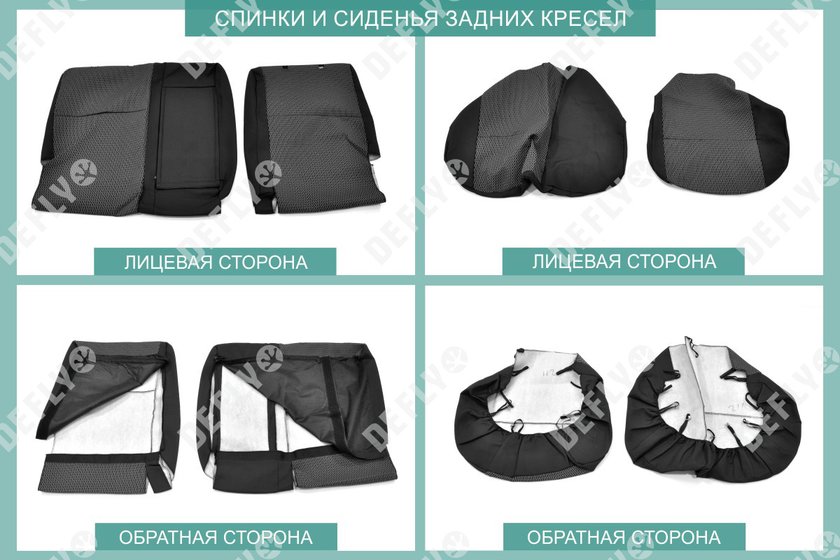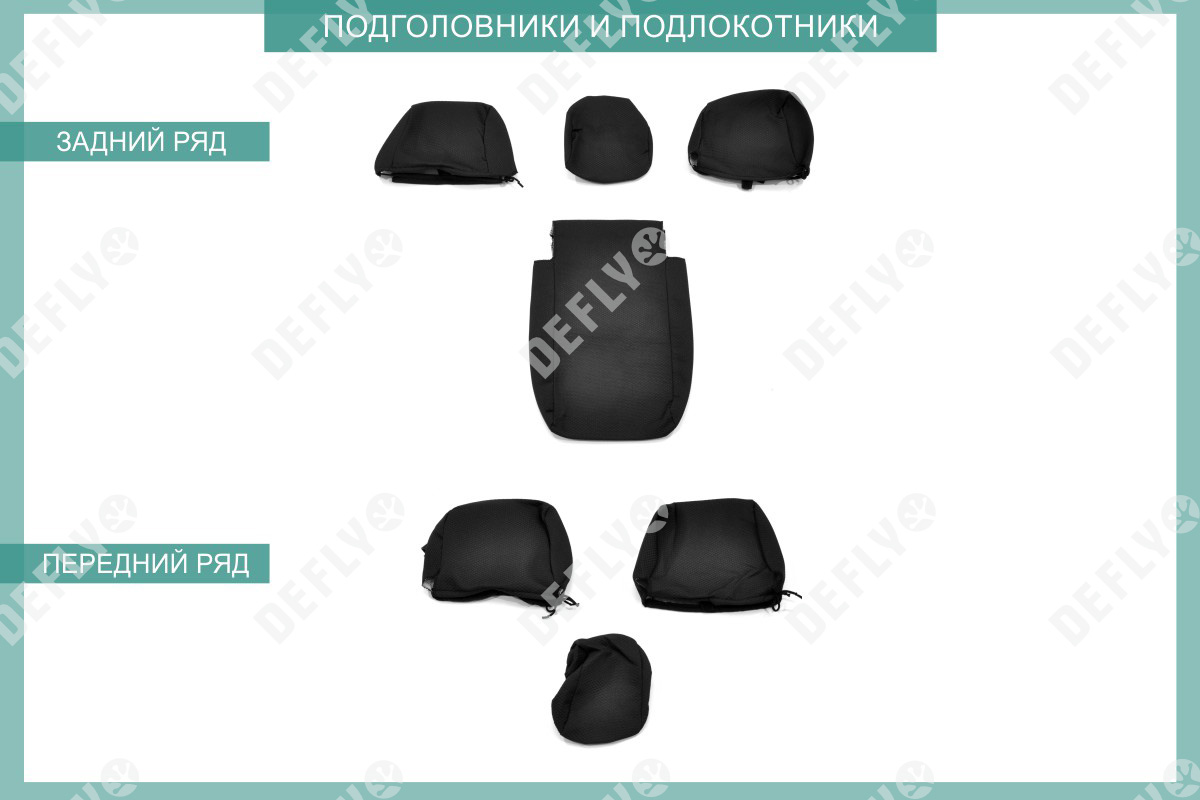 Материал: Жаккард, Цвет: Черный и темно-серый (оттенок и рисунок ткани может незначительно отличаться). Модельные чехлы от производителя “Defly” индивидуально сконструированы для каждого автомобиля. Изготовленные по лекалам оригинальных кресел, чехлы гарантируют идеальную посадку. В комплектацию входят детали всех элементов салона: передних кресел, заднего дивана, третьего ряда сидений, подголовников, подлокотников и т.д. Спинки передних кресел дополнены карманами. Все швы и технологические отверстия обработаны на оверлоке. Чехлы не ограничивают заводскую функциональность салона. Наличие в чехлах специального распускаемого шва не препятствует своевременному и полному раскрытию подушек безопасности. Специально разработанная система креплений позволяет надежно зафиксировать изделия. Авточехлы изготовлены из двух видов жаккарда: черного и темно-серого с рисунком. Подголовники, боковые и задние элементы выполнены из черного жаккарда. Центральные вставки сидений изготовлены из темно-серого жаккарда. Жаккард обеспечивает циркуляцию воздуха, что обеспечивает комфорт при длительных поездках. * Представленные фотографии являются примером исполнения и служат для демонстрации материалов и конструкции чехлов