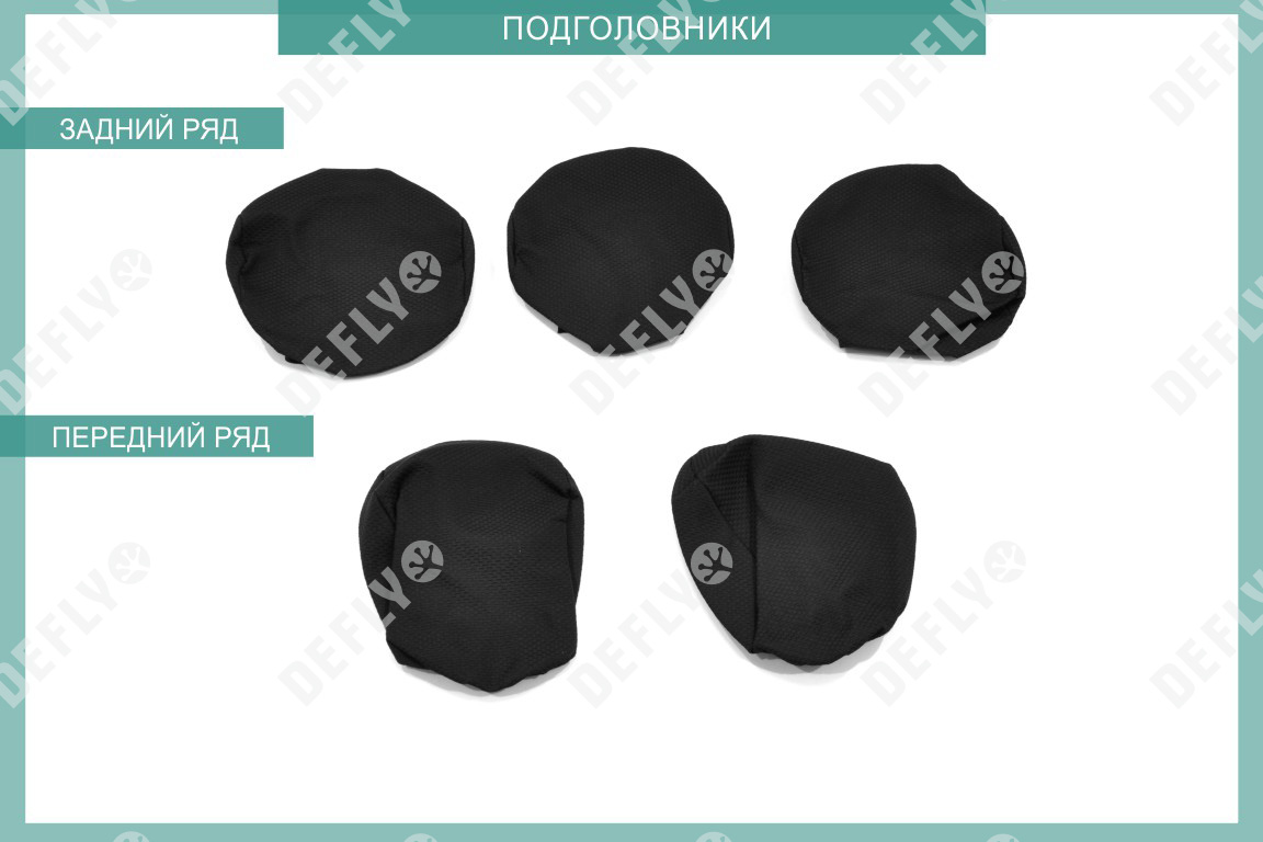 Первый ряд: Подголовник переднего кресла – 2 шт Спинка переднего кресла – 2 шт Сиденье переднего кресла – 2 шт Второй ряд: Подголовник заднего ряда – 3 шт Спинка заднего дивана – 1 шгт Сиденье заднего дивана – 1 шт Итого: 11 изделий