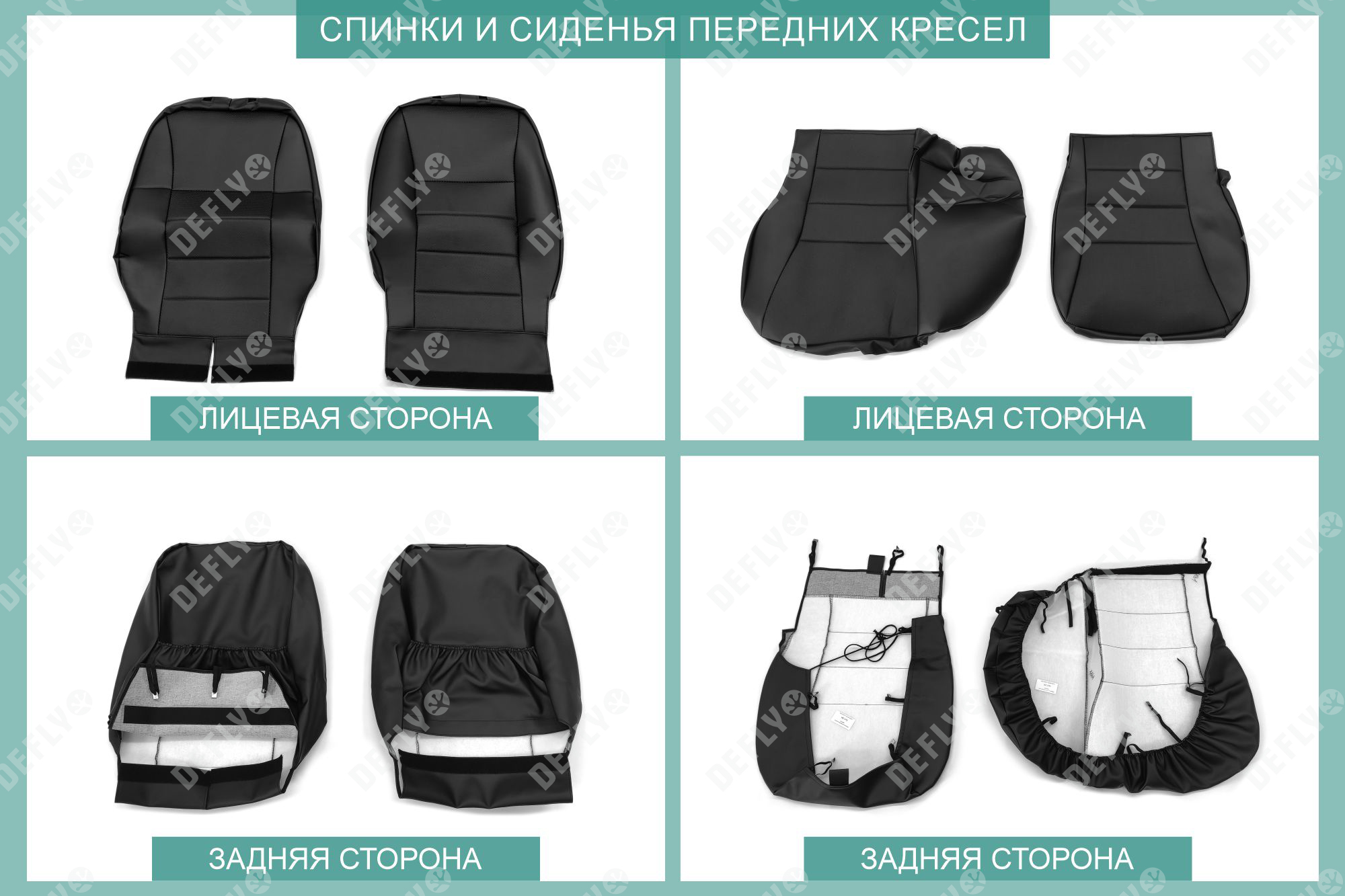 Материал: Экокожа гладкая, экокожа перфорированная, Цвет: Черный (оттенок ткани может незначительно отличаться). Модельные чехлы от производителя “Defly” индивидуально сконструированы для каждого автомобиля. Изготовленные по лекалам оригинальных кресел, чехлы гарантируют идеальную посадку. Все швы и технологические отверстия обработаны на оверлоке. Чехлы не ограничивают заводскую функциональность салона. Наличие в чехлах специального распускаемого шва не препятствует своевременному и полному раскрытию подушек безопасности. Специально разработанная система креплений позволяет надежно зафиксировать изделия. Авточехлы изготовлены из двух видов экокожи черного цвета: гладкой и перфорированной. Перфорированная экокожа используется в центральных элементах, что обеспечивает циркуляцию воздуха. * Представленные фотографии являются примером исполнения и служат для демонстрации материалов и конструкции чехлов.