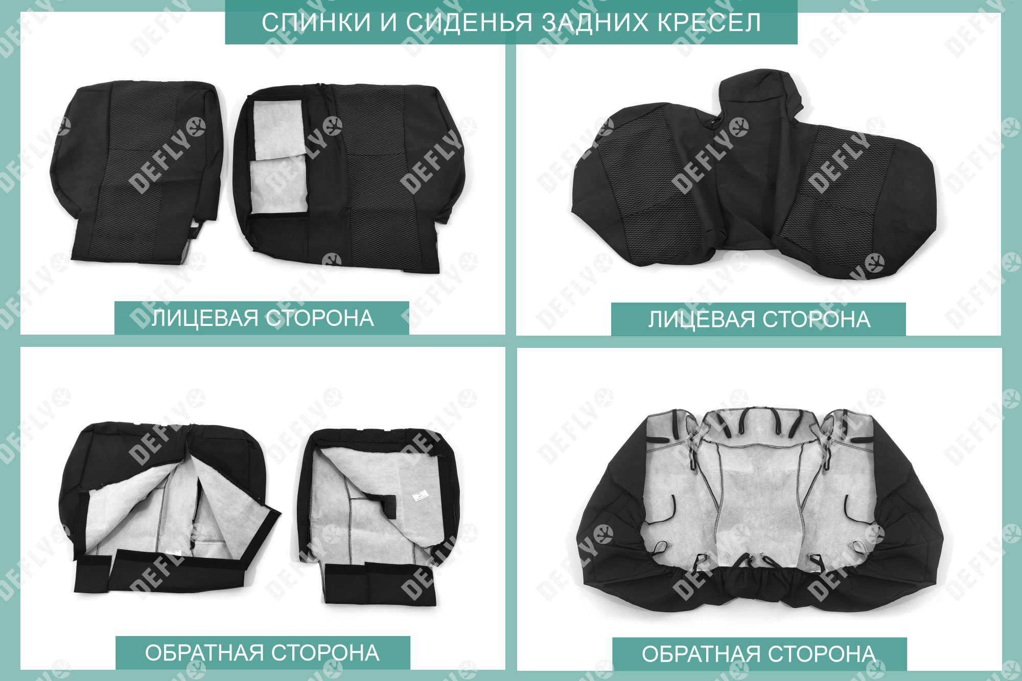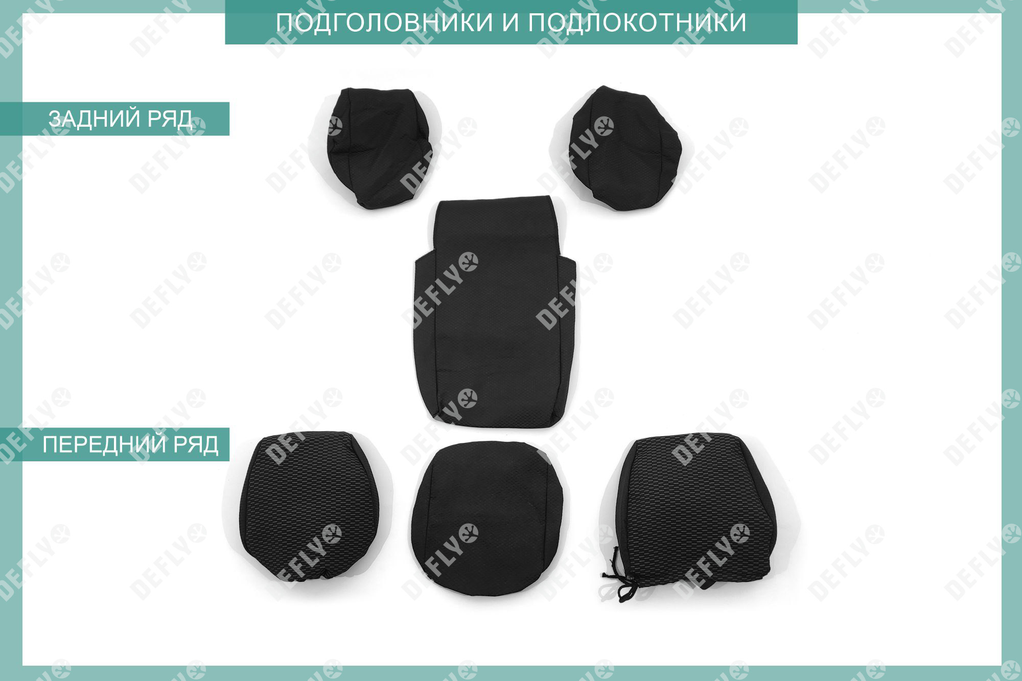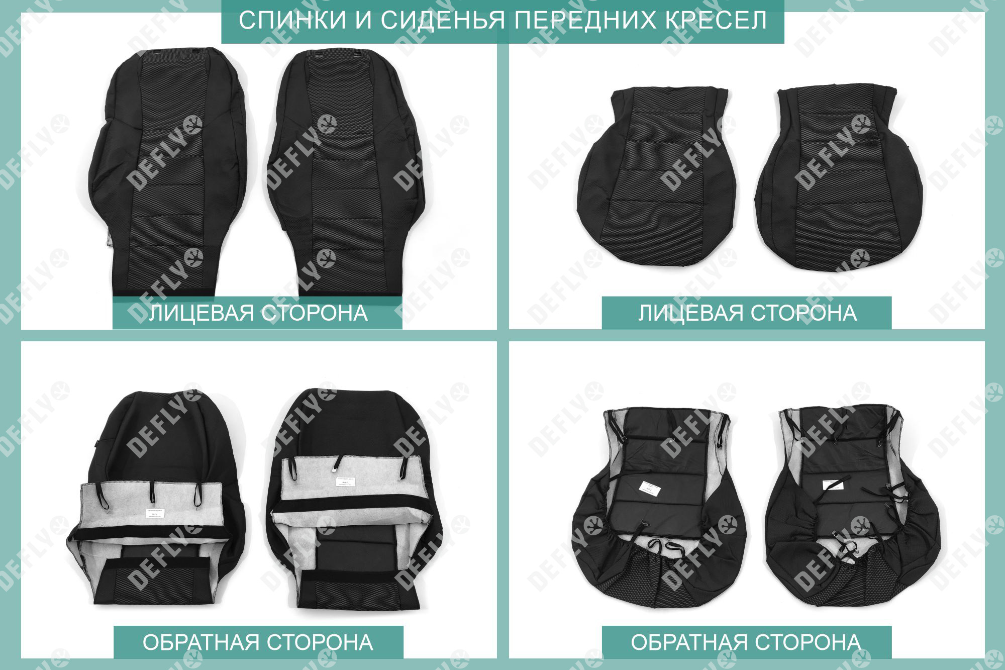 Материал: Жаккард, Цвет: Черный и темно-серый (оттенок и рисунок ткани может незначительно отличаться). Модельные чехлы от производителя “Defly” индивидуально сконструированы для каждого автомобиля. Изготовленные по лекалам оригинальных кресел, чехлы гарантируют идеальную посадку. В комплектацию входят детали всех элементов салона: передних кресел, заднего дивана, третьего ряда сидений, подголовников, подлокотников и т.д. Спинки передних кресел дополнены карманами. Все швы и технологические отверстия обработаны на оверлоке. Чехлы не ограничивают заводскую функциональность салона. Наличие в чехлах специального распускаемого шва не препятствует своевременному и полному раскрытию подушек безопасности. Специально разработанная система креплений позволяет надежно зафиксировать изделия. Авточехлы изготовлены из двух видов жаккарда: черного и темно-серого с рисунком. Подголовники, боковые и задние элементы выполнены из черного жаккарда. Центральные вставки сидений изготовлены из темно-серого жаккарда. Жаккард обеспечивает циркуляцию воздуха, что обеспечивает комфорт при длительных поездках. * Представленные фотографии являются примером исполнения и служат для демонстрации материалов и конструкции чехлов