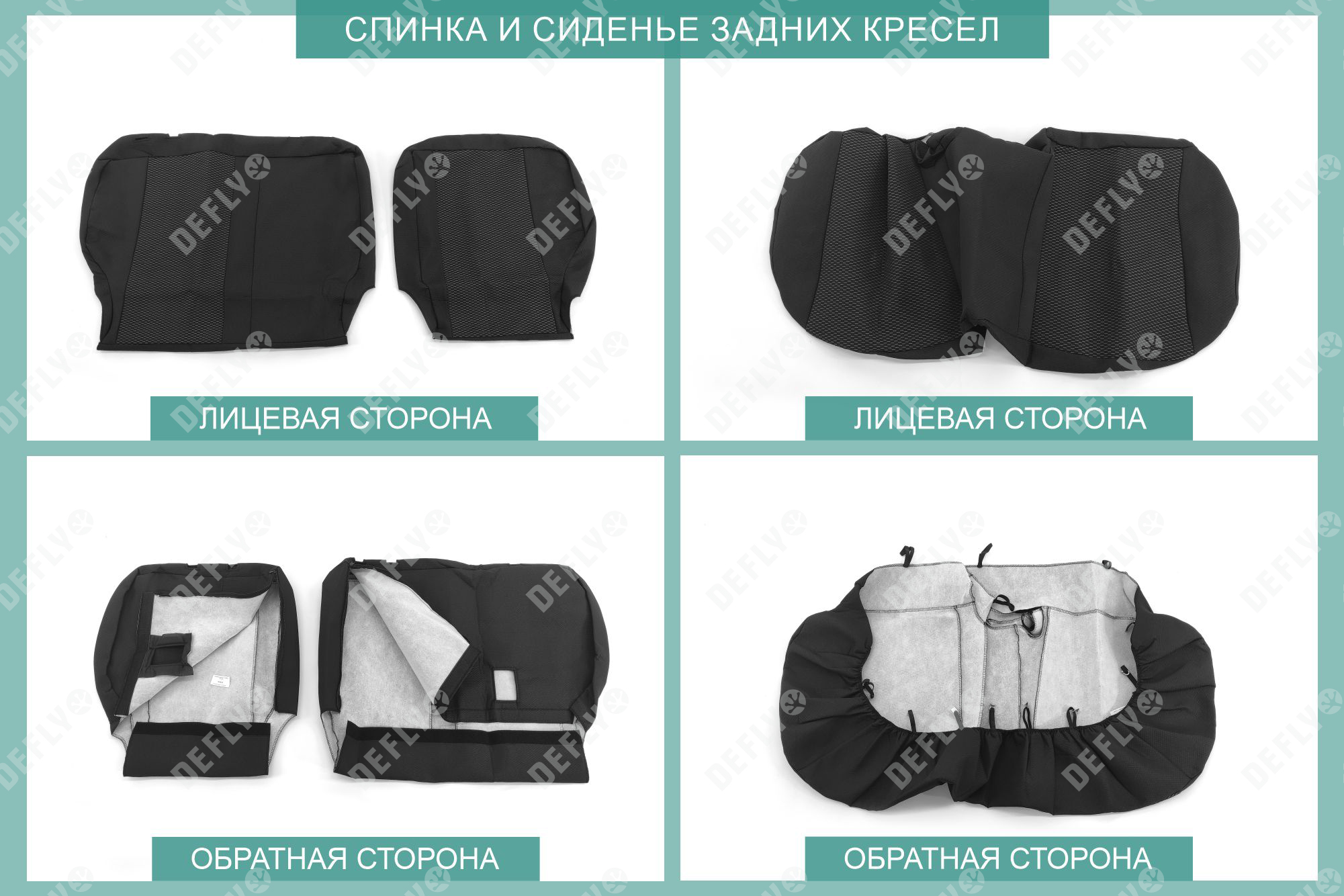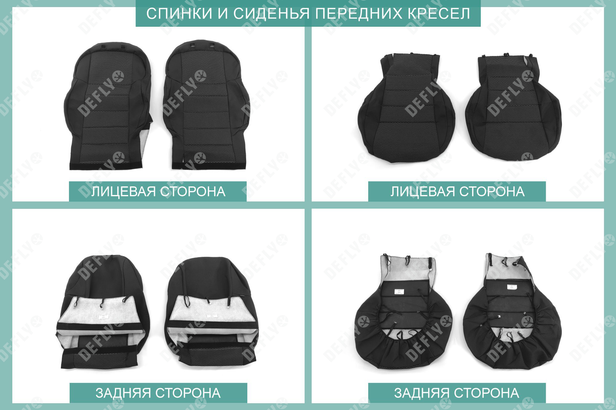 Материал: Жаккард, Цвет: Черный и темно-серый (оттенок и рисунок ткани может незначительно отличаться). Модельные чехлы от производителя “Defly” индивидуально сконструированы для каждого автомобиля. Изготовленные по лекалам оригинальных кресел, чехлы гарантируют идеальную посадку. В комплектацию входят детали всех элементов салона: передних кресел, заднего дивана, третьего ряда сидений, подголовников, подлокотников и т.д. Спинки передних кресел дополнены карманами. Все швы и технологические отверстия обработаны на оверлоке. Чехлы не ограничивают заводскую функциональность салона. Наличие в чехлах специального распускаемого шва не препятствует своевременному и полному раскрытию подушек безопасности. Специально разработанная система креплений позволяет надежно зафиксировать изделия. Авточехлы изготовлены из двух видов жаккарда: черного и темно-серого с рисунком. Подголовники, боковые и задние элементы выполнены из черного жаккарда. Центральные вставки сидений изготовлены из темно-серого жаккарда. Жаккард обеспечивает циркуляцию воздуха, что обеспечивает комфорт при длительных поездках. * Представленные фотографии являются примером исполнения и служат для демонстрации материалов и конструкции чехлов