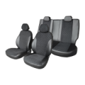 В комбинированных чехлах этой серии подголовники, боковые и задние элементы выполнены из черной экокожи, а центральные вставки сидений изготовлены из замши с прострочкой “Ромб”. Гарантируют комфортную посадку и приятные тактильные ощущения. Спинки передних кресел дополнены карманами. Чехлы не ограничивают заводскую функциональность салона.