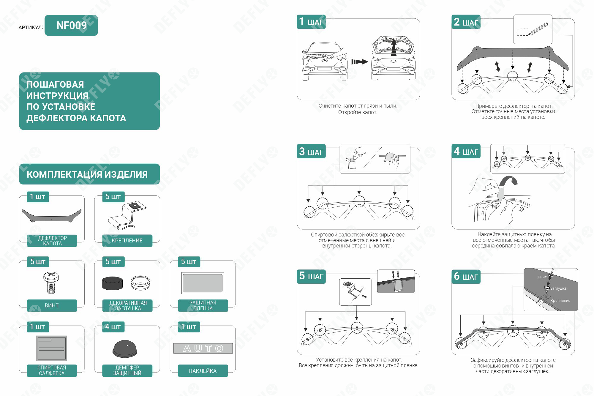 Дефлекторы капота от производителя “Defly” серии “Classic” отличаются доступными ценами и повышенными защитными свойствами. Агрессивная аэродинамическая форма дефлектора эффективно перенаправляет воздушные потоки, защищая лакокрасочное покрытие капота и лобовое стекло автомобиля. Универсальная система креплений обеспечивает простую установку, не требующую сверления, и надежную фиксацию. Дополнительные демпферы предотвращают вибрации дефлектора при движении. Изделие легко снимается, что позволяет беспрепятственно мыть, красить и производить необходимые действия с транспортным средством.