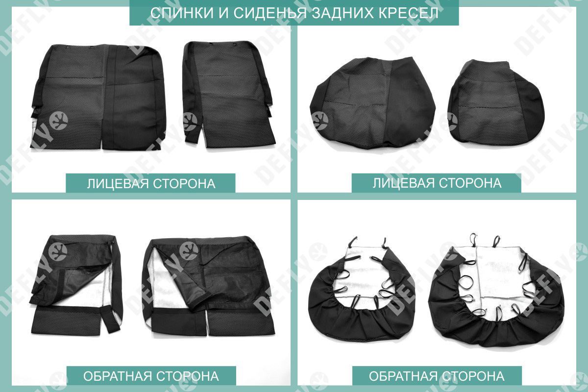 Материал: Жаккард, Цвет: Черный и темно-серый (оттенок и рисунок ткани может незначительно отличаться). Модельные чехлы от производителя “Defly” индивидуально сконструированы для каждого автомобиля. Изготовленные по лекалам оригинальных кресел, чехлы гарантируют идеальную посадку. В комплектацию входят детали всех элементов салона: передних кресел, заднего дивана, третьего ряда сидений, подголовников, подлокотников и т.д. Спинки передних кресел дополнены карманами. Все швы и технологические отверстия обработаны на оверлоке. Чехлы не ограничивают заводскую функциональность салона. Наличие в чехлах специального распускаемого шва не препятствует своевременному и полному раскрытию подушек безопасности. Специально разработанная система креплений позволяет надежно зафиксировать изделия. Авточехлы изготовлены из двух видов жаккарда: черного и темно-серого с рисунком. Подголовники, боковые и задние элементы выполнены из черного жаккарда. Центральные вставки сидений изготовлены из темно-серого жаккарда. Жаккард обеспечивает циркуляцию воздуха, что обеспечивает комфорт при длительных поездках. * Представленные фотографии являются примером исполнения и служат для демонстрации материалов и конструкции чехлов