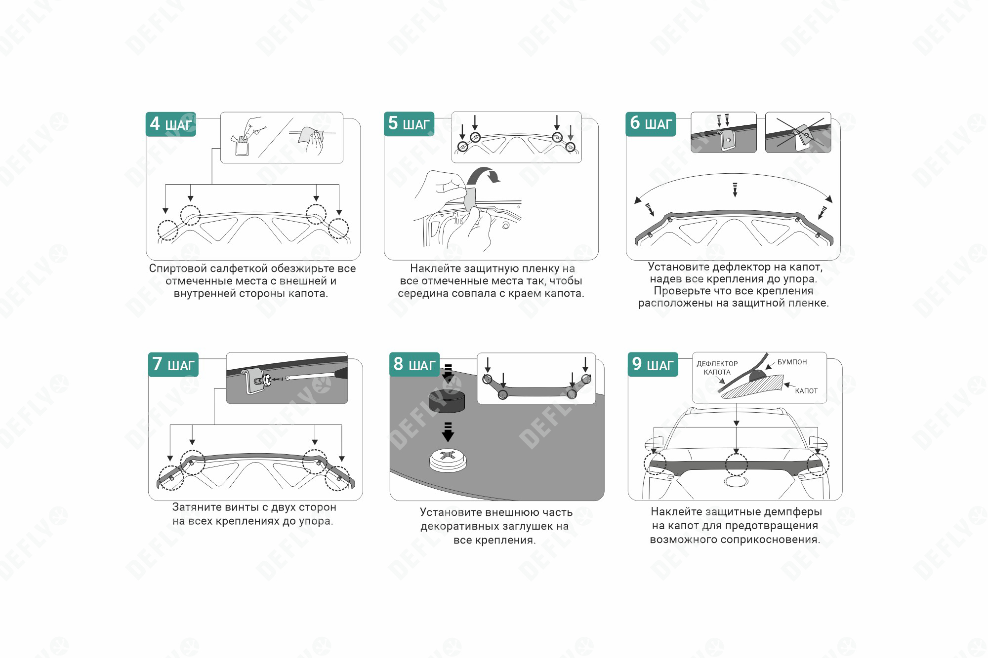 Крепеж для дефлектора капота Defly, комплект 4 шт.