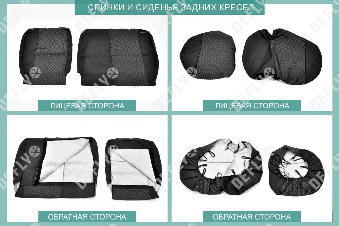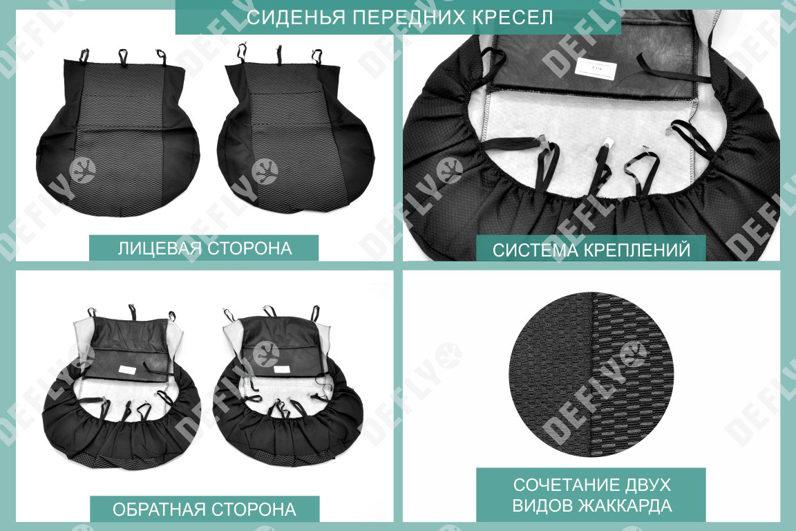 Материал: Жаккард, Цвет: Черный и темно-серый (оттенок и рисунок ткани может незначительно отличаться). Модельные чехлы от производителя “Defly” индивидуально сконструированы для каждого автомобиля. Изготовленные по лекалам оригинальных кресел, чехлы гарантируют идеальную посадку. В комплектацию входят детали всех элементов салона: передних кресел, заднего дивана, третьего ряда сидений, подголовников, подлокотников и т.д. Спинки передних кресел дополнены карманами. Все швы и технологические отверстия обработаны на оверлоке. Чехлы не ограничивают заводскую функциональность салона. Наличие в чехлах специального распускаемого шва не препятствует своевременному и полному раскрытию подушек безопасности. Специально разработанная система креплений позволяет надежно зафиксировать изделия. Авточехлы изготовлены из двух видов жаккарда: черного и темно-серого с рисунком. Подголовники, боковые и задние элементы выполнены из черного жаккарда. Центральные вставки сидений изготовлены из темно-серого жаккарда. Жаккард обеспечивает циркуляцию воздуха, что обеспечивает комфорт при длительных поездках. * Представленные фотографии являются примером исполнения и служат для демонстрации материалов и конструкции чехлов