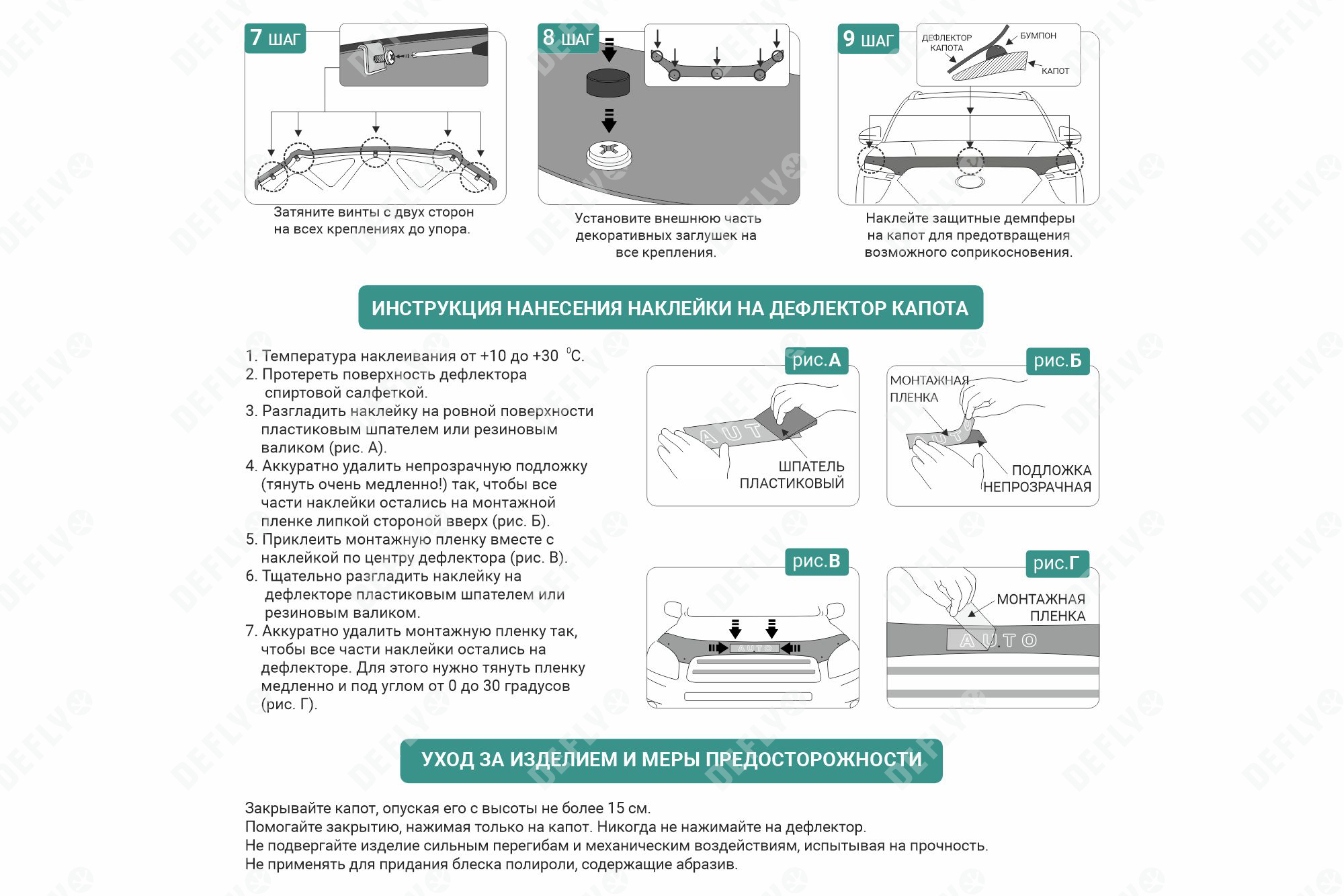 Дефлекторы капота от производителя “Defly” серии “Classic” отличаются доступными ценами и повышенными защитными свойствами. Агрессивная аэродинамическая форма дефлектора эффективно перенаправляет воздушные потоки, защищая лакокрасочное покрытие капота и лобовое стекло автомобиля. Универсальная система креплений обеспечивает простую установку, не требующую сверления, и надежную фиксацию. Дополнительные демпферы предотвращают вибрации дефлектора при движении. Изделие легко снимается, что позволяет беспрепятственно мыть, красить и производить необходимые действия с транспортным средством.