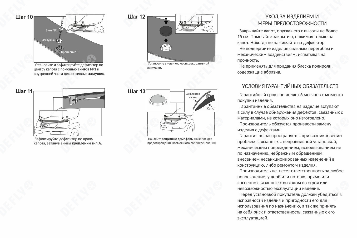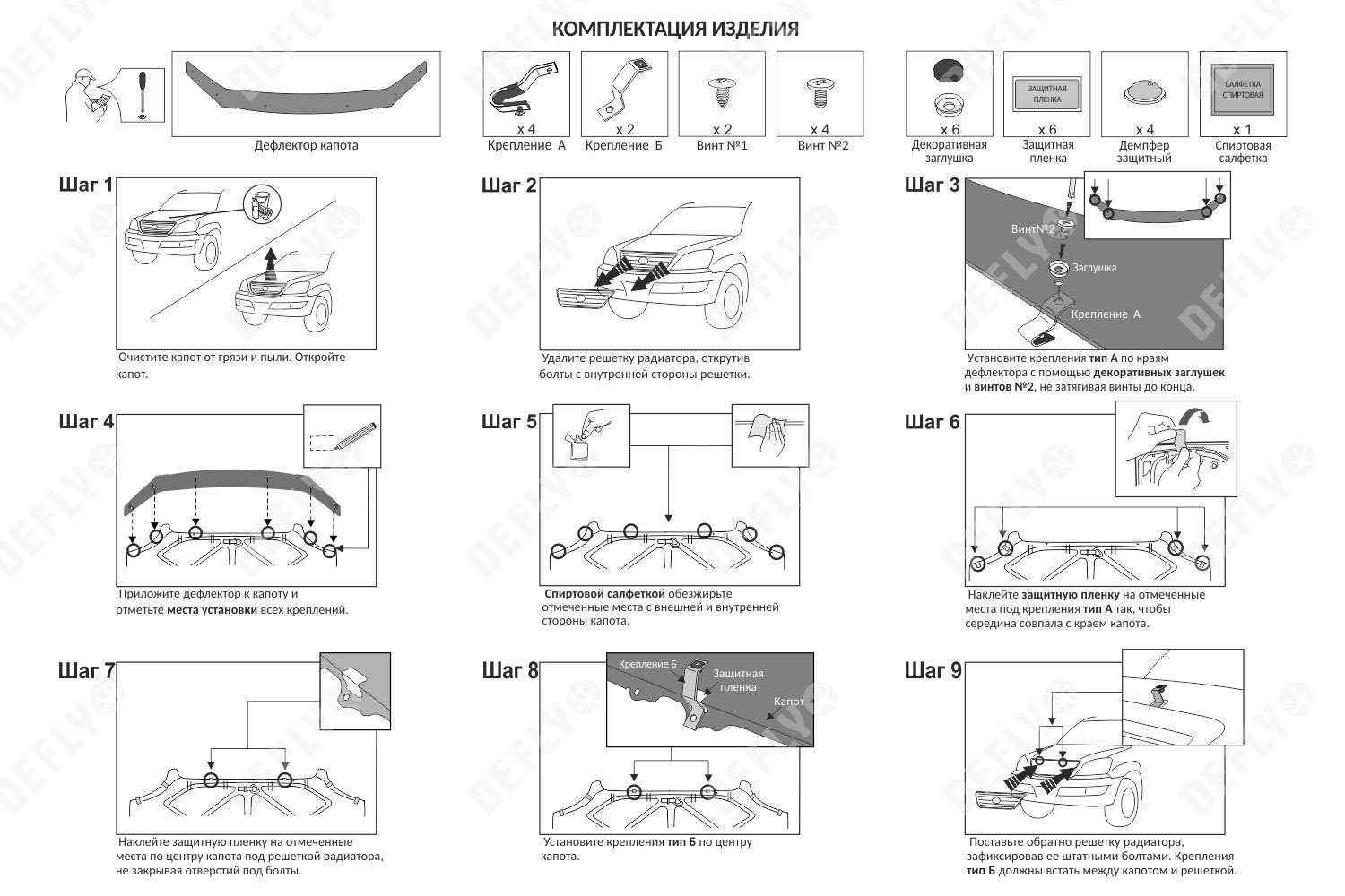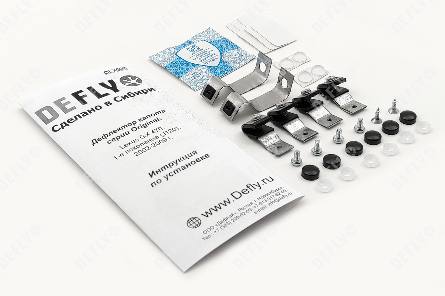 Дефлекторы капота от производителя “Defly” cерии «Original» минимально влияют на аэродинамические характеристики автомобиля и органично вписывается в его дизайн. Ребро жесткости, созданное загибом передней части дефлектора, увеличивает прочность конструкции и надежно защищает край капота от сколов. Уникальные системы креплений серии «Original» разрабатываются индивидуально для каждой модели автомобиля. Максимально надежная фиксация дефлектора обеспечивается за счет установки пластиковых клипс в штатные места, с внутренней стороны капота, и дополнительных фиксаторов по краю изделия. Дополнительные демпферы предотвращают вибрации дефлектора при движении. Изделие легко снимается, что позволяет беспрепятственно мыть, красить и производить необходимые действия с транспортным средством. Наклейку с логотипом автомобиля можно легко удалить.