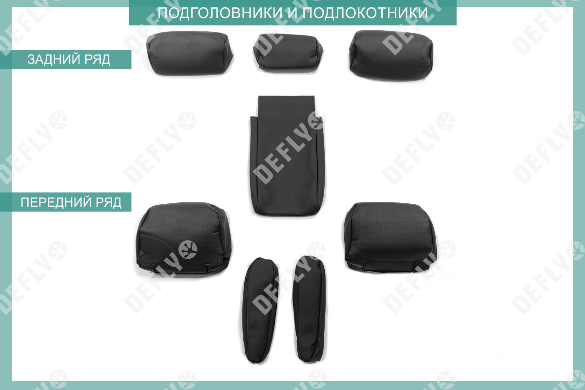 Спинка переднего кресла левого- 1 шт Спинка переднего кресла правого- 1 шт Сиденье переднего кресла- 2 шт Подголовник переднего кресла- 2 шт Спинка заднего дивана малая- 1 шт Спинка заднего дивана большая- 1 шт Сиденье заднего дивана малое- 1 шт Сиденье заднего дивана большое- 1 шт Подголовник 2-го ряда- 2 шт Подголовник 2-го ряда центральный- 1 шт подлокотник 2-го ряда- 1 шт Всего изделий: 14шт