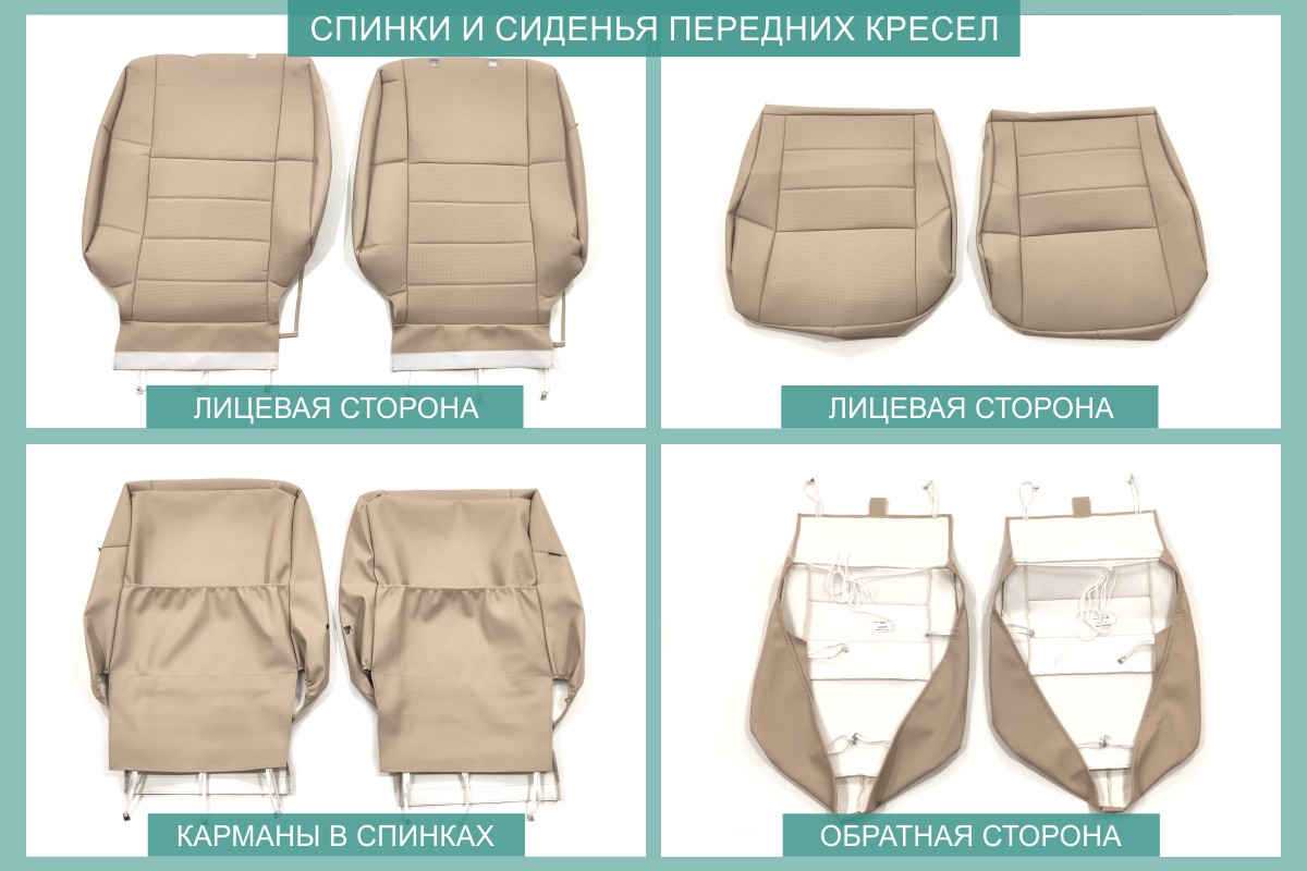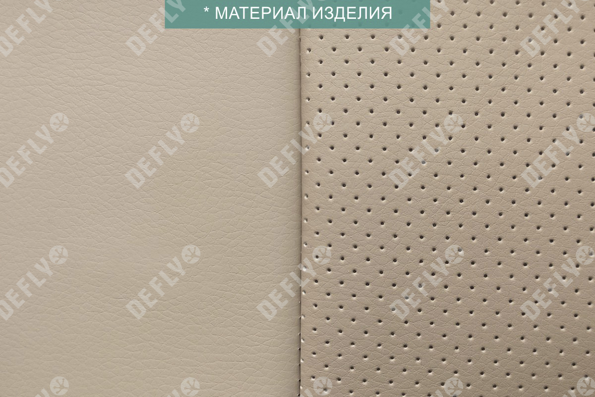 Материал: Экокожа гладкая, экокожа перфорированная, Цвет: Бежевый (оттенок ткани может незначительно отличаться). Модельные чехлы от производителя “Defly” индивидуально сконструированы для каждого автомобиля. Изготовленные по лекалам оригинальных кресел, чехлы гарантируют идеальную посадку. В комплектацию входят детали всех элементов салона: передних кресел, заднего дивана, третьего ряда сидений, подголовников, подлокотников и т.д. Спинки передних кресел дополнены карманами. Все швы и технологические отверстия обработаны на оверлоке. Чехлы не ограничивают заводскую функциональность салона. Наличие в чехлах специального распускаемого шва не препятствует своевременному и полному раскрытию подушек безопасности. Специально разработанная система креплений позволяет надежно зафиксировать изделия. Авточехлы изготовлены из двух видов экокожи бежевого цвета: гладкой и перфорированной. Перфорированная экокожа используется в центральных элементах, что обеспечивает циркуляцию воздуха. * Представленные фотографии являются примером исполнения и служат для демонстрации материалов и конструкции чехлов