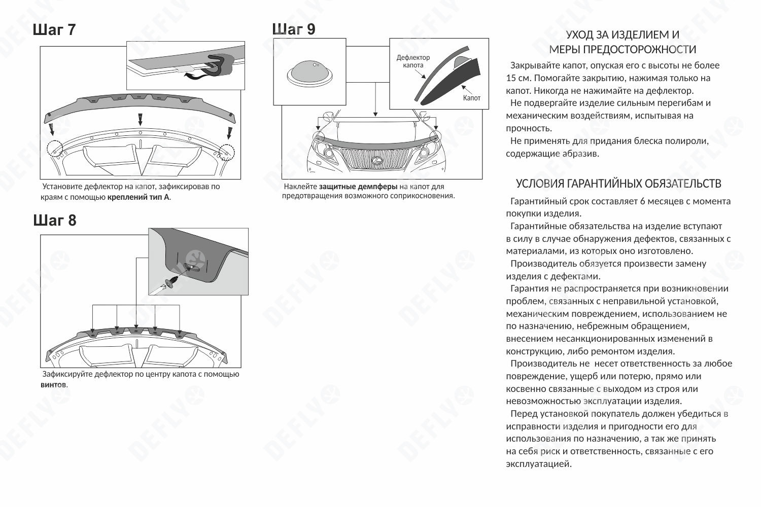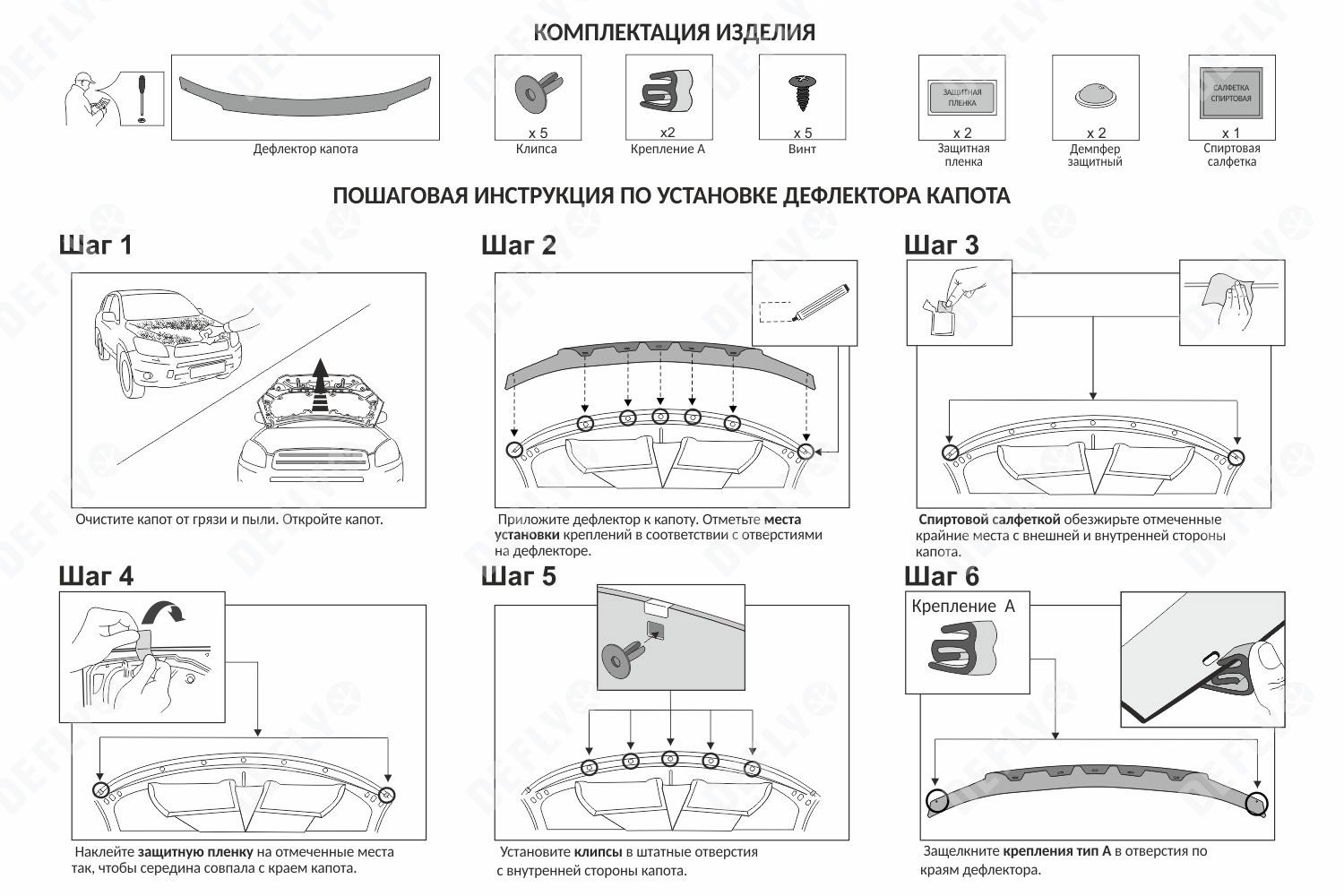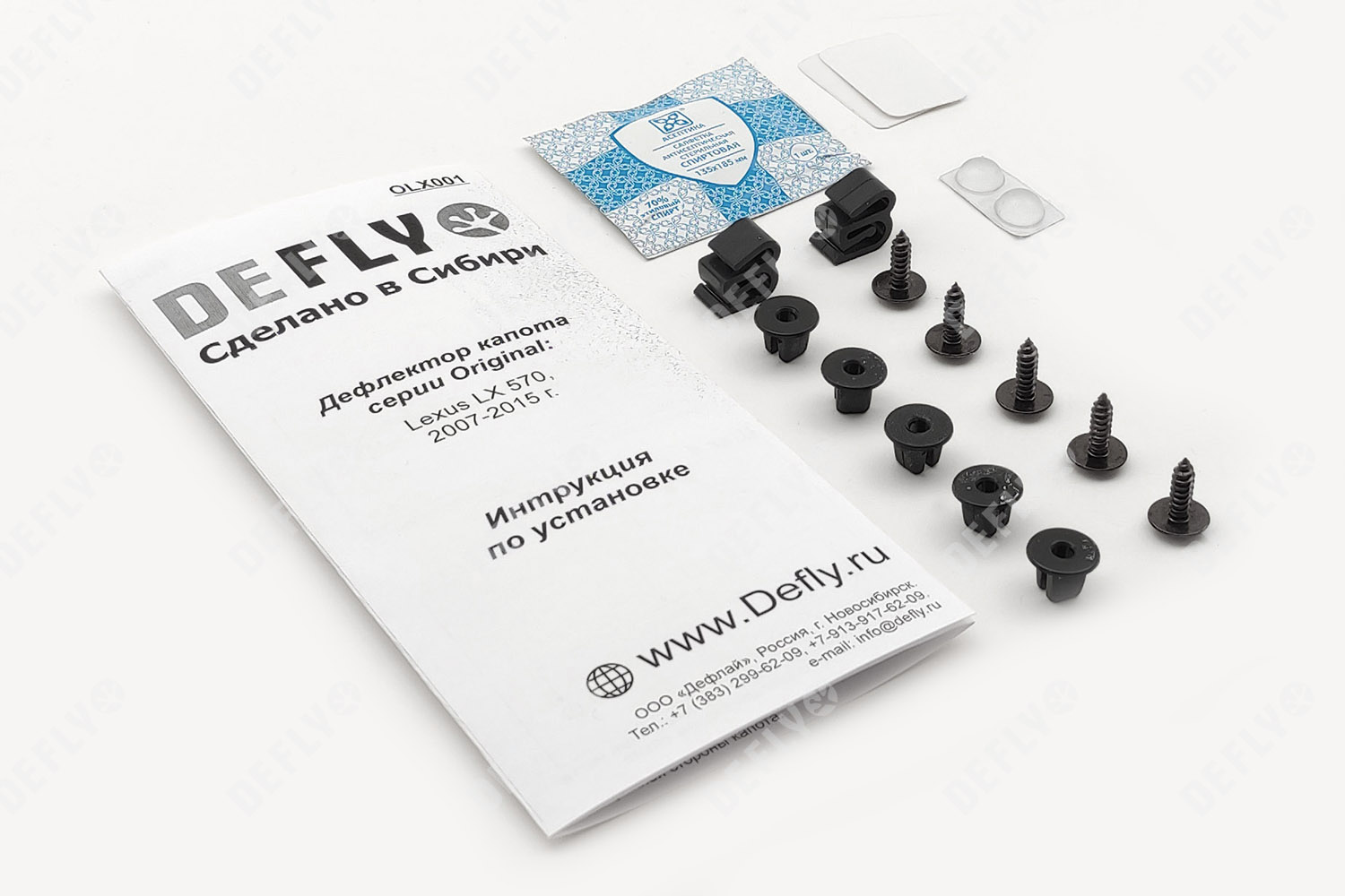 Дефлекторы капота от производителя “Defly” cерии «Original» минимально влияют на аэродинамические характеристики автомобиля и органично вписывается в его дизайн. Ребро жесткости, созданное загибом передней части дефлектора, увеличивает прочность конструкции и надежно защищает край капота от сколов. Уникальные системы креплений серии «Original» разрабатываются индивидуально для каждой модели автомобиля. Максимально надежная фиксация дефлектора обеспечивается за счет установки пластиковых клипс в штатные места, с внутренней стороны капота, и дополнительных фиксаторов по краю изделия. Дополнительные демпферы предотвращают вибрации дефлектора при движении. Изделие легко снимается, что позволяет беспрепятственно мыть, красить и производить необходимые действия с транспортным средством. Наклейку с логотипом автомобиля можно легко удалить.