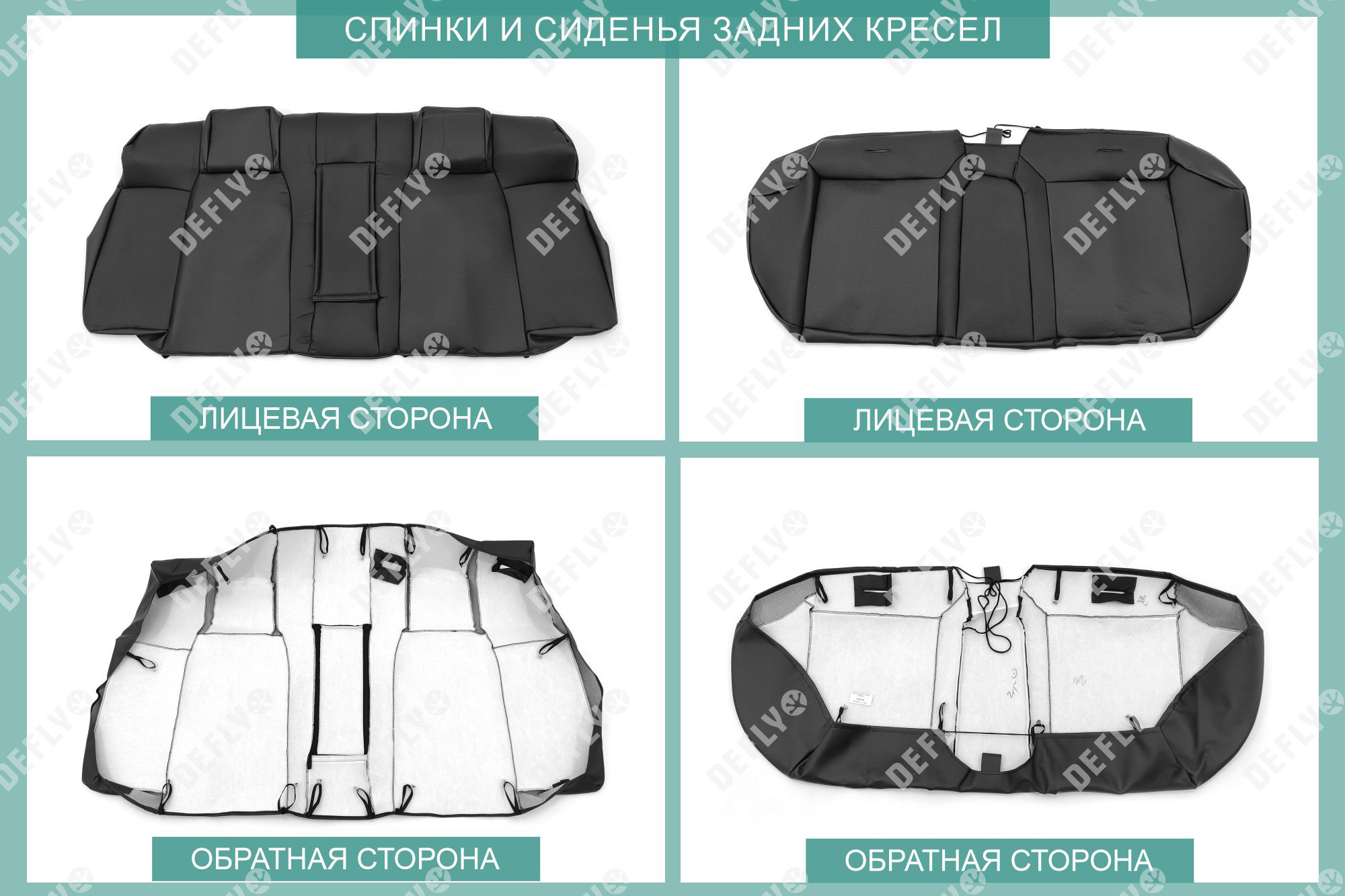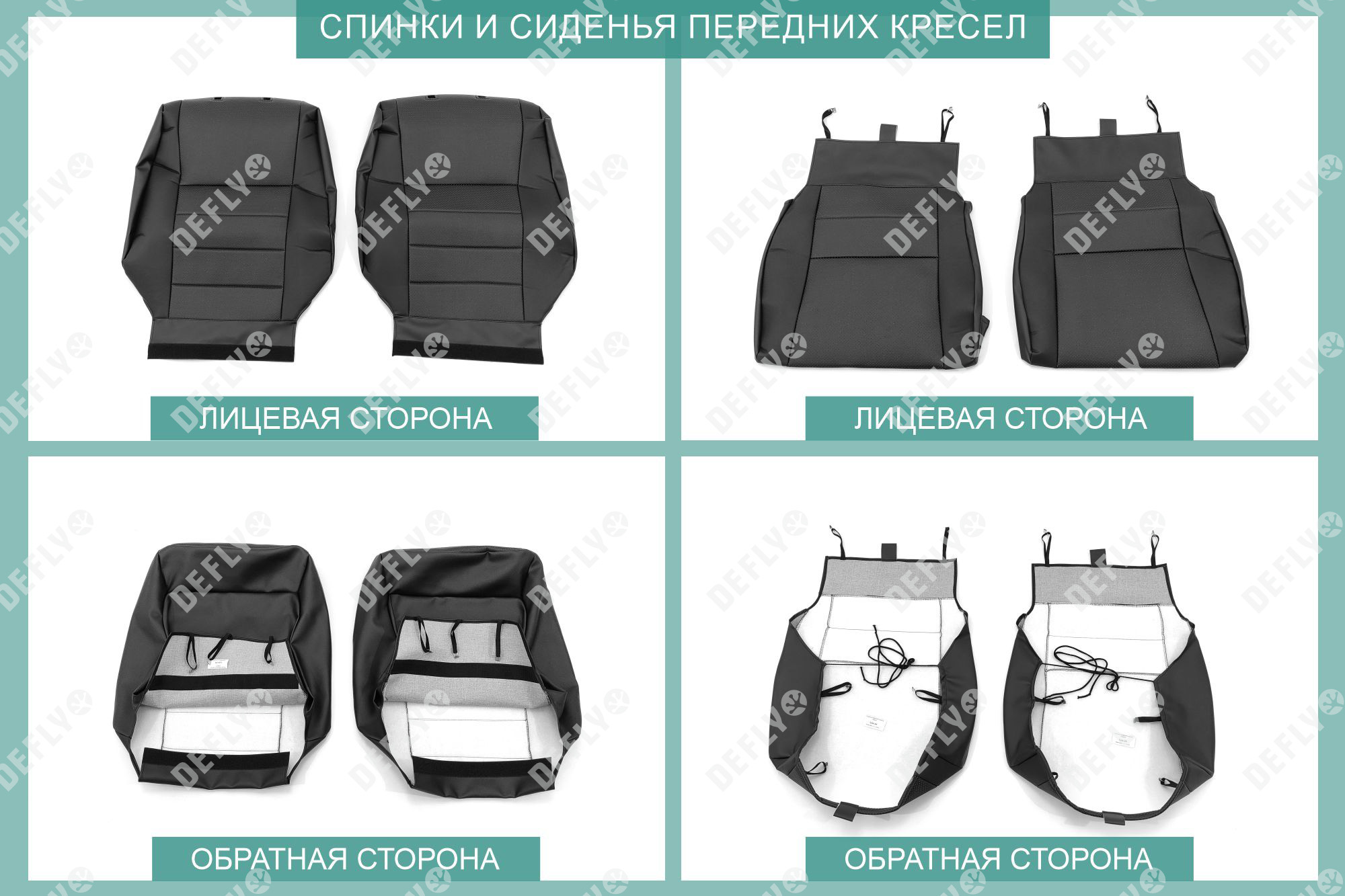 Материал: Экокожа гладкая, экокожа перфорированная, Цвет: Черный (оттенок ткани может незначительно отличаться). Модельные чехлы от производителя “Defly” индивидуально сконструированы для каждого автомобиля. Изготовленные по лекалам оригинальных кресел, чехлы гарантируют идеальную посадку. В комплектацию входят детали всех элементов салона: передних кресел, заднего дивана, третьего ряда сидений, подголовников, подлокотников и т.д. Спинки передних кресел дополнены карманами. Все швы и технологические отверстия обработаны на оверлоке. Чехлы не ограничивают заводскую функциональность салона. Наличие в чехлах специального распускаемого шва не препятствует своевременному и полному раскрытию подушек безопасности. Специально разработанная система креплений позволяет надежно зафиксировать изделия. Авточехлы изготовлены из двух видов экокожи черного цвета: гладкой и перфорированной. Перфорированная экокожа используется в центральных элементах, что обеспечивает циркуляцию воздуха. * Представленные фотографии являются примером исполнения и служат для демонстрации материалов и конструкции чехлов.