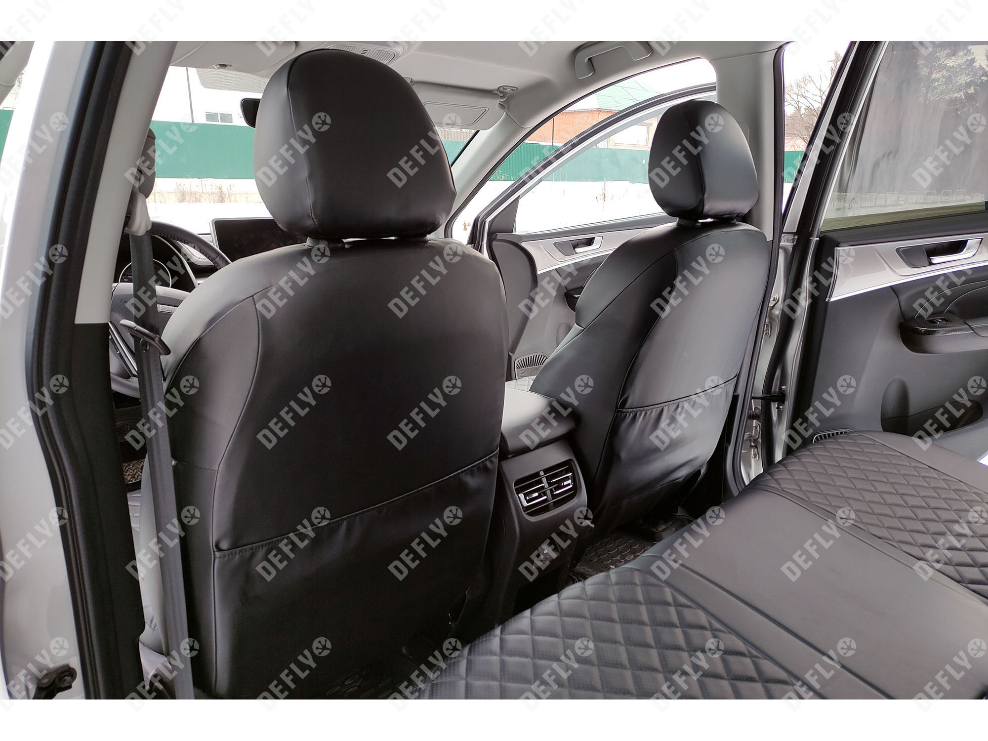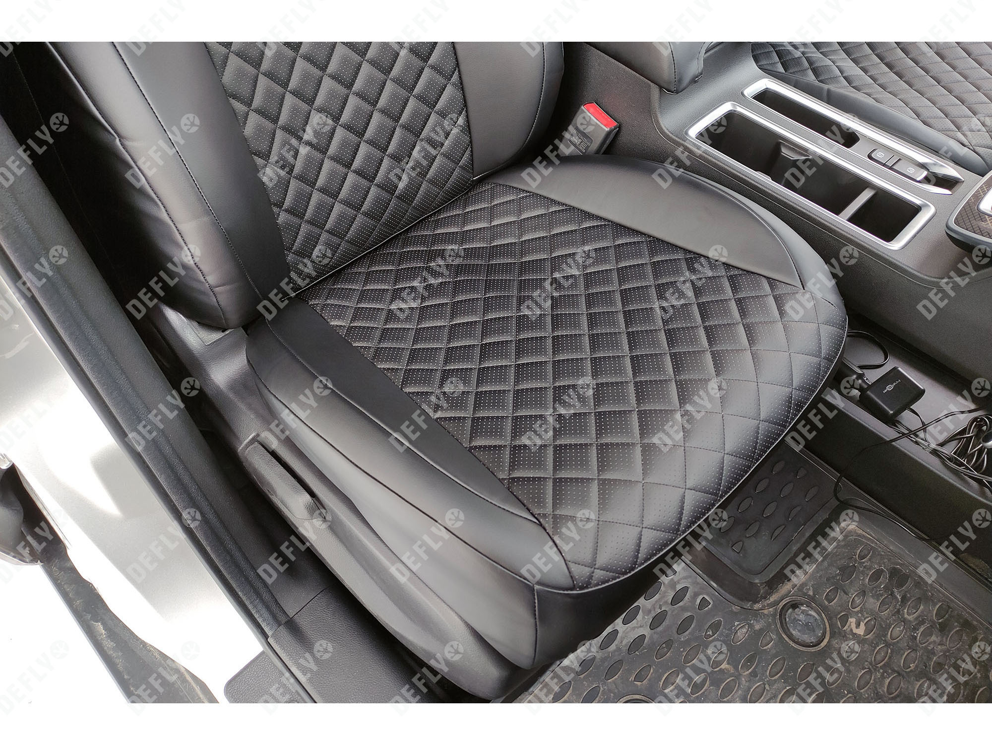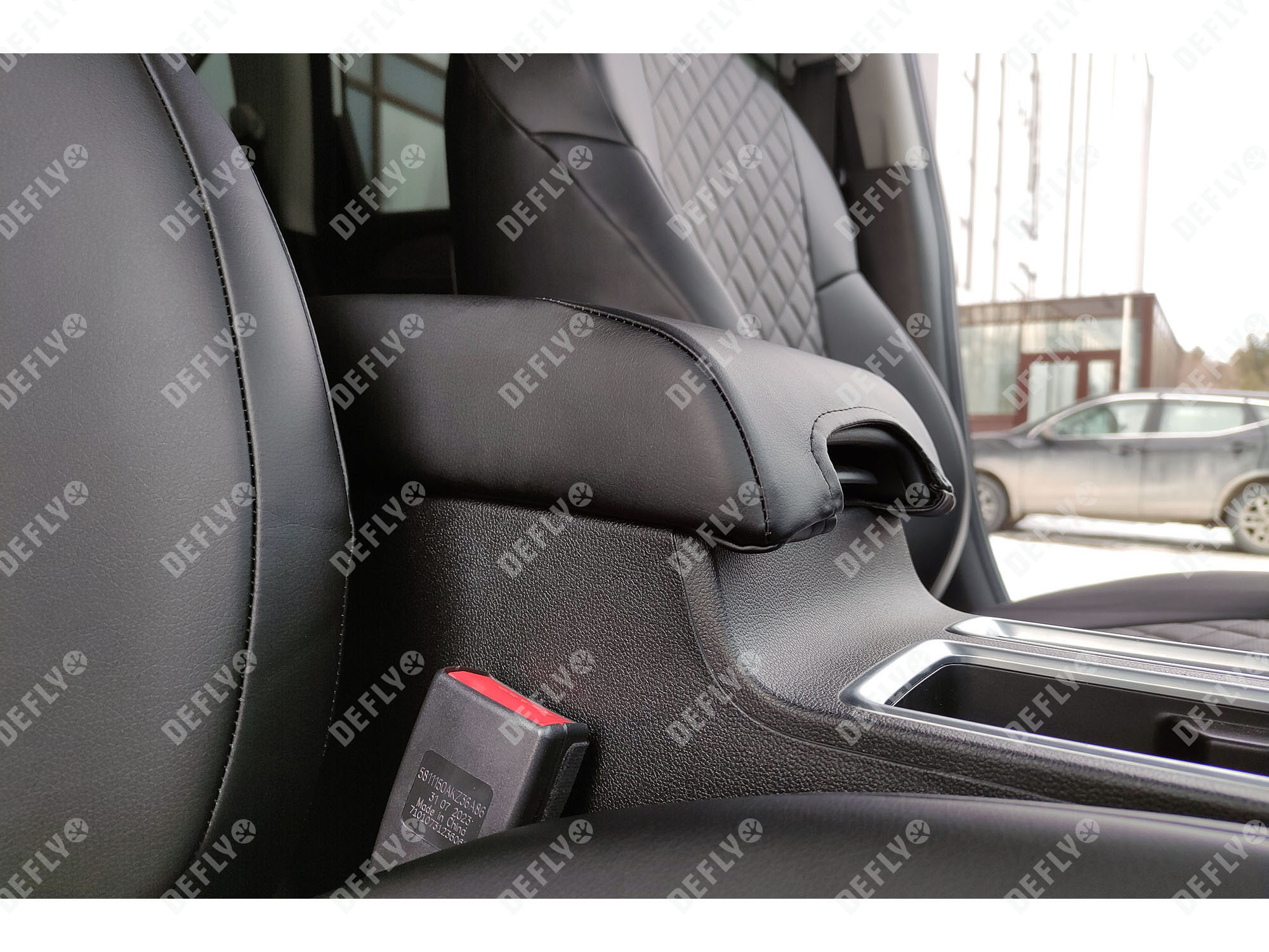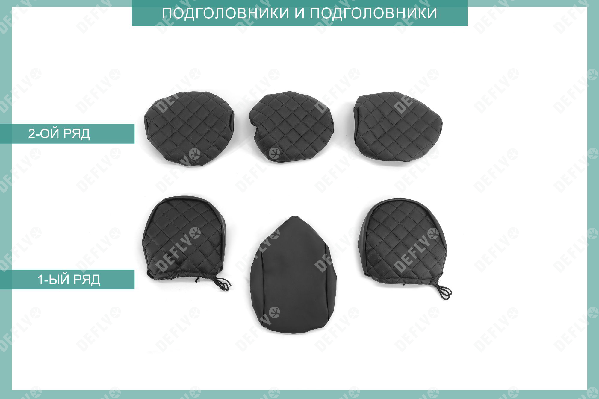 Материал: Экокожа гладкая, экокожа перфорированная, Цвет: Черный (оттенок ткани может незначительно отличаться). Модельные чехлы от производителя “Defly” индивидуально сконструированы для каждого автомобиля. Изготовленные по лекалам оригинальных кресел, чехлы гарантируют идеальную посадку. В комплектацию входят детали всех элементов салона: передних кресел, заднего дивана, третьего ряда сидений, подголовников, подлокотников и т.д. Спинки передних кресел дополнены карманами. Все швы и технологические отверстия обработаны на оверлоке. Чехлы не ограничивают заводскую функциональность салона. Наличие в чехлах специального распускаемого шва не препятствует своевременному и полному раскрытию подушек безопасности. Специально разработанная система креплений позволяет надежно зафиксировать изделия. Авточехлы изготовлены из двух видов экокожи черного цвета: гладкой и перфорированной. Перфорированная экокожа используется в центральных элементах, что обеспечивает циркуляцию воздуха. * Представленные фотографии являются примером исполнения и служат для демонстрации материалов и конструкции чехлов.