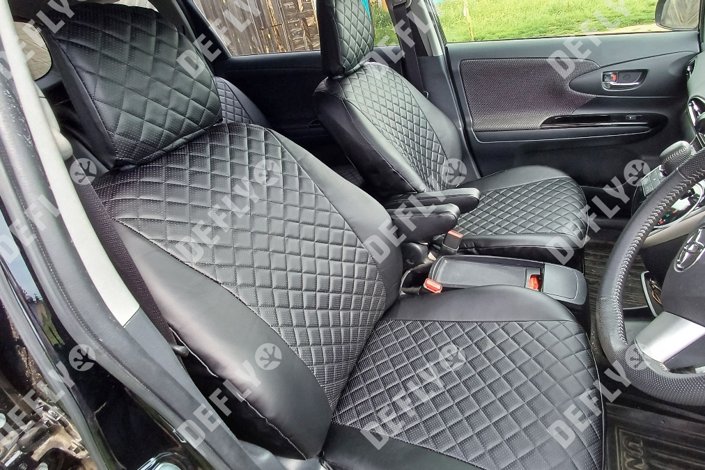 Чехлы на сиденья Toyota Wish (XE20), 2009-2017, 5 мест, экокожа черная/ромб перфорация