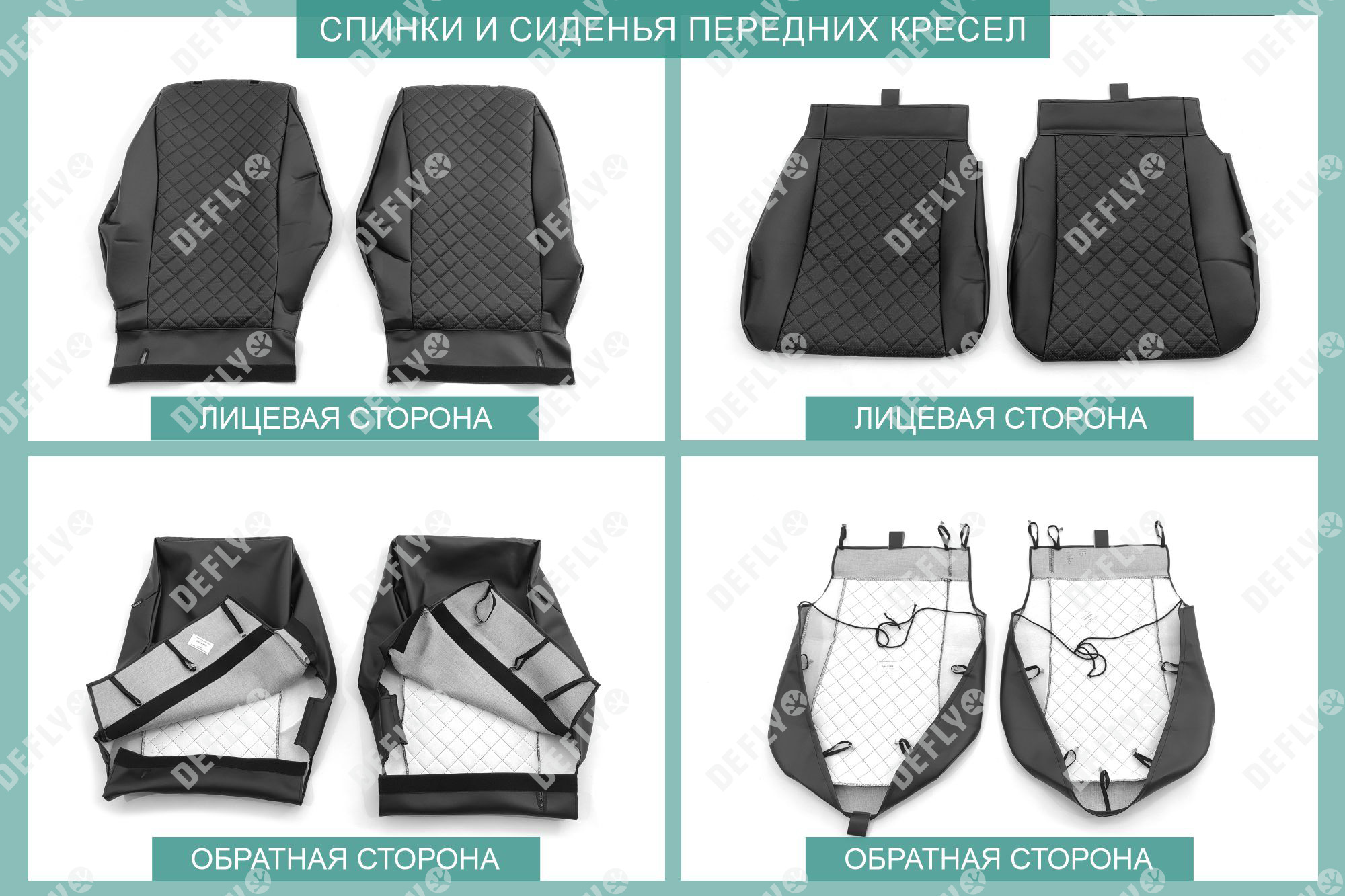 Материал: Экокожа гладкая, экокожа перфорированная, Цвет: Черный (оттенок ткани может незначительно отличаться). Модельные чехлы от производителя “Defly” индивидуально сконструированы для каждого автомобиля. Изготовленные по лекалам оригинальных кресел, чехлы гарантируют идеальную посадку. В комплектацию входят детали всех элементов салона: передних кресел, заднего дивана, третьего ряда сидений, подголовников, подлокотников и т.д. Спинки передних кресел дополнены карманами. Все швы и технологические отверстия обработаны на оверлоке. Чехлы не ограничивают заводскую функциональность салона. Наличие в чехлах специального распускаемого шва не препятствует своевременному и полному раскрытию подушек безопасности. Специально разработанная система креплений позволяет надежно зафиксировать изделия. Авточехлы изготовлены из двух видов экокожи черного цвета: гладкой и перфорированной. Перфорированная экокожа используется в центральных элементах, что обеспечивает циркуляцию воздуха. * Представленные фотографии являются примером исполнения и служат для демонстрации материалов и конструкции чехлов.