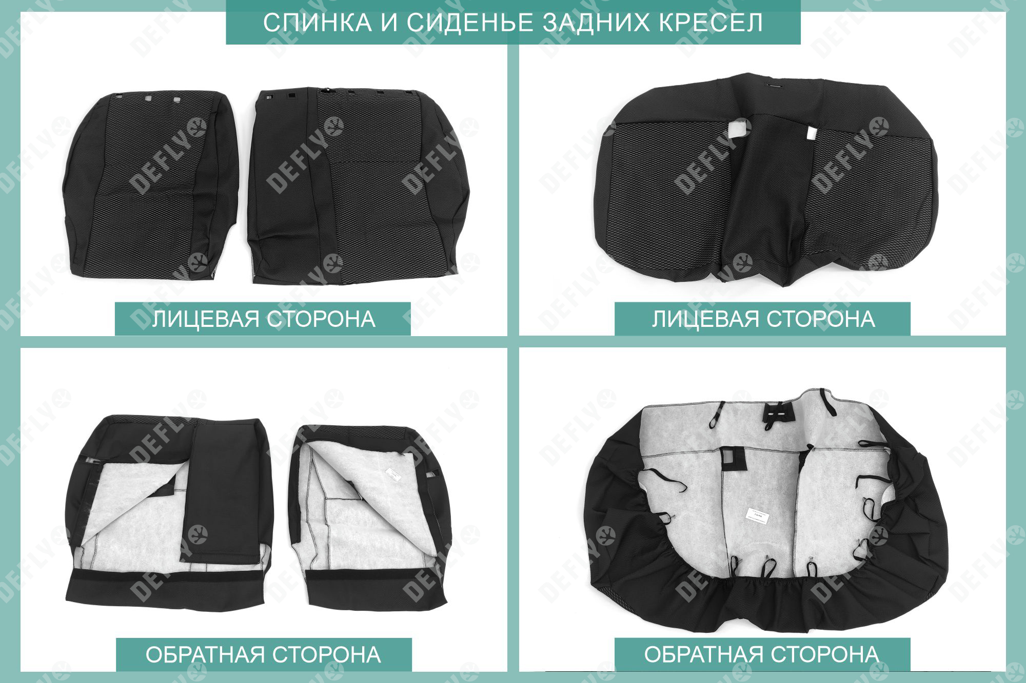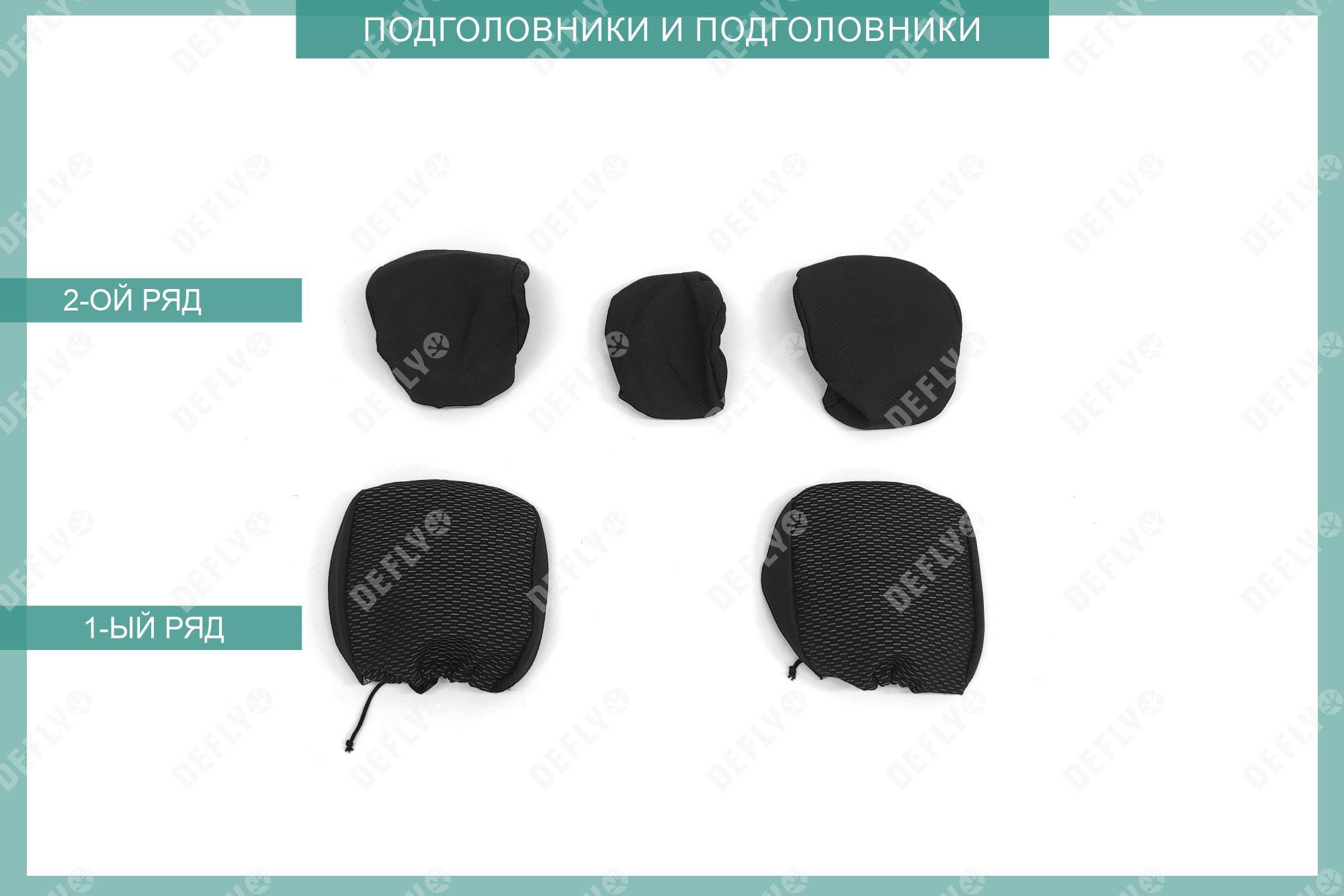 Материал: Жаккард, Цвет: Черный и темно-серый (оттенок и рисунок ткани может незначительно отличаться). Модельные чехлы от производителя “Defly” индивидуально сконструированы для каждого автомобиля. Изготовленные по лекалам оригинальных кресел, чехлы гарантируют идеальную посадку. В комплектацию входят детали всех элементов салона: передних кресел, заднего дивана, третьего ряда сидений, подголовников, подлокотников и т.д. Спинки передних кресел дополнены карманами. Все швы и технологические отверстия обработаны на оверлоке. Чехлы не ограничивают заводскую функциональность салона. Наличие в чехлах специального распускаемого шва не препятствует своевременному и полному раскрытию подушек безопасности. Специально разработанная система креплений позволяет надежно зафиксировать изделия. Авточехлы изготовлены из двух видов жаккарда: черного и темно-серого с рисунком. Подголовники, боковые и задние элементы выполнены из черного жаккарда. Центральные вставки сидений изготовлены из темно-серого жаккарда. Жаккард обеспечивает циркуляцию воздуха, что обеспечивает комфорт при длительных поездках. * Представленные фотографии являются примером исполнения и служат для демонстрации материалов и конструкции чехлов