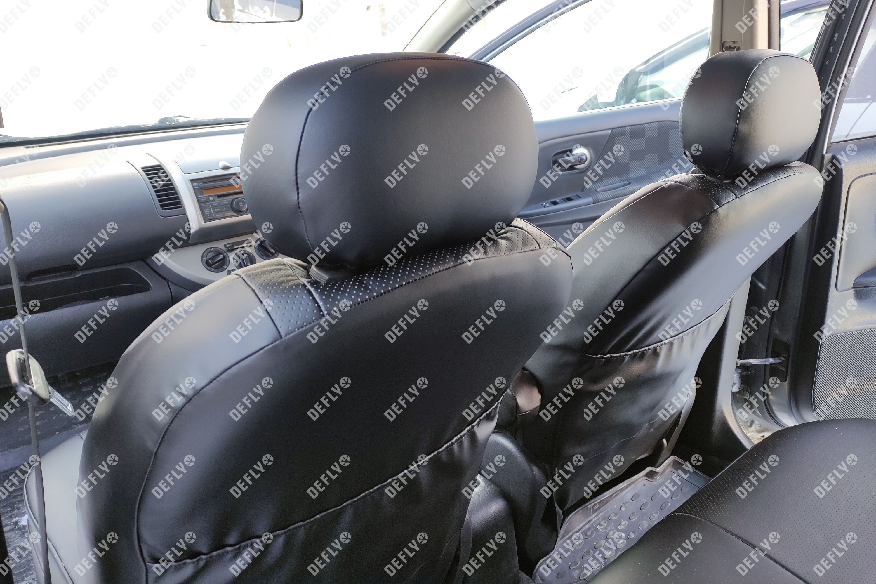 Чехлы на сиденья Nissan Note (E11), 2005-2007, правый руль, спинка 2 ряда раздельная, экокожа черная