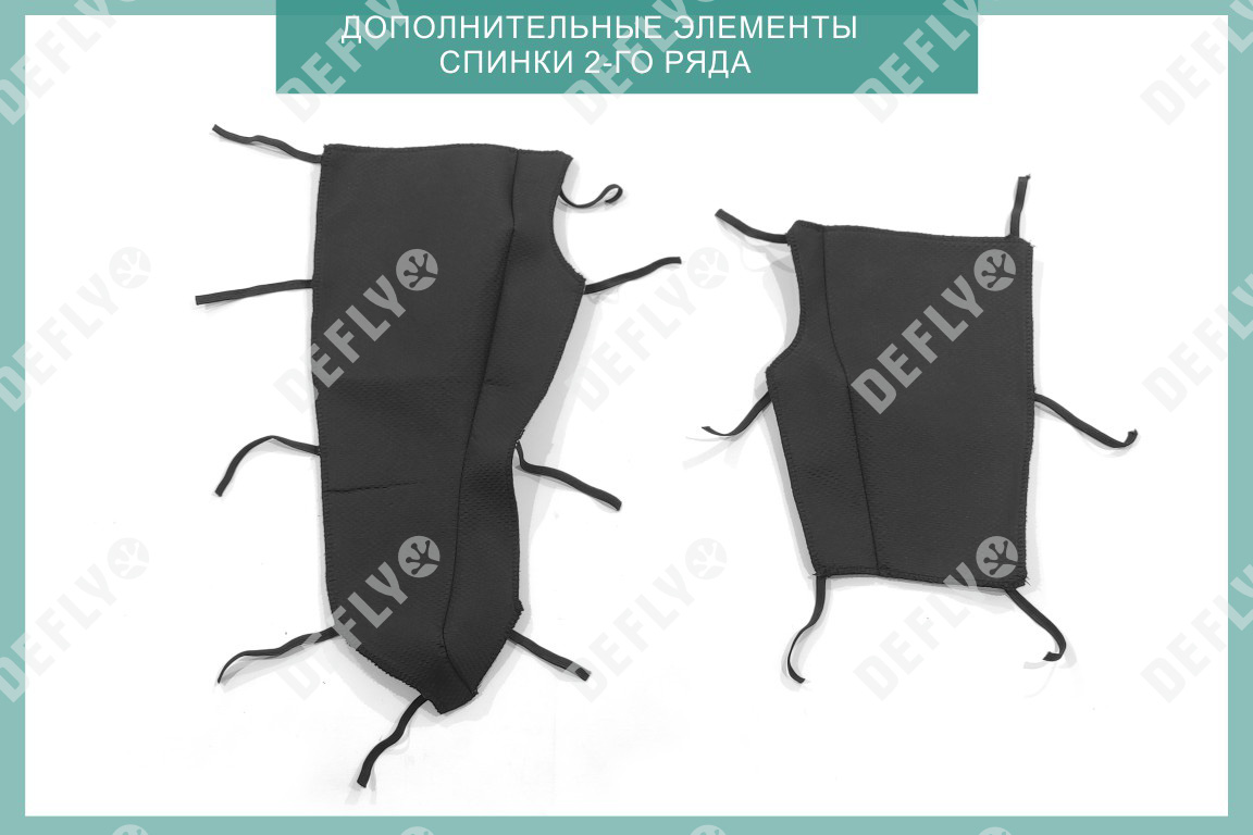 Первый ряд: Спинка переднего кресла левого - 1шт Спинка переднего кресла правого - 1шт Сиденье переднего кресла левого - 1шт Сиденье переднего кресла правого - 1шт Подголовник переднего кресла - 2шт Второй ряд: Сиденье заднего дивана - 1шт Подголовник 2-го ряда - 2шт Подголовник 2-го ряда центральный - 1шт Спинка заднего дивана большая - 1шт Спинка заднего дивана малая - 1шт Подлокотник 2-го ряда - 1шт Боковой элемент спинки заднего ряда - 2шт Всего элементов - 15шт