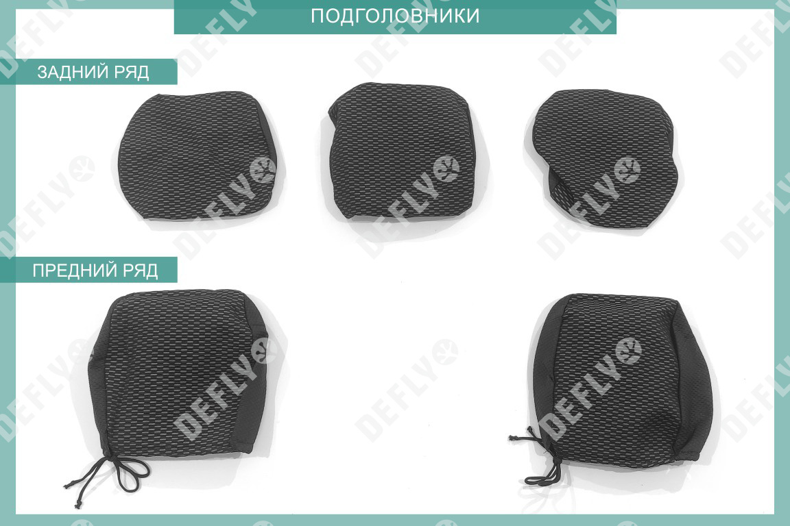 Материал: Жаккард, Цвет: Черный и темно-серый (оттенок и рисунок ткани может незначительно отличаться). Модельные чехлы от производителя “Defly” индивидуально сконструированы для каждого автомобиля. Изготовленные по лекалам оригинальных кресел, чехлы гарантируют идеальную посадку. В комплектацию входят детали всех элементов салона: передних кресел, заднего дивана, третьего ряда сидений, подголовников, подлокотников и т.д. Спинки передних кресел дополнены карманами. Все швы и технологические отверстия обработаны на оверлоке. Чехлы не ограничивают заводскую функциональность салона. Наличие в чехлах специального распускаемого шва не препятствует своевременному и полному раскрытию подушек безопасности. Специально разработанная система креплений позволяет надежно зафиксировать изделия. Авточехлы изготовлены из двух видов жаккарда: черного и темно-серого с рисунком. Подголовники, боковые и задние элементы выполнены из черного жаккарда. Центральные вставки сидений изготовлены из темно-серого жаккарда. Жаккард обеспечивает циркуляцию воздуха, что обеспечивает комфорт при длительных поездках. * Представленные фотографии являются примером исполнения и служат для демонстрации материалов и конструкции чехлов