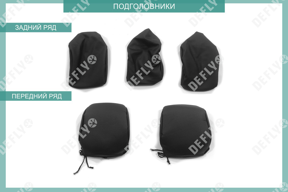 Материал: Экокожа гладкая, экокожа перфорированная, Цвет: Черный (оттенок ткани может незначительно отличаться). Модельные чехлы от производителя “Defly” индивидуально сконструированы для каждого автомобиля. Изготовленные по лекалам оригинальных кресел, чехлы гарантируют идеальную посадку. В комплектацию входят детали всех элементов салона: передних кресел, заднего дивана, третьего ряда сидений, подголовников, подлокотников и т.д. Спинки передних кресел дополнены карманами. Все швы и технологические отверстия обработаны на оверлоке. Чехлы не ограничивают заводскую функциональность салона. Наличие в чехлах специального распускаемого шва не препятствует своевременному и полному раскрытию подушек безопасности. Специально разработанная система креплений позволяет надежно зафиксировать изделия. Авточехлы изготовлены из двух видов экокожи черного цвета: гладкой и перфорированной. Перфорированная экокожа используется в центральных элементах, что обеспечивает циркуляцию воздуха. * Представленные фотографии являются примером исполнения и служат для демонстрации материалов и конструкции чехлов.