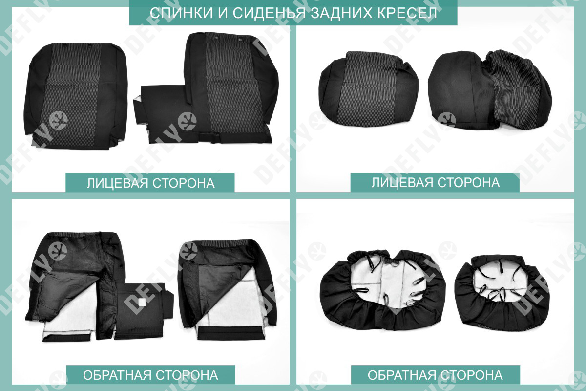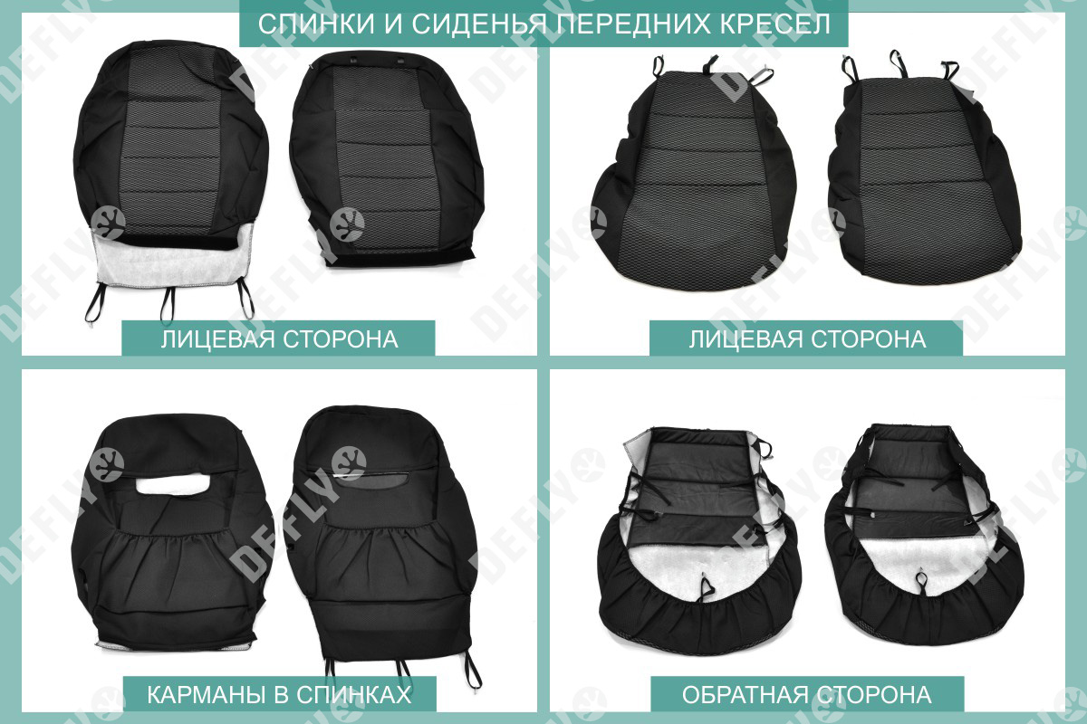 Материал: Жаккард, Цвет: Черный и темно-серый (оттенок и рисунок ткани может незначительно отличаться). Модельные чехлы от производителя “Defly” индивидуально сконструированы для каждого автомобиля. Изготовленные по лекалам оригинальных кресел, чехлы гарантируют идеальную посадку. В комплектацию входят детали всех элементов салона: передних кресел, заднего дивана, третьего ряда сидений, подголовников, подлокотников и т.д. Спинки передних кресел дополнены карманами. Все швы и технологические отверстия обработаны на оверлоке. Чехлы не ограничивают заводскую функциональность салона. Наличие в чехлах специального распускаемого шва не препятствует своевременному и полному раскрытию подушек безопасности. Специально разработанная система креплений позволяет надежно зафиксировать изделия. Авточехлы изготовлены из двух видов жаккарда: черного и темно-серого с рисунком. Подголовники, боковые и задние элементы выполнены из черного жаккарда. Центральные вставки сидений изготовлены из темно-серого жаккарда. Жаккард обеспечивает циркуляцию воздуха, что обеспечивает комфорт при длительных поездках. * Представленные фотографии являются примером исполнения и служат для демонстрации материалов и конструкции чехлов
