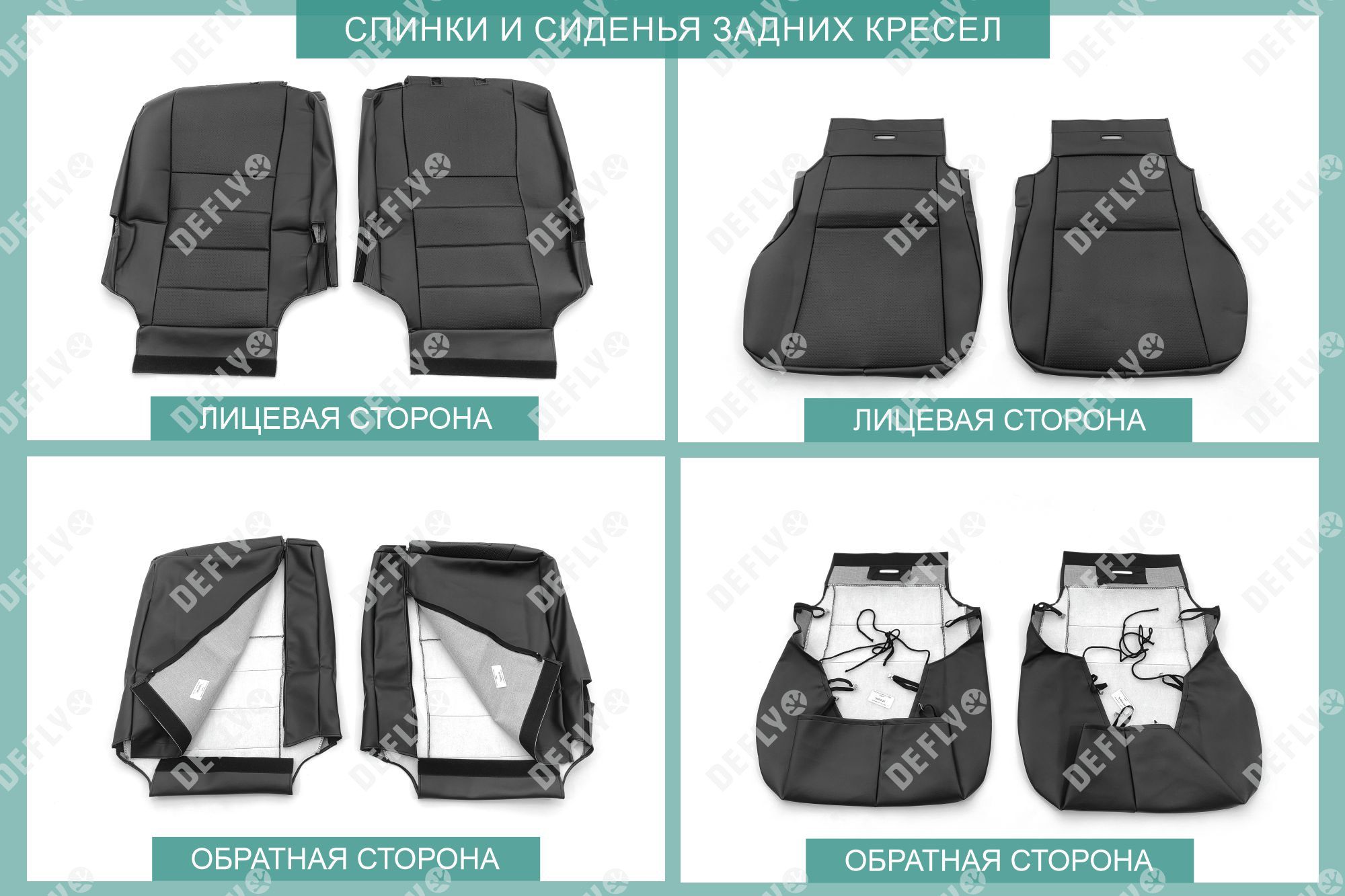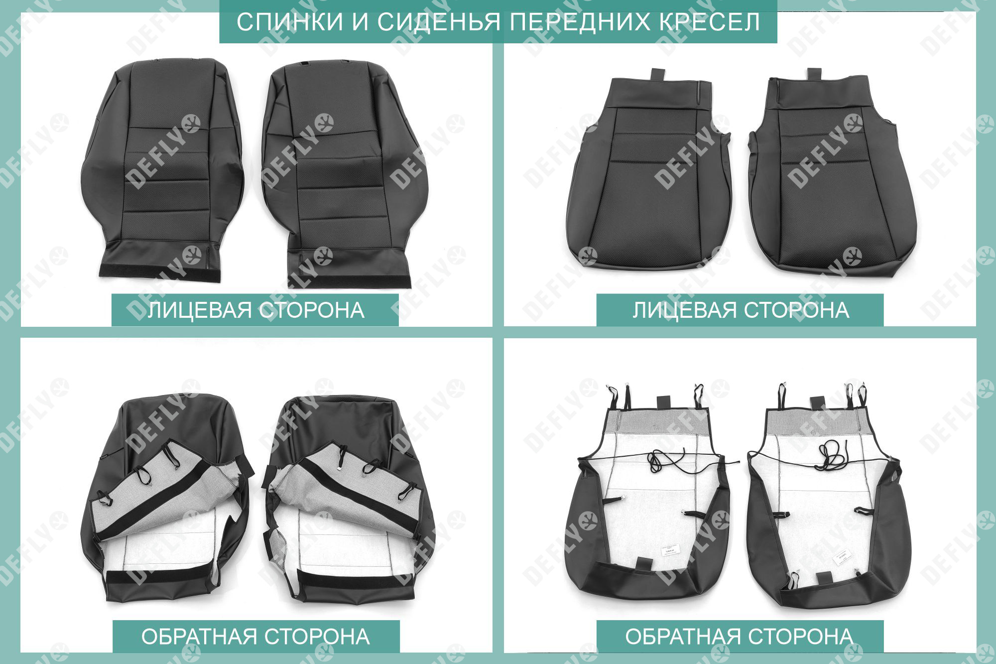 Материал: Экокожа гладкая, экокожа перфорированная, Цвет: Черный (оттенок ткани может незначительно отличаться). Модельные чехлы от производителя “Defly” индивидуально сконструированы для каждого автомобиля. Изготовленные по лекалам оригинальных кресел, чехлы гарантируют идеальную посадку. В комплектацию входят детали всех элементов салона: передних кресел, заднего дивана, третьего ряда сидений, подголовников, подлокотников и т.д. Спинки передних кресел дополнены карманами. Все швы и технологические отверстия обработаны на оверлоке. Чехлы не ограничивают заводскую функциональность салона. Наличие в чехлах специального распускаемого шва не препятствует своевременному и полному раскрытию подушек безопасности. Специально разработанная система креплений позволяет надежно зафиксировать изделия. Авточехлы изготовлены из двух видов экокожи черного цвета: гладкой и перфорированной. Перфорированная экокожа используется в центральных элементах, что обеспечивает циркуляцию воздуха. * Представленные фотографии являются примером исполнения и служат для демонстрации материалов и конструкции чехлов.