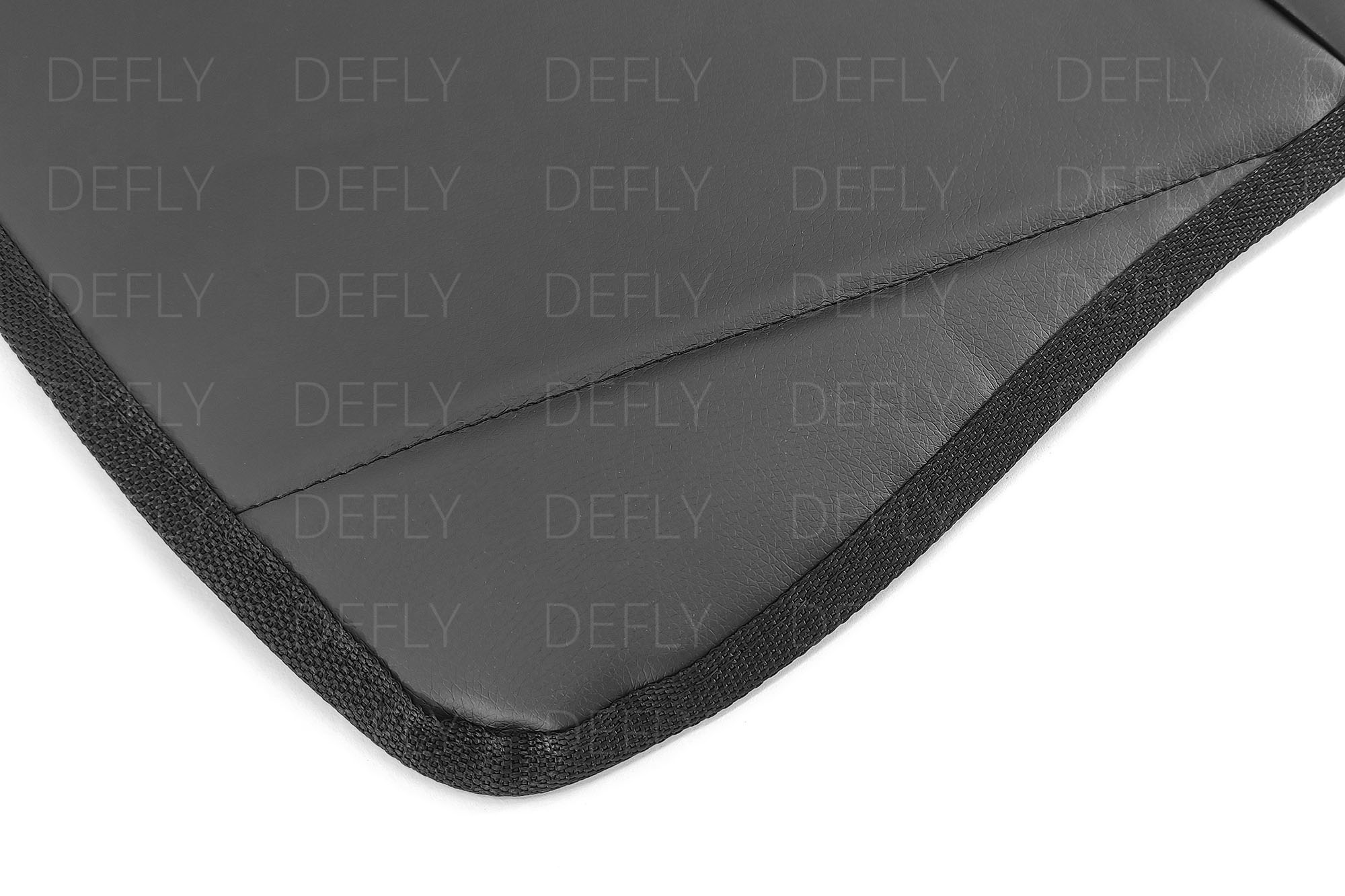 Утеплитель решетки радиатора DEFLY - практичный и функциональный. Форма утеплителя точно повторяет геометрию решетки радиатора. Утеплитель радиатора выполнен в практичном черном цвете - меньше заметны загрязнения, изделие дольше сохраняет опрятный внешний вид в течении всего срока эксплуатации. Зимняя заглушка радиатора эстетично дополнит экстерьер автомобиля. Упакован в компактный мешок для межсезонного хранения. Покупая наш утеплитель, Вы экономите свои деньги и время, при этом получаете комфорт! Зимняя защита решетки состоит из трех слоев. Каждый слой работает на сбережение тепла и максимально эффективен в морозы. Первый слой - лицевая часть - экокожа с прострочкой «Ромб», триплированная поролоном 5,8 мм. Второй слой - пенополиэтилен 6 мм. Третий слой - с изнанки - экокожа гладкая (0,8 мм). По краям утеплителя - прочная окантовочная лента, что увеличивает срок службы автоаксессуара. Применяемые материалы износостойкие, влагостойкие и просты в уходе: утеплитель легко протереть тряпкой или влажными салфетками. Занимает мало места при хранении. Намордник легко крепится / снимается к решетке на липы шириной 2 см (и крючки в зависимости от модели изделия). За счет прочного крепления, плотно прилегает к машине, незаметен, не смещается даже на большой скорости. Применяется при t° от -5 °C и ниже! В случае теплой погоды заслонка радиатора должна быть снята во избежание перегрева двигателя. Преимущества утеплителя для радиатора от компании DEFLY: 1. Ускоряет прогрев холодного двигателя. 2. Снижает расход топлива и сокращает количество выбросов. 3. Защищает двигатель от прямого попадания снега в моторное пространство и потока холодного воздуха. 4. Продлевает срок службы радиатора. 5. Способствует поддержанию рабочей температуры внутри моторного отсека. * Если в комплект утеплителя входит липа с клейкой основой, которую необходимо клеить к решетке, то рекомендуется устанавливать утеплитель при t° не ниже + 10 °C на предварительно очищенную поверхность.