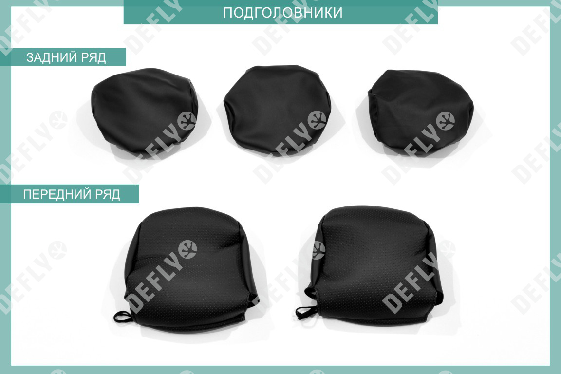 Первый ряд: Подголовник переднего кресла – 2 шт Спинка переднего кресла – 2 шт Сиденье переднего кресла – 2 шт Второй ряд: Подголовник заднего ряда – 3 шт Спинка заднего дивана – 1 шгт Сиденье заднего дивана – 1 шт Итого: 11 изделий