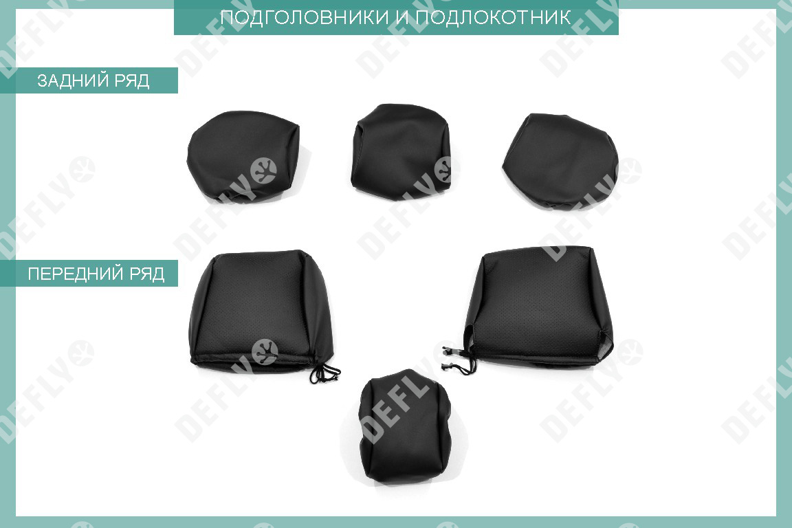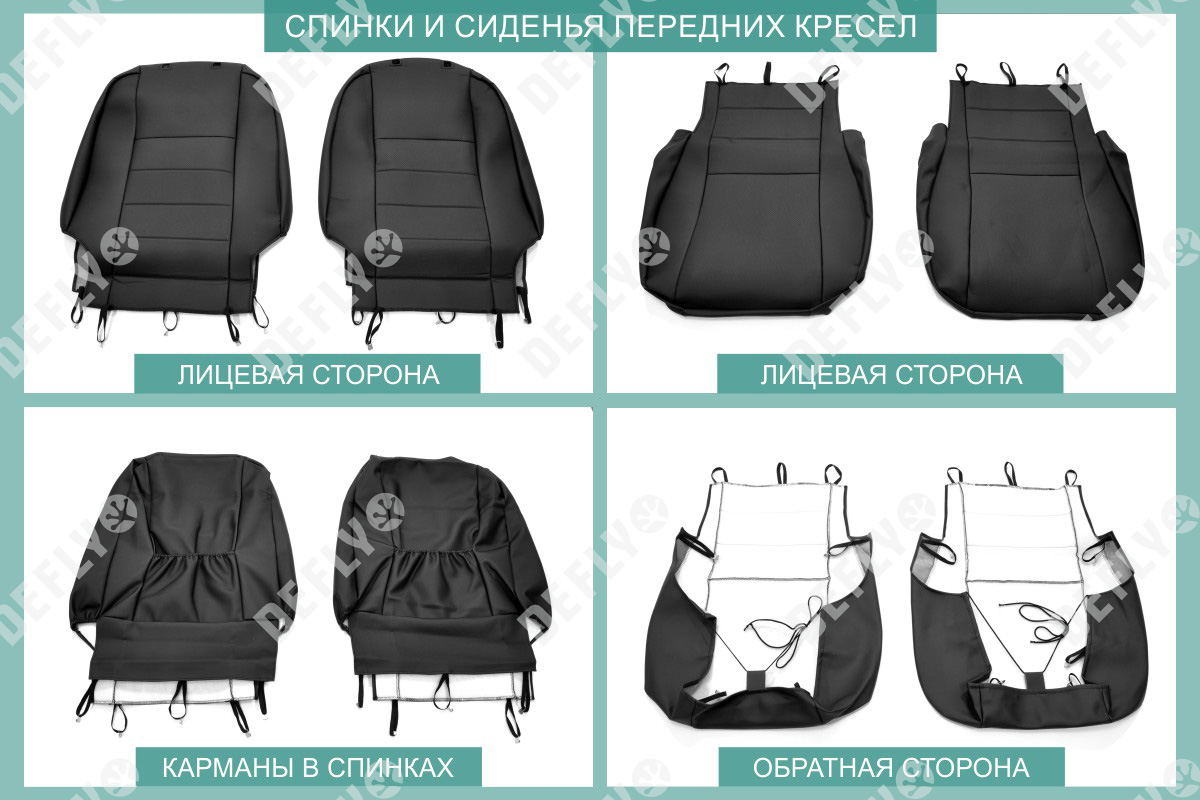 Материал: Экокожа гладкая, экокожа перфорированная, Цвет: Черный (оттенок ткани может незначительно отличаться). Модельные чехлы от производителя “Defly” индивидуально сконструированы для каждого автомобиля. Изготовленные по лекалам оригинальных кресел, чехлы гарантируют идеальную посадку. Все швы и технологические отверстия обработаны на оверлоке. Чехлы не ограничивают заводскую функциональность салона. Наличие в чехлах специального распускаемого шва не препятствует своевременному и полному раскрытию подушек безопасности. Специально разработанная система креплений позволяет надежно зафиксировать изделия. Авточехлы изготовлены из двух видов экокожи черного цвета: гладкой и перфорированной. Перфорированная экокожа используется в центральных элементах, что обеспечивает циркуляцию воздуха. * Представленные фотографии являются примером исполнения и служат для демонстрации материалов и конструкции чехлов.