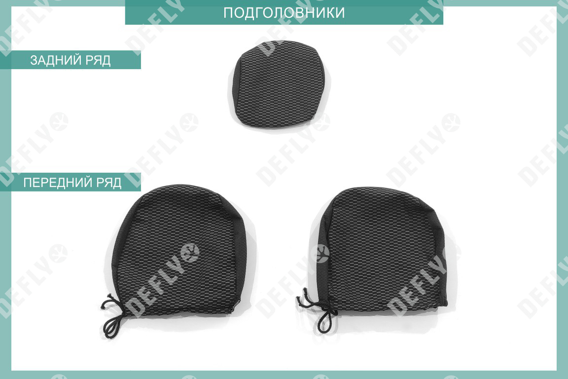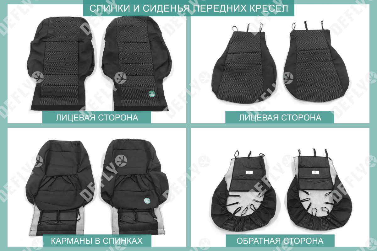 Материал: Жаккард, Цвет: Черный и темно-серый (оттенок и рисунок ткани может незначительно отличаться). Модельные чехлы от производителя “Defly” индивидуально сконструированы для каждого автомобиля. Изготовленные по лекалам оригинальных кресел, чехлы гарантируют идеальную посадку. В комплектацию входят детали всех элементов салона: передних кресел, заднего дивана, третьего ряда сидений, подголовников, подлокотников и т.д. Спинки передних кресел дополнены карманами. Все швы и технологические отверстия обработаны на оверлоке. Чехлы не ограничивают заводскую функциональность салона. Наличие в чехлах специального распускаемого шва не препятствует своевременному и полному раскрытию подушек безопасности. Специально разработанная система креплений позволяет надежно зафиксировать изделия. Авточехлы изготовлены из двух видов жаккарда: черного и темно-серого с рисунком. Подголовники, боковые и задние элементы выполнены из черного жаккарда. Центральные вставки сидений изготовлены из темно-серого жаккарда. Жаккард обеспечивает циркуляцию воздуха, что обеспечивает комфорт при длительных поездках. * Представленные фотографии являются примером исполнения и служат для демонстрации материалов и конструкции чехлов