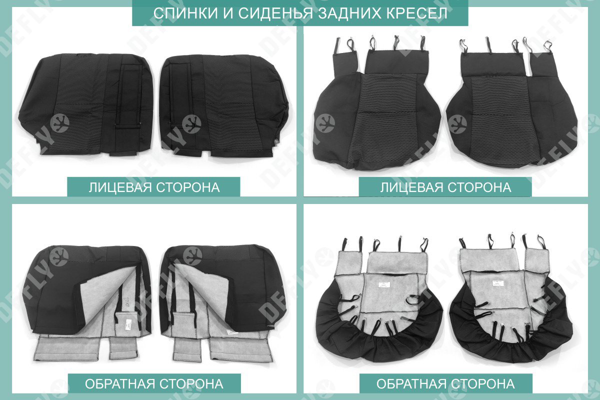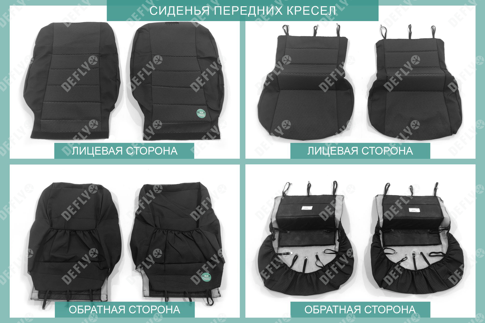 Материал: Жаккард, Цвет: Черный и темно-серый (оттенок и рисунок ткани может незначительно отличаться). Модельные чехлы от производителя “Defly” индивидуально сконструированы для каждого автомобиля. Изготовленные по лекалам оригинальных кресел, чехлы гарантируют идеальную посадку. В комплектацию входят детали всех элементов салона: передних кресел, заднего дивана, третьего ряда сидений, подголовников, подлокотников и т.д. Спинки передних кресел дополнены карманами. Все швы и технологические отверстия обработаны на оверлоке. Чехлы не ограничивают заводскую функциональность салона. Наличие в чехлах специального распускаемого шва не препятствует своевременному и полному раскрытию подушек безопасности. Специально разработанная система креплений позволяет надежно зафиксировать изделия. Авточехлы изготовлены из двух видов жаккарда: черного и темно-серого с рисунком. Подголовники, боковые и задние элементы выполнены из черного жаккарда. Центральные вставки сидений изготовлены из темно-серого жаккарда. Жаккард обеспечивает циркуляцию воздуха, что обеспечивает комфорт при длительных поездках. * Представленные фотографии являются примером исполнения и служат для демонстрации материалов и конструкции чехлов