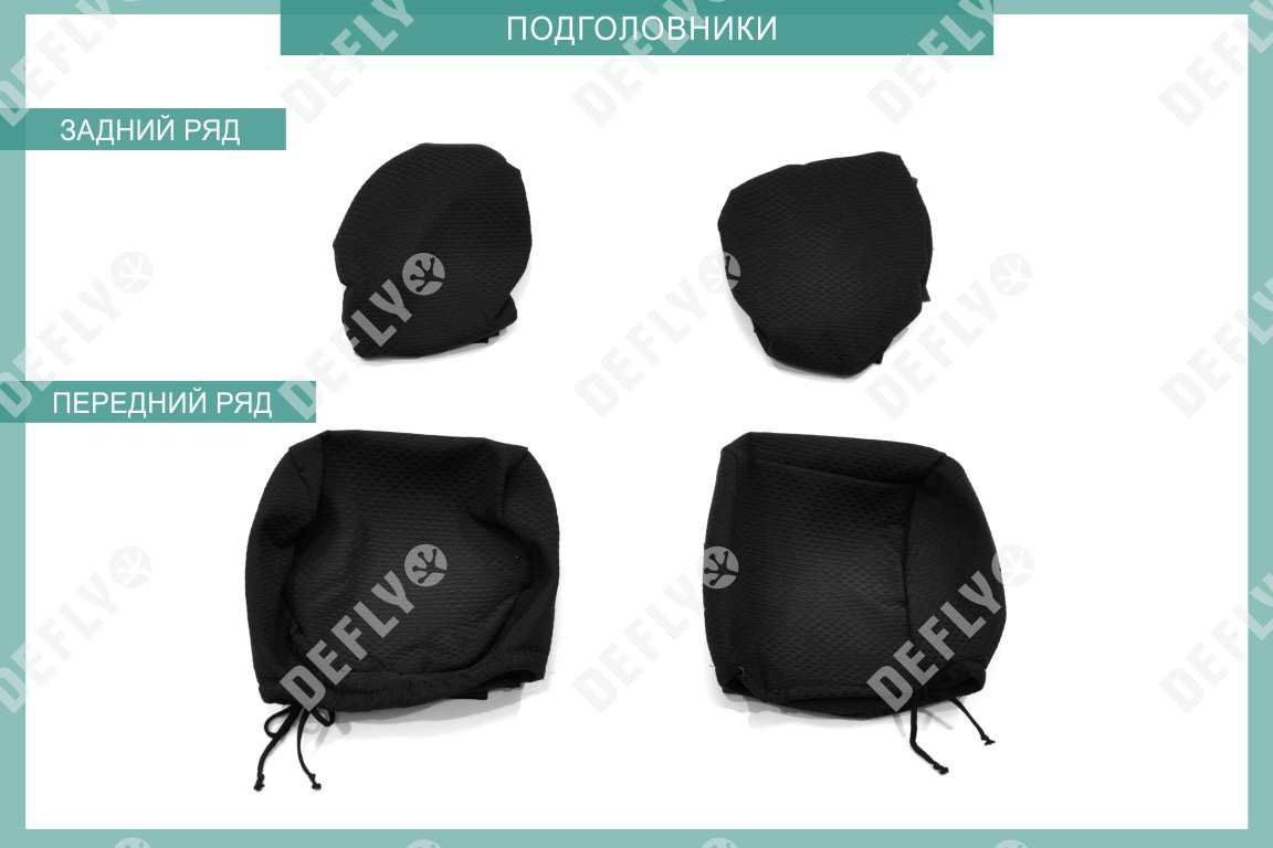 Первый ряд: Подголовник переднего кресла – 2 шт Спинка переднего кресла - 2 шт Сиденье переднего кресла – 2 шт Второй ряд: Подголовник заднего ряда – 2 шт Спинка дивана заднего рада большая – 1 шт Спинка дивана заднего ряда малая – 1 шт Сиденье заднего дивана – 1 шт Итого: 11 изделий
