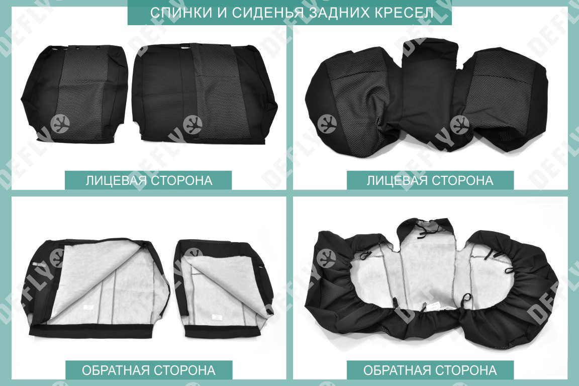 Материал: Жаккард, Цвет: Черный и темно-серый (оттенок и рисунок ткани может незначительно отличаться). Модельные чехлы от производителя “Defly” индивидуально сконструированы для каждого автомобиля. Изготовленные по лекалам оригинальных кресел, чехлы гарантируют идеальную посадку. В комплектацию входят детали всех элементов салона: передних кресел, заднего дивана, третьего ряда сидений, подголовников, подлокотников и т.д. Спинки передних кресел дополнены карманами. Все швы и технологические отверстия обработаны на оверлоке. Чехлы не ограничивают заводскую функциональность салона. Наличие в чехлах специального распускаемого шва не препятствует своевременному и полному раскрытию подушек безопасности. Специально разработанная система креплений позволяет надежно зафиксировать изделия. Авточехлы изготовлены из двух видов жаккарда: черного и темно-серого с рисунком. Подголовники, боковые и задние элементы выполнены из черного жаккарда. Центральные вставки сидений изготовлены из темно-серого жаккарда. Жаккард обеспечивает циркуляцию воздуха, что обеспечивает комфорт при длительных поездках. * Представленные фотографии являются примером исполнения и служат для демонстрации материалов и конструкции чехлов