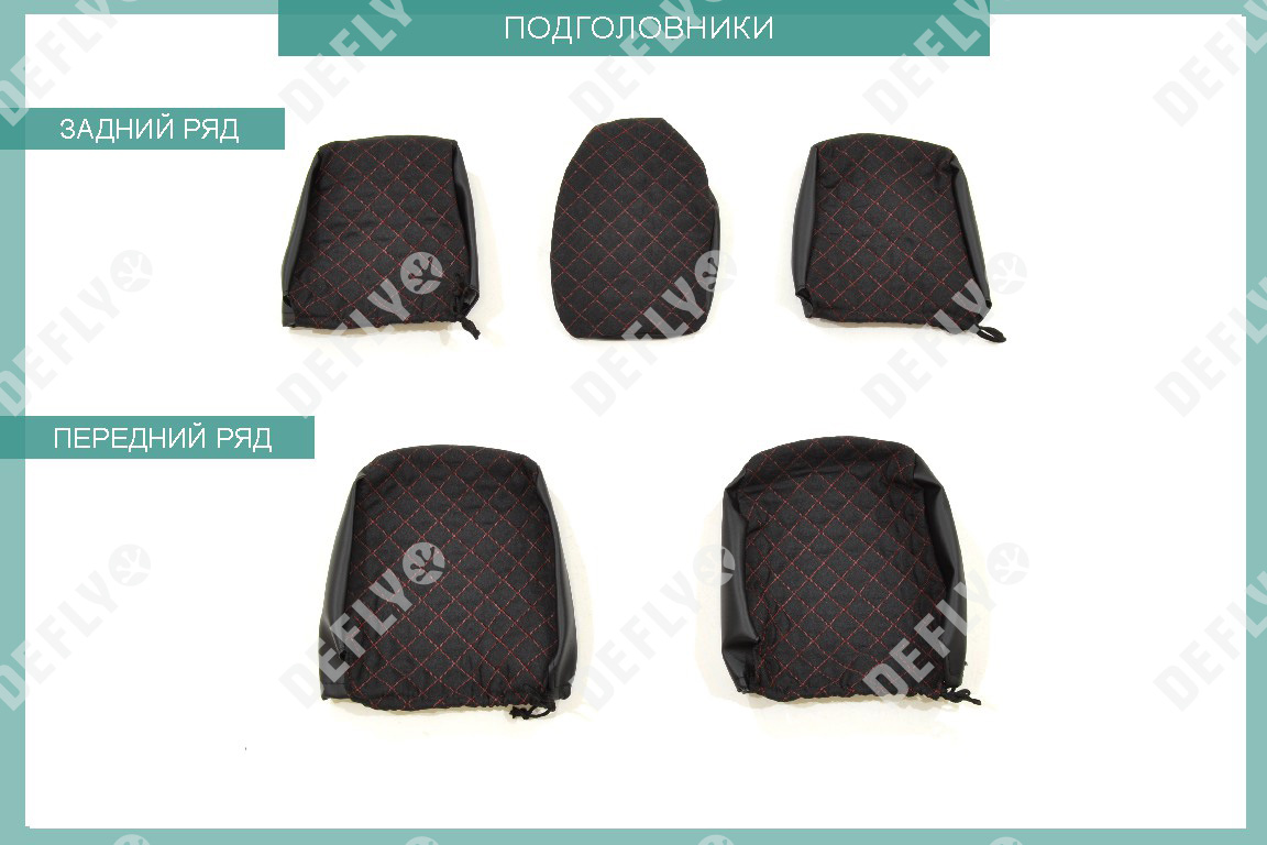 Материал: Экокожа гладкая, жаккард, Цвет: Черный и темно-серый (оттенок ткани может незначительно отличаться). Модельные чехлы от производителя “Defly” индивидуально сконструированы для каждого автомобиля. Изготовленные по лекалам оригинальных кресел, чехлы гарантируют идеальную посадку. В комплектацию входят детали всех элементов салона: передних кресел, заднего дивана, третьего ряда сидений, подголовников, подлокотников и т.д. Спинки передних кресел дополнены карманами. Все швы и технологические отверстия обработаны на оверлоке. Чехлы не ограничивают заводскую функциональность салона. Наличие в чехлах специального распускаемого шва не препятствует своевременному и полному раскрытию подушек безопасности. Специально разработанная система креплений позволяет надежно зафиксировать изделия. В комбинированных чехлах этой серии подголовники, боковые и задние элементы выполнены из черной экокожи, а центральные вставки сидений изготовлены из темно-серого жаккарда. Жаккардовые вставки обеспечивают циркуляцию воздуха, что обеспечивает комфорт при длительных поездках. * Представленные фотографии являются примером исполнения и служат для демонстрации материалов и конструкции чехлов.
