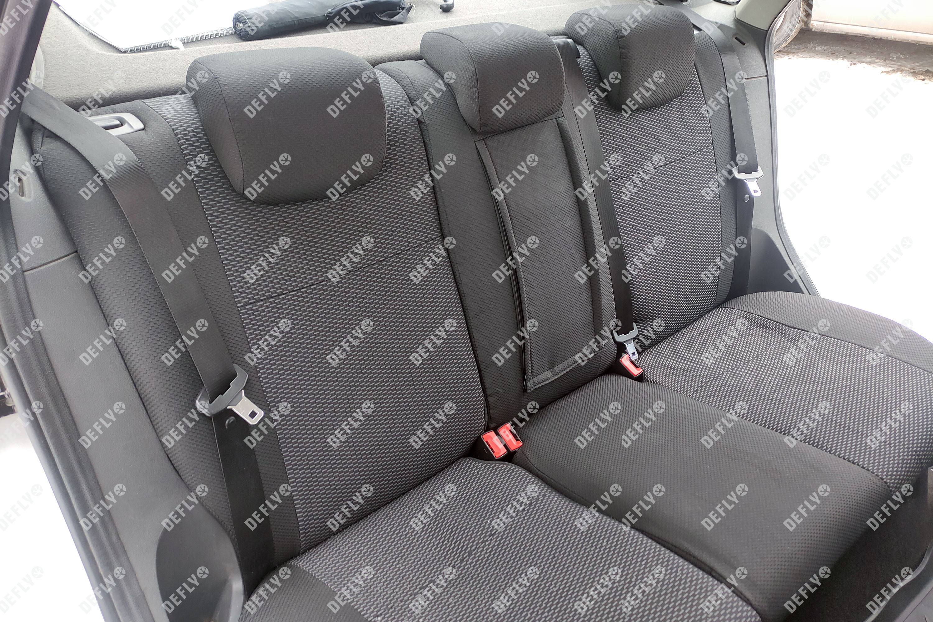Материал: Жаккард, Цвет: Черный и темно-серый (оттенок и рисунок ткани может незначительно отличаться). Модельные чехлы от производителя “Defly” индивидуально сконструированы для каждого автомобиля. Изготовленные по лекалам оригинальных кресел, чехлы гарантируют идеальную посадку. В комплектацию входят детали всех элементов салона: передних кресел, заднего дивана, третьего ряда сидений, подголовников, подлокотников и т.д. Спинки передних кресел дополнены карманами. Все швы и технологические отверстия обработаны на оверлоке. Чехлы не ограничивают заводскую функциональность салона. Наличие в чехлах специального распускаемого шва не препятствует своевременному и полному раскрытию подушек безопасности. Специально разработанная система креплений позволяет надежно зафиксировать изделия. Авточехлы изготовлены из двух видов жаккарда: черного и темно-серого с рисунком. Подголовники, боковые и задние элементы выполнены из черного жаккарда. Центральные вставки сидений изготовлены из темно-серого жаккарда. Жаккард обеспечивает циркуляцию воздуха, что обеспечивает комфорт при длительных поездках. * Представленные фотографии являются примером исполнения и служат для демонстрации материалов и конструкции чехлов