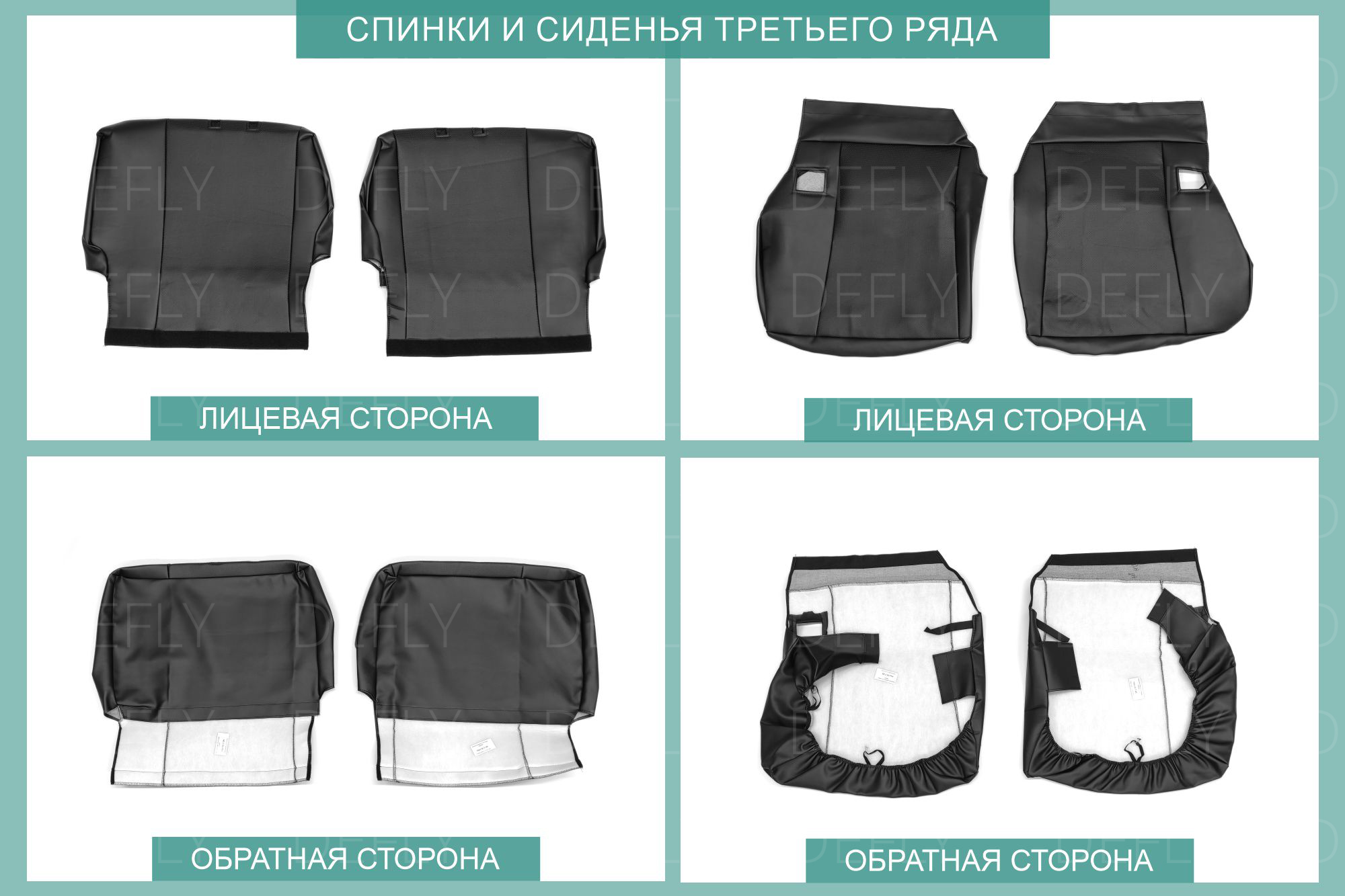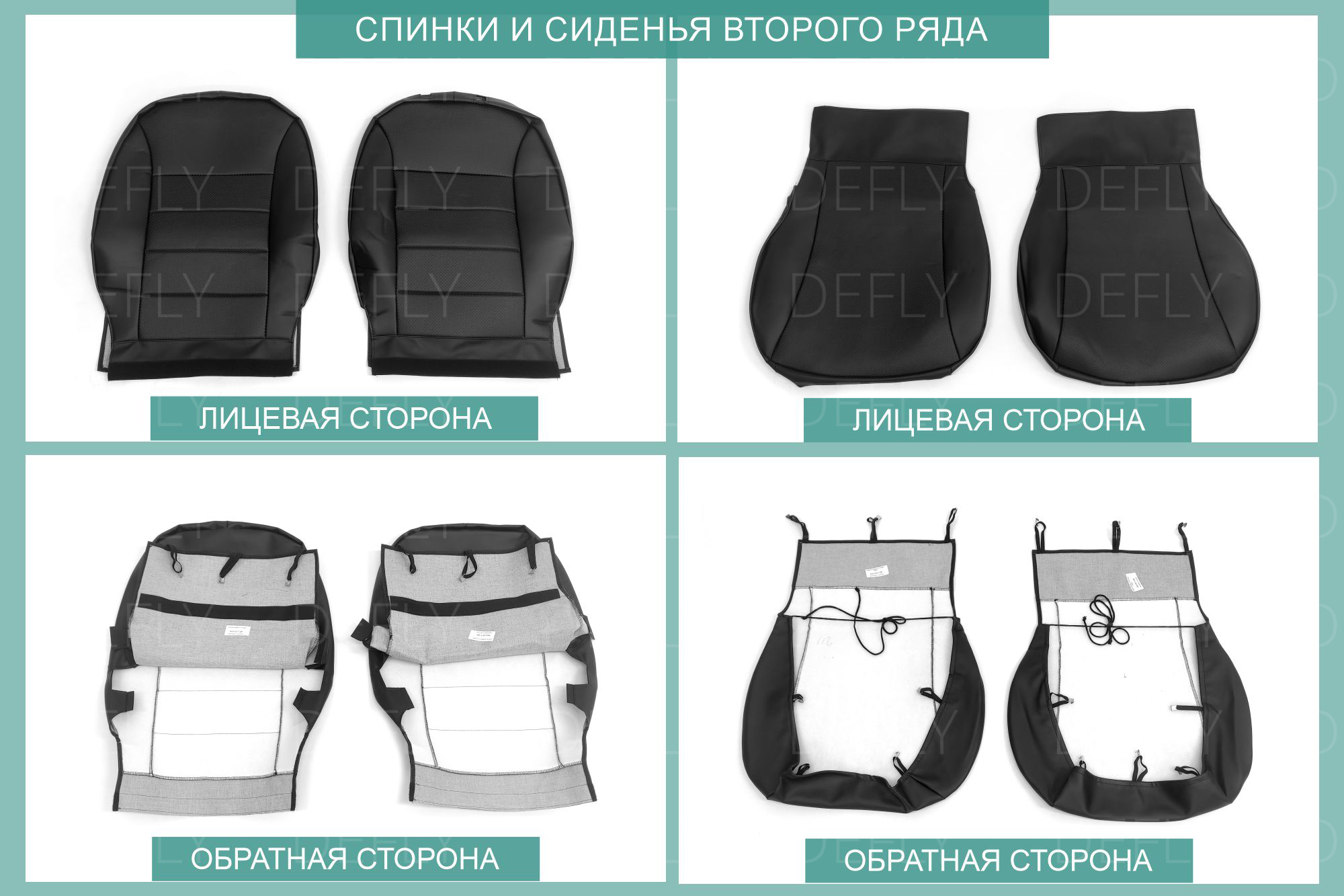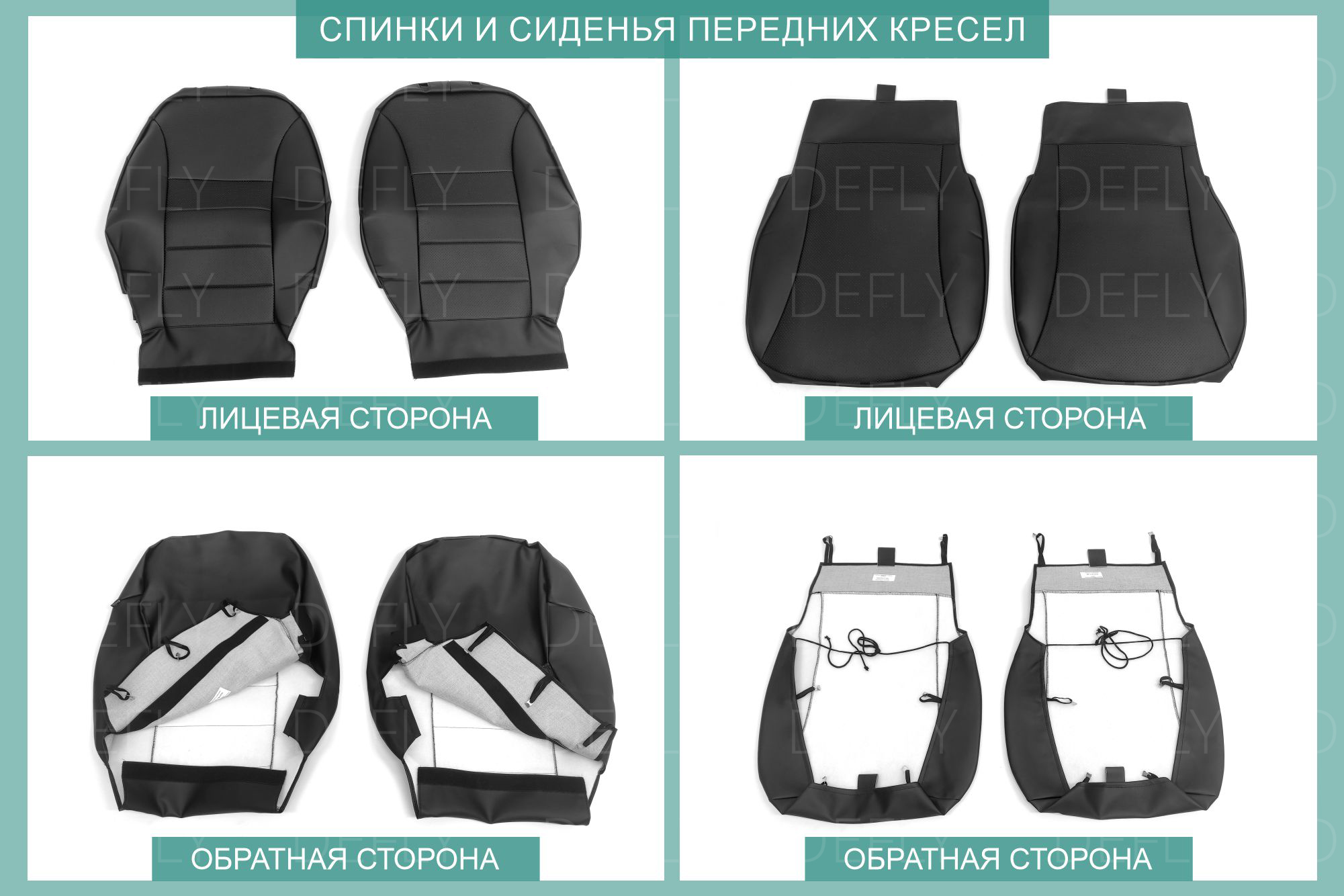 Материал: Экокожа гладкая, экокожа перфорированная, Цвет: Черный (оттенок ткани может незначительно отличаться). Модельные чехлы от производителя “Defly” индивидуально сконструированы для каждого автомобиля. Изготовленные по лекалам оригинальных кресел, чехлы гарантируют идеальную посадку. Все швы и технологические отверстия обработаны на оверлоке. Чехлы не ограничивают заводскую функциональность салона. Наличие в чехлах специального распускаемого шва не препятствует своевременному и полному раскрытию подушек безопасности. Специально разработанная система креплений позволяет надежно зафиксировать изделия. Авточехлы изготовлены из двух видов экокожи черного цвета: гладкой и перфорированной. Перфорированная экокожа используется в центральных элементах, что обеспечивает циркуляцию воздуха. * Представленные фотографии являются примером исполнения и служат для демонстрации материалов и конструкции чехлов.