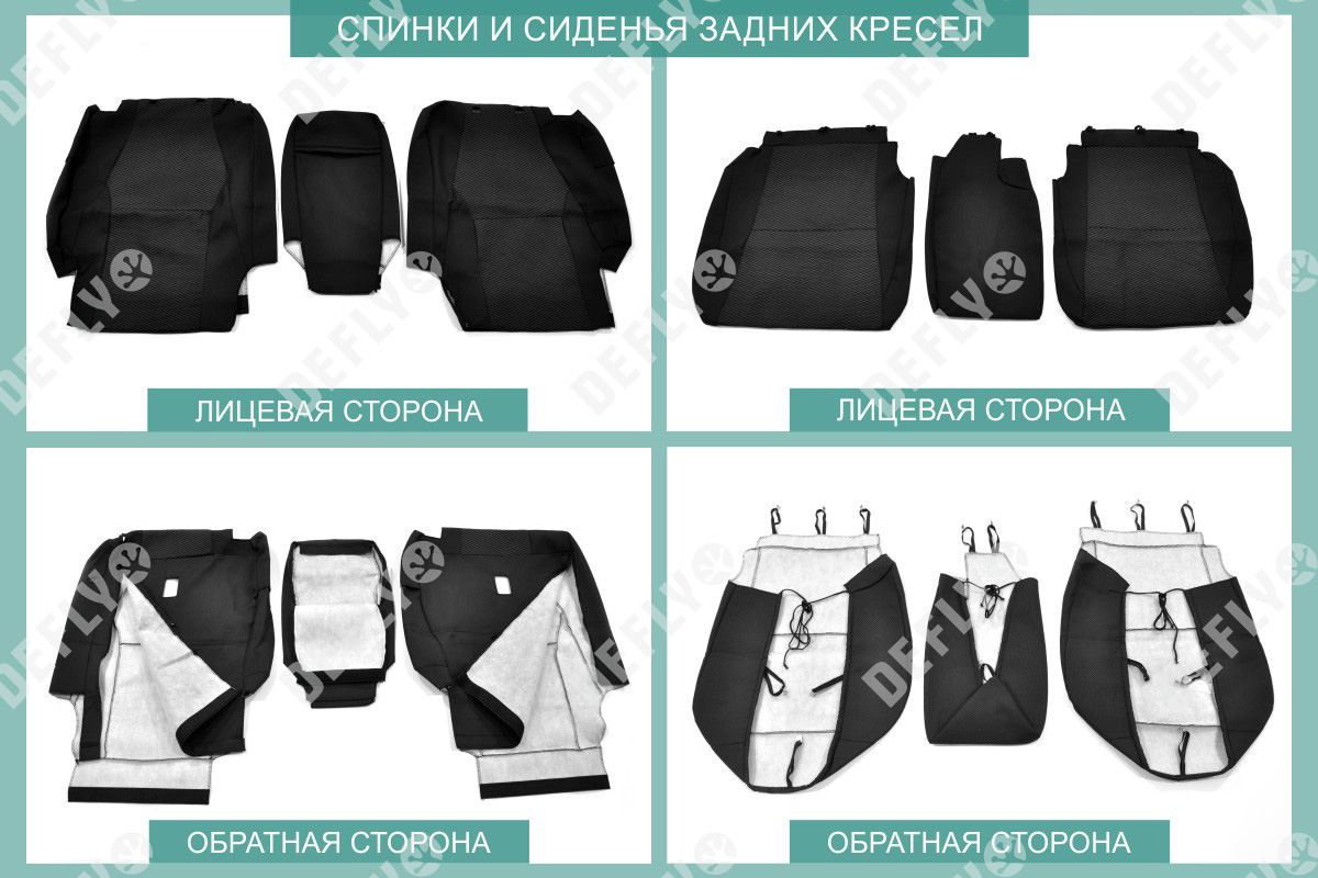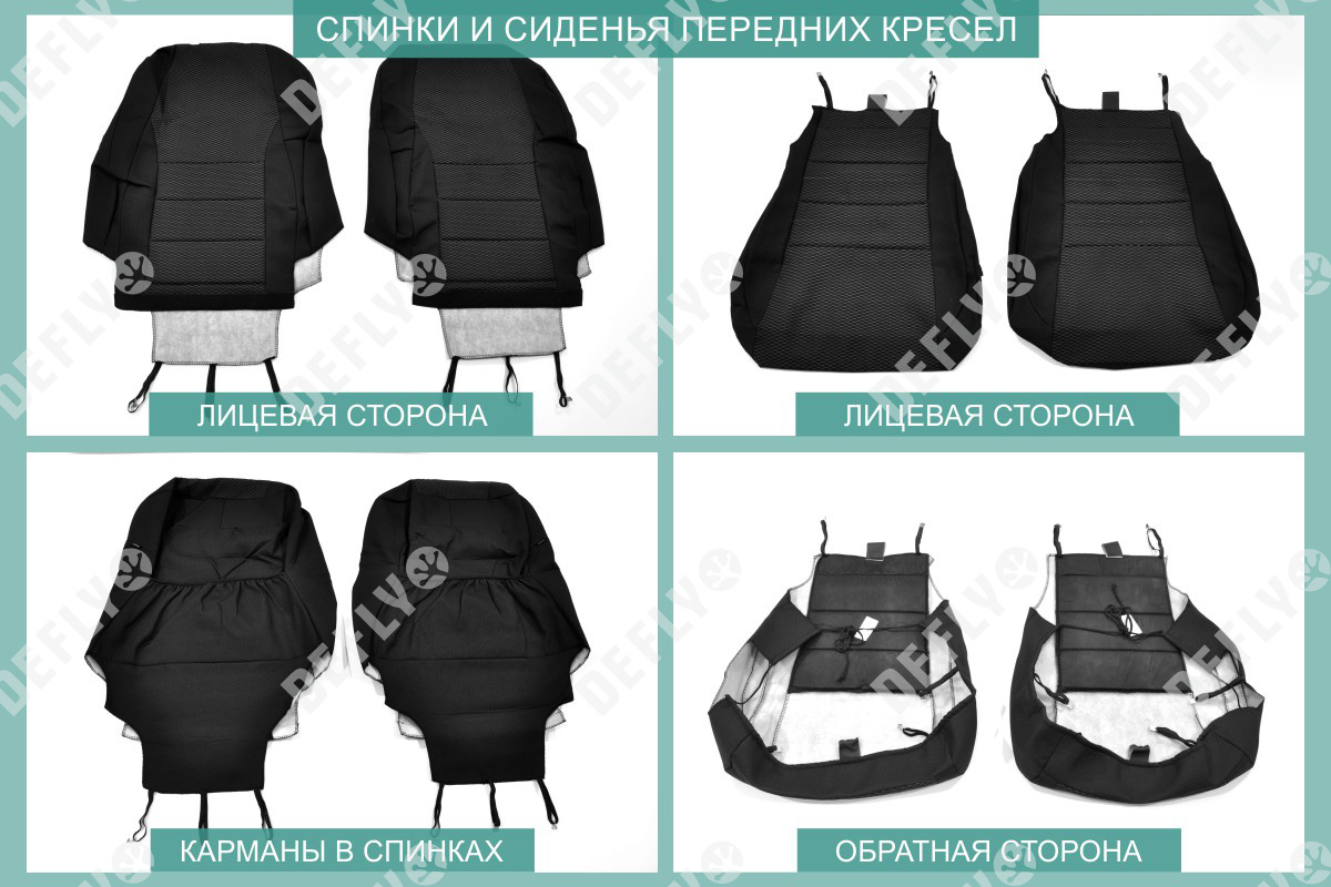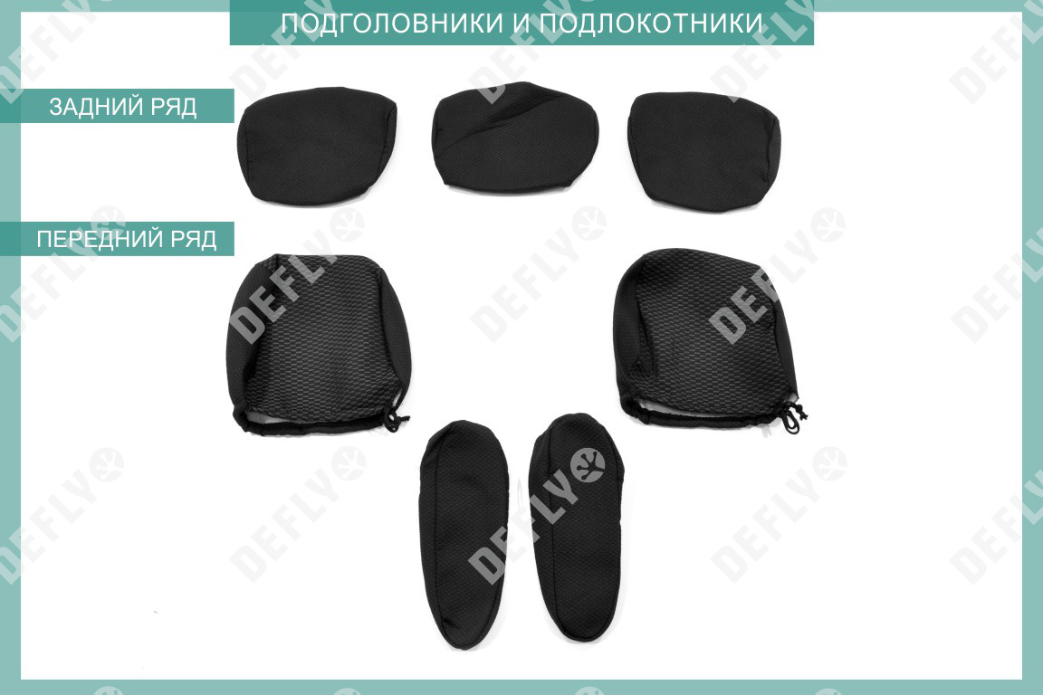 Материал: Жаккард, Цвет: Черный и темно-серый (оттенок и рисунок ткани может незначительно отличаться). Модельные чехлы от производителя “Defly” индивидуально сконструированы для каждого автомобиля. Изготовленные по лекалам оригинальных кресел, чехлы гарантируют идеальную посадку. В комплектацию входят детали всех элементов салона: передних кресел, заднего дивана, третьего ряда сидений, подголовников, подлокотников и т.д. Спинки передних кресел дополнены карманами. Все швы и технологические отверстия обработаны на оверлоке. Чехлы не ограничивают заводскую функциональность салона. Наличие в чехлах специального распускаемого шва не препятствует своевременному и полному раскрытию подушек безопасности. Специально разработанная система креплений позволяет надежно зафиксировать изделия. Авточехлы изготовлены из двух видов жаккарда: черного и темно-серого с рисунком. Подголовники, боковые и задние элементы выполнены из черного жаккарда. Центральные вставки сидений изготовлены из темно-серого жаккарда. Жаккард обеспечивает циркуляцию воздуха, что обеспечивает комфорт при длительных поездках. * Представленные фотографии являются примером исполнения и служат для демонстрации материалов и конструкции чехлов