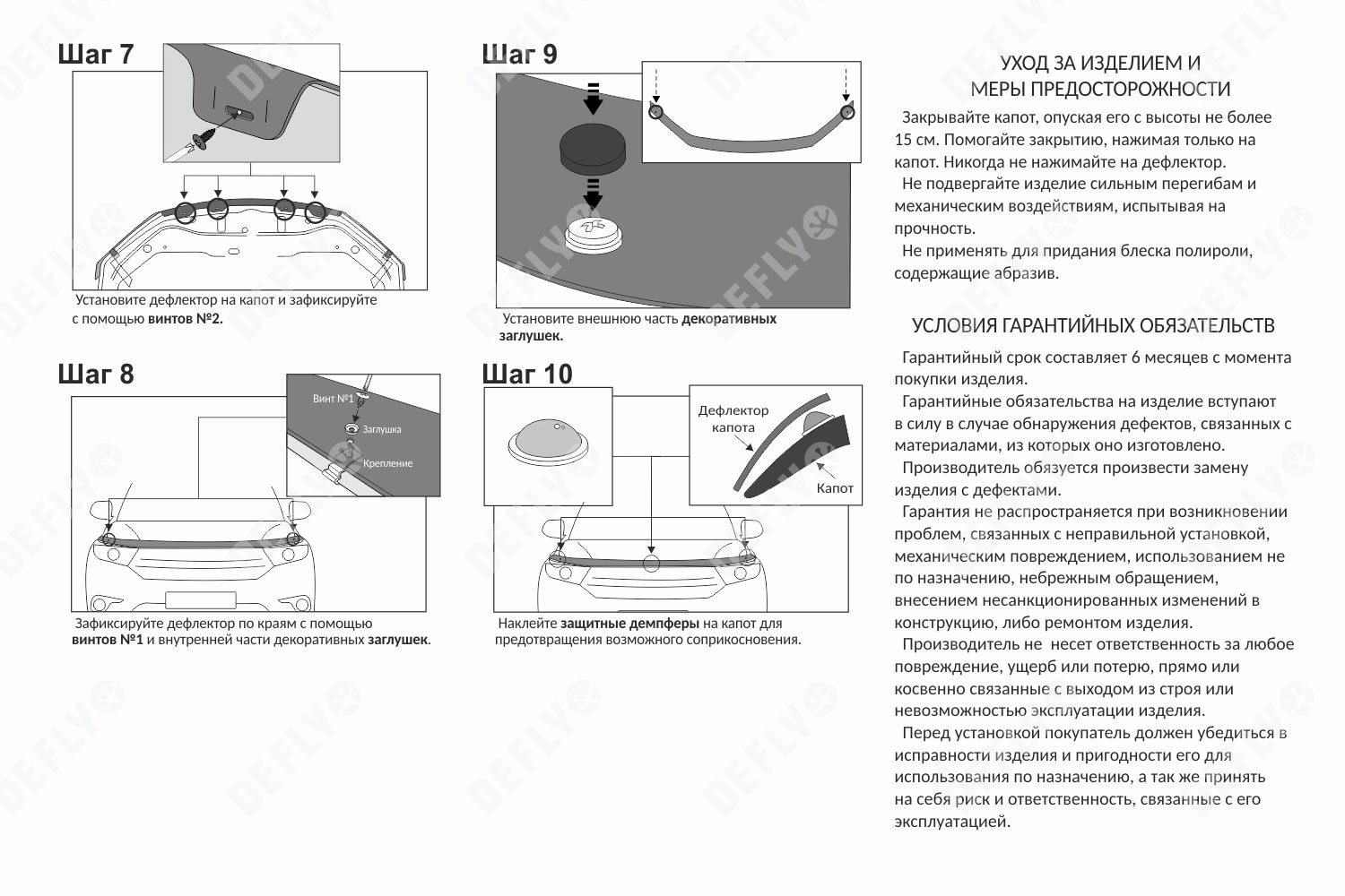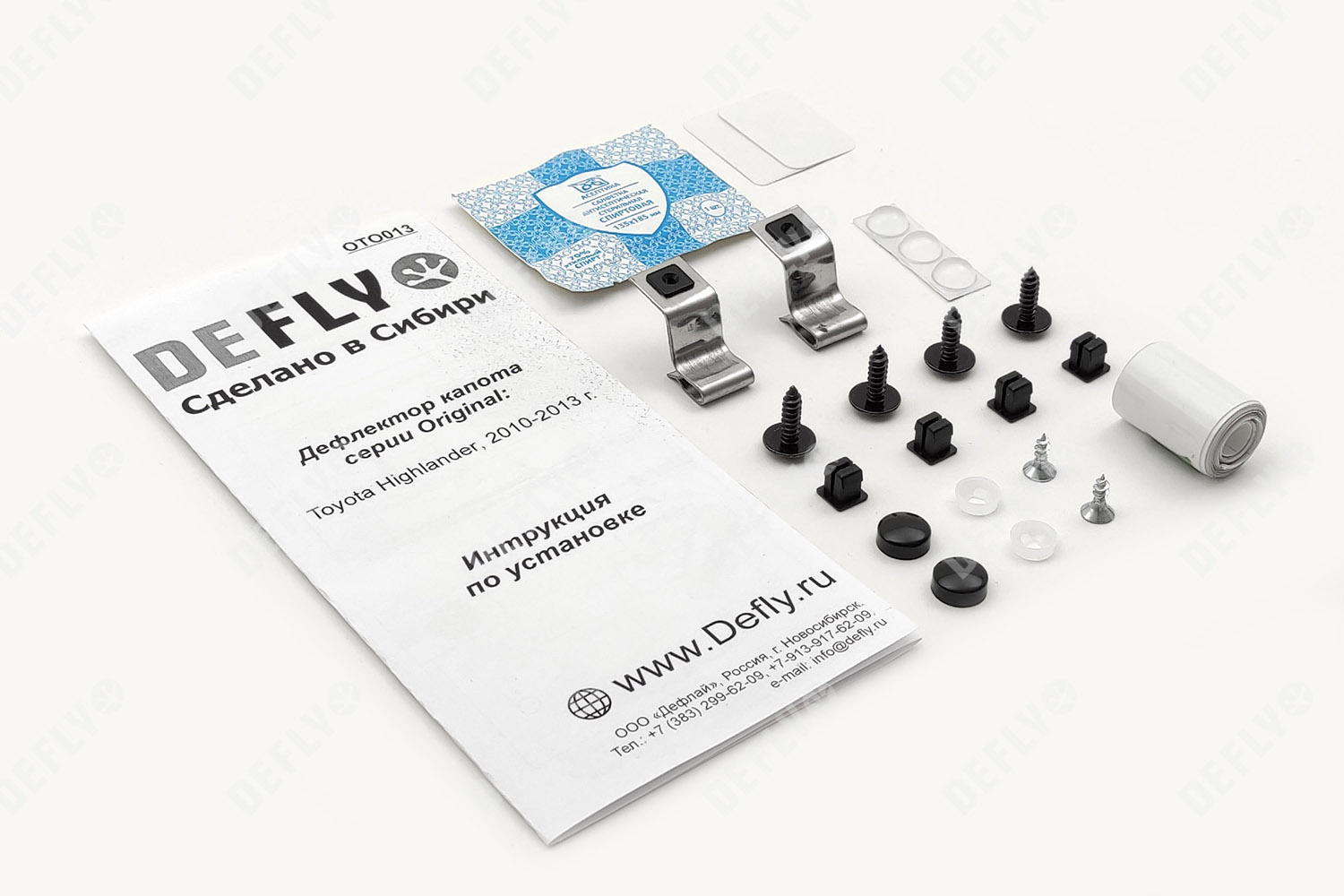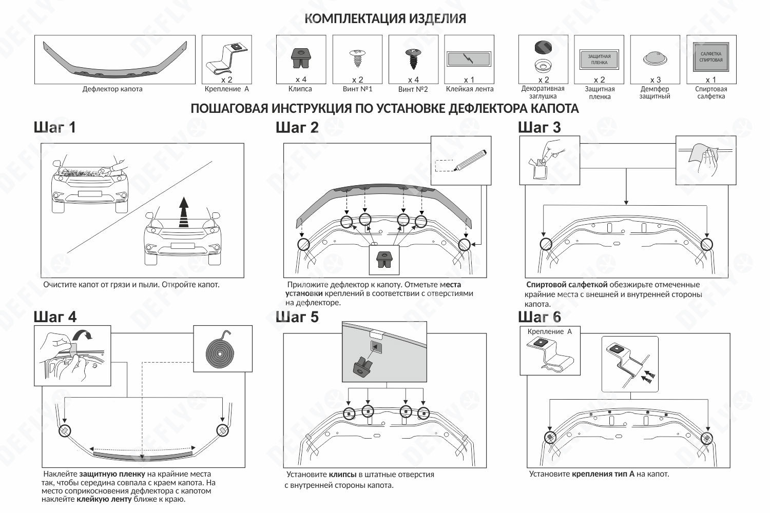 Дефлекторы капота от производителя “Defly” cерии «Original» минимально влияют на аэродинамические характеристики автомобиля и органично вписывается в его дизайн. Ребро жесткости, созданное загибом передней части дефлектора, увеличивает прочность конструкции и надежно защищает край капота от сколов. Уникальные системы креплений серии «Original» разрабатываются индивидуально для каждой модели автомобиля. Максимально надежная фиксация дефлектора обеспечивается за счет установки пластиковых клипс в штатные места, с внутренней стороны капота, и дополнительных фиксаторов по краю изделия. Дополнительные демпферы предотвращают вибрации дефлектора при движении. Изделие легко снимается, что позволяет беспрепятственно мыть, красить и производить необходимые действия с транспортным средством. Наклейку с логотипом автомобиля можно легко удалить.
