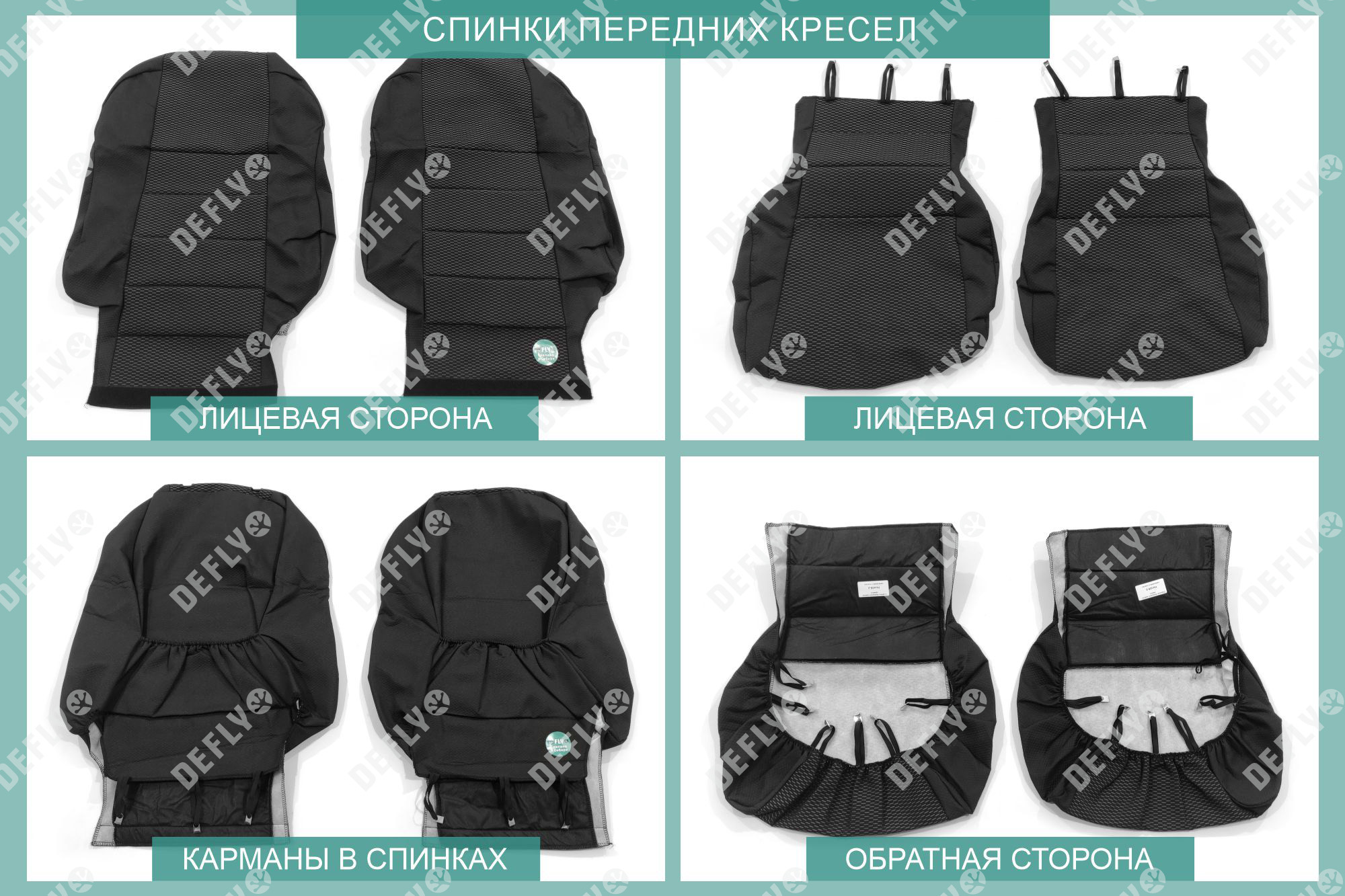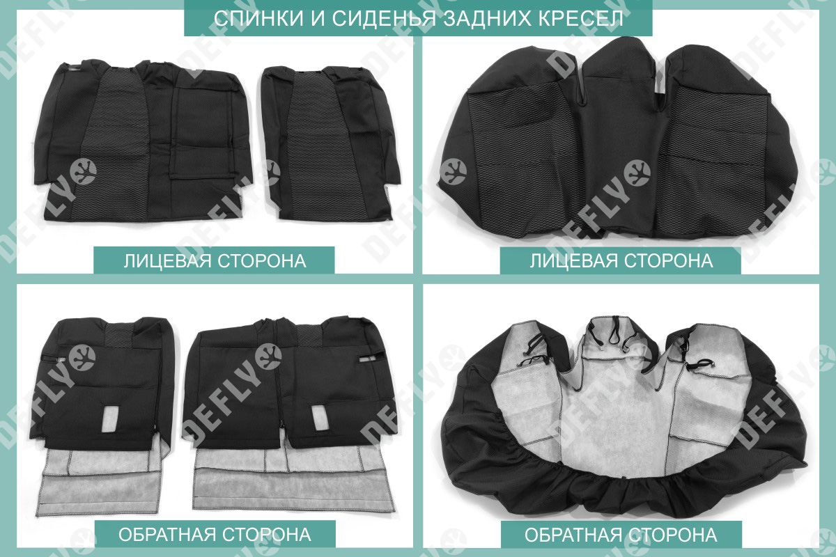 Материал: Жаккард, Цвет: Черный и темно-серый (оттенок и рисунок ткани может незначительно отличаться). Модельные чехлы от производителя “Defly” индивидуально сконструированы для каждого автомобиля. Изготовленные по лекалам оригинальных кресел, чехлы гарантируют идеальную посадку. В комплектацию входят детали всех элементов салона: передних кресел, заднего дивана, третьего ряда сидений, подголовников, подлокотников и т.д. Спинки передних кресел дополнены карманами. Все швы и технологические отверстия обработаны на оверлоке. Чехлы не ограничивают заводскую функциональность салона. Наличие в чехлах специального распускаемого шва не препятствует своевременному и полному раскрытию подушек безопасности. Специально разработанная система креплений позволяет надежно зафиксировать изделия. Авточехлы изготовлены из двух видов жаккарда: черного и темно-серого с рисунком. Подголовники, боковые и задние элементы выполнены из черного жаккарда. Центральные вставки сидений изготовлены из темно-серого жаккарда. Жаккард обеспечивает циркуляцию воздуха, что обеспечивает комфорт при длительных поездках. * Представленные фотографии являются примером исполнения и служат для демонстрации материалов и конструкции чехлов