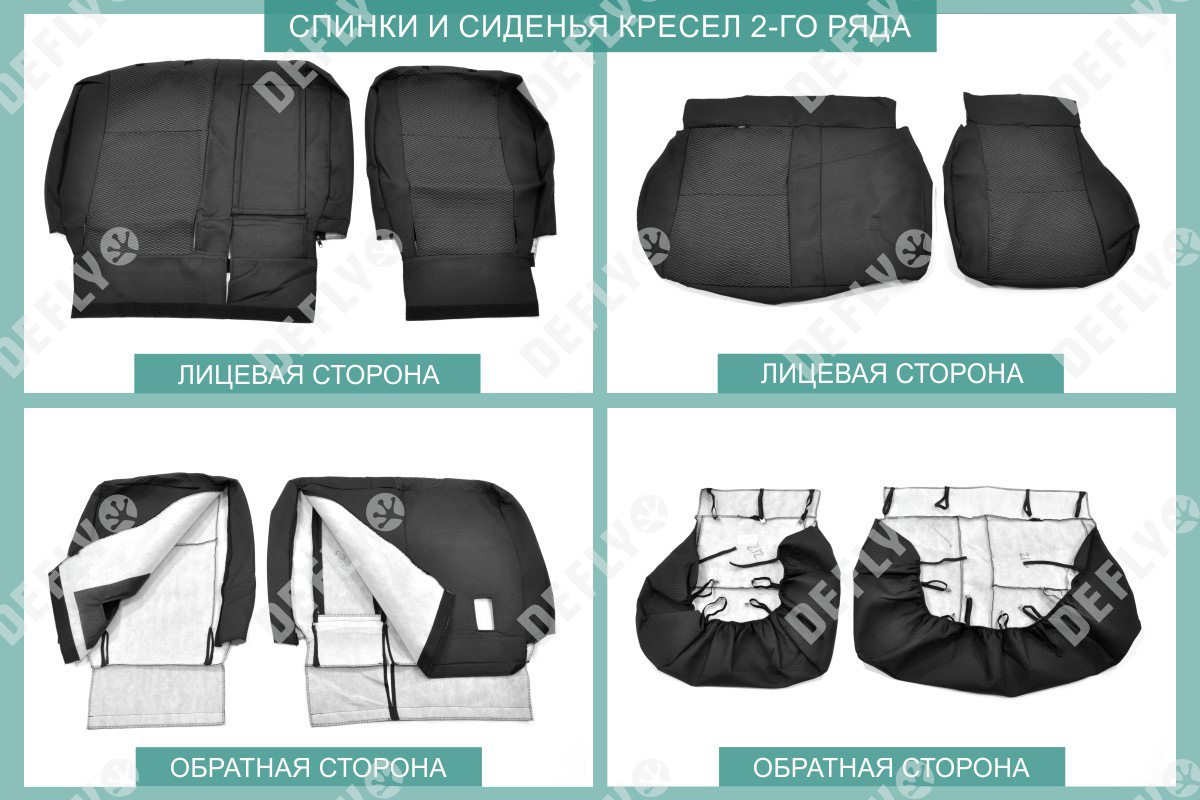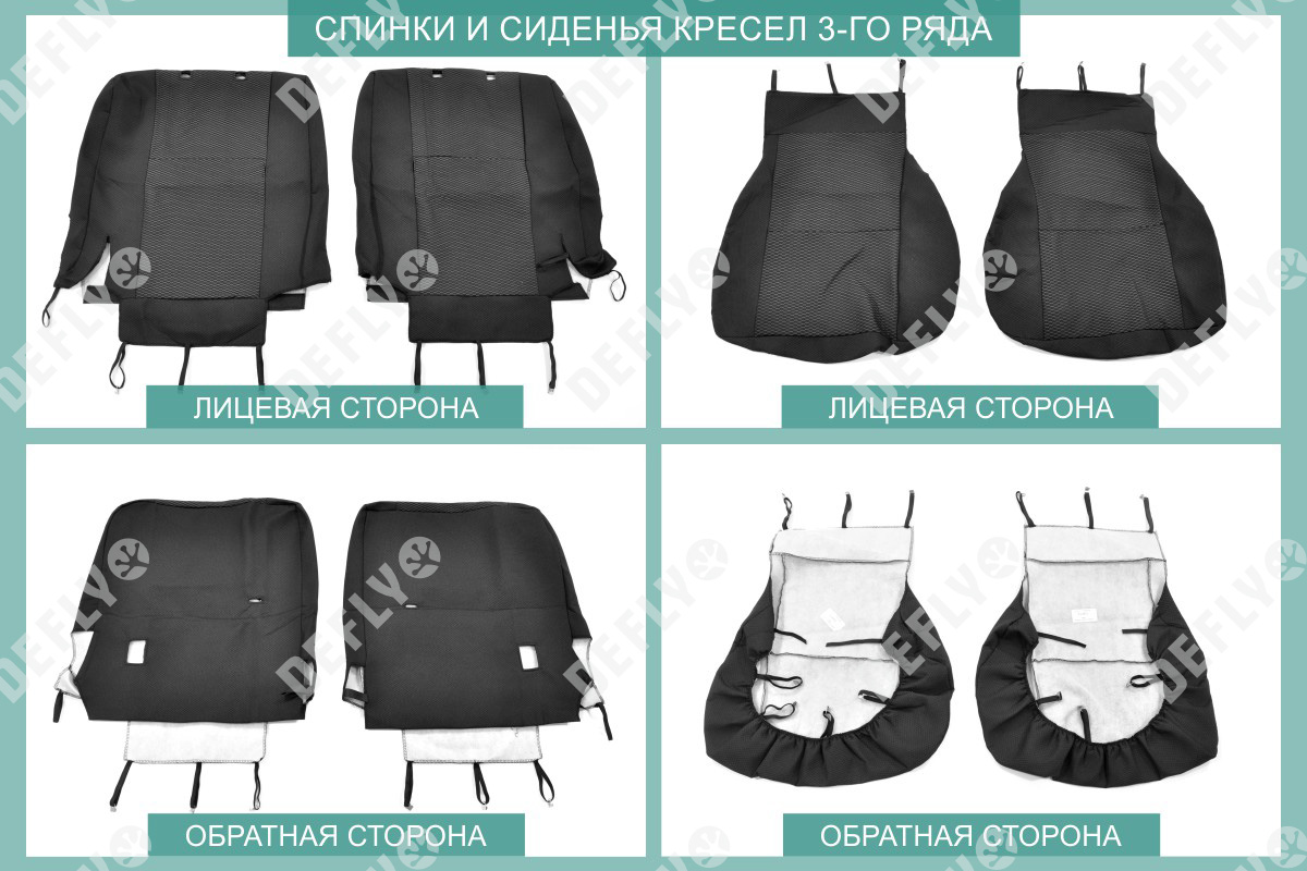 Материал: Жаккард, Цвет: Черный и темно-серый (оттенок и рисунок ткани может незначительно отличаться). Модельные чехлы от производителя “Defly” индивидуально сконструированы для каждого автомобиля. Изготовленные по лекалам оригинальных кресел, чехлы гарантируют идеальную посадку. В комплектацию входят детали всех элементов салона: передних кресел, заднего дивана, третьего ряда сидений, подголовников, подлокотников и т.д. Спинки передних кресел дополнены карманами. Все швы и технологические отверстия обработаны на оверлоке. Чехлы не ограничивают заводскую функциональность салона. Наличие в чехлах специального распускаемого шва не препятствует своевременному и полному раскрытию подушек безопасности. Специально разработанная система креплений позволяет надежно зафиксировать изделия. Авточехлы изготовлены из двух видов жаккарда: черного и темно-серого с рисунком. Подголовники, боковые и задние элементы выполнены из черного жаккарда. Центральные вставки сидений изготовлены из темно-серого жаккарда. Жаккард обеспечивает циркуляцию воздуха, что обеспечивает комфорт при длительных поездках. * Представленные фотографии являются примером исполнения и служат для демонстрации материалов и конструкции чехлов