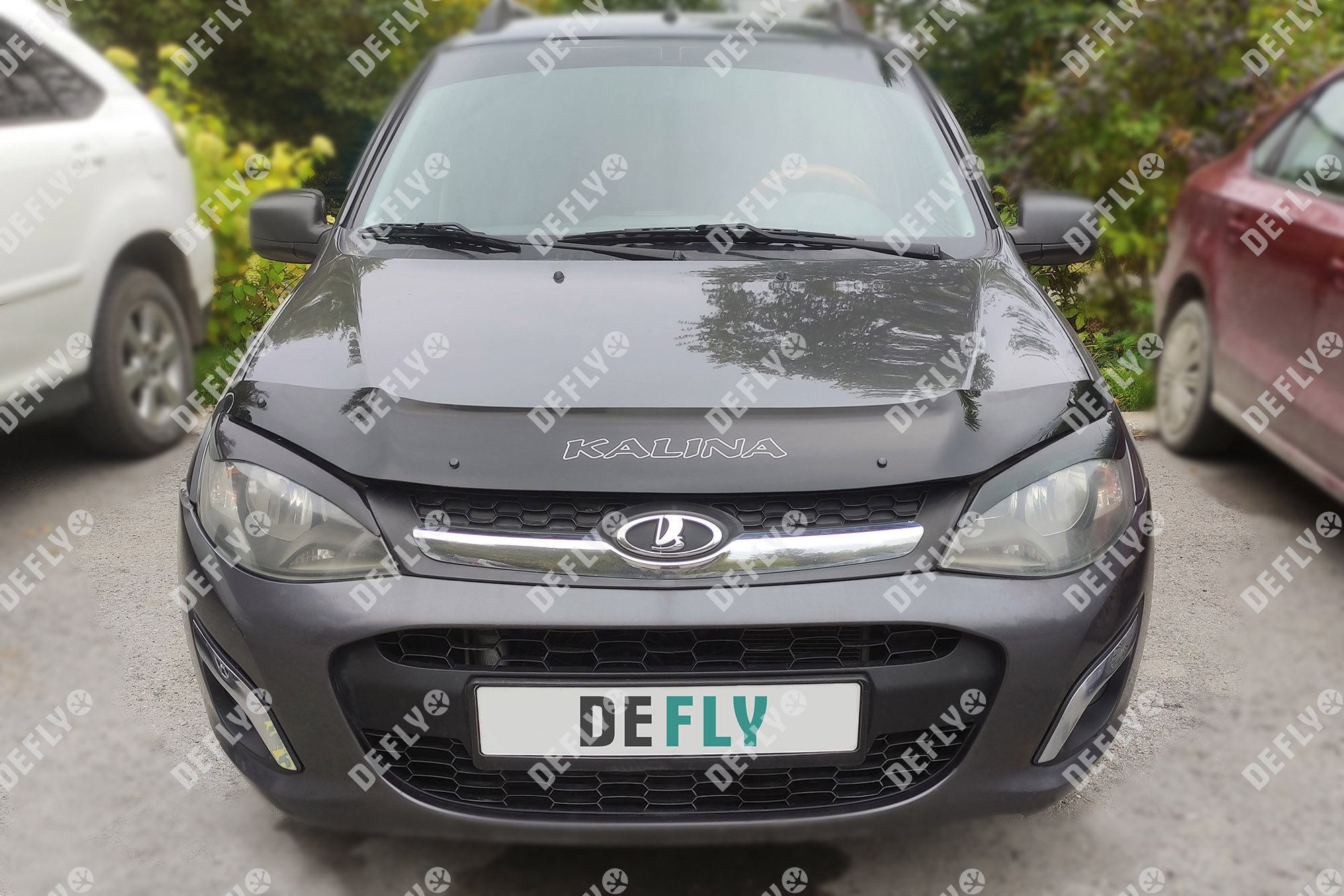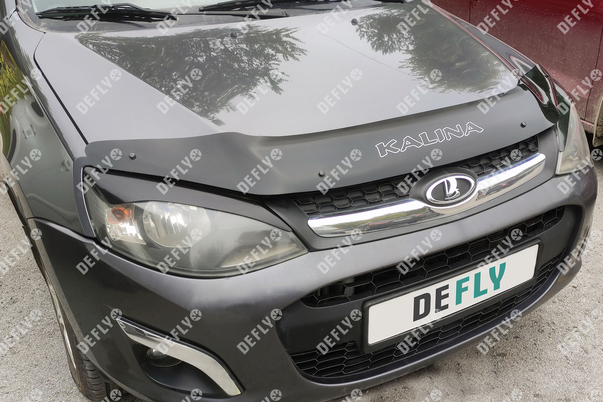Дефлектор капота Лада Калина 2, 2013-2018, еврокрепеж