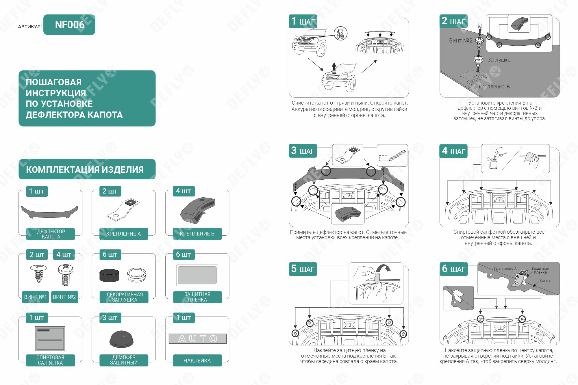 Дефлекторы капота от производителя “Defly” серии NEOFIX имеют уникальную систему креплений, разработанную и запатентованную компанией "Defly", которая обеспечивает надежную и легкую фиксацию изделия, не повреждая покрытие автомобиля. Агрессивная аэродинамическая форма дефлекторов эффективно перенаправляет воздушные потоки, защищая лакокрасочное покрытие капота и лобовое стекло. Изделие минимально влияет на аэродинамические характеристики автомобиля и органично вписывается в его дизайн. Дополнительные демпферы предотвращают вибрации дефлектора при движении. Изделие легко снимается, что позволяет беспрепятственно мыть, красить и производить необходимые действия с транспортным средством.
