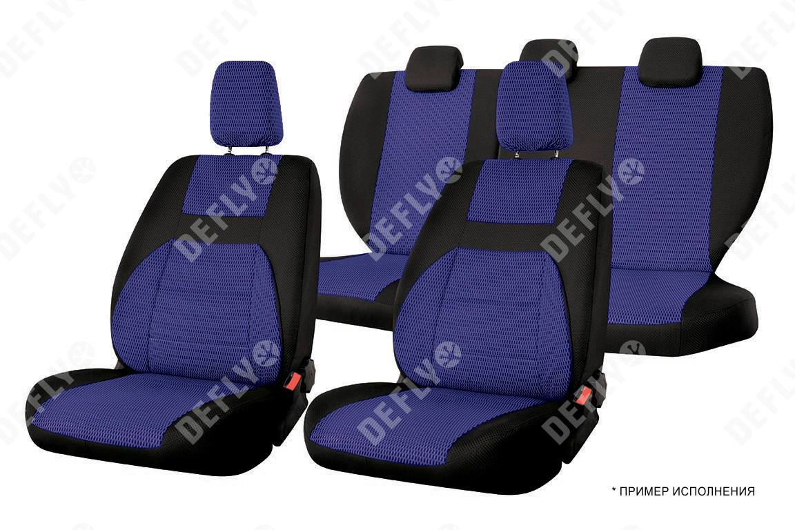 Авточехлы из жаккарда изготовлены из современных, практичных, износоустойчивых материалов. Подголовники, боковые и задние элементы выполнены из черного жаккарда. Центральные вставки сидений изготовлены из темно-серого жаккарда. Спинки передних кресел дополнены карманами.