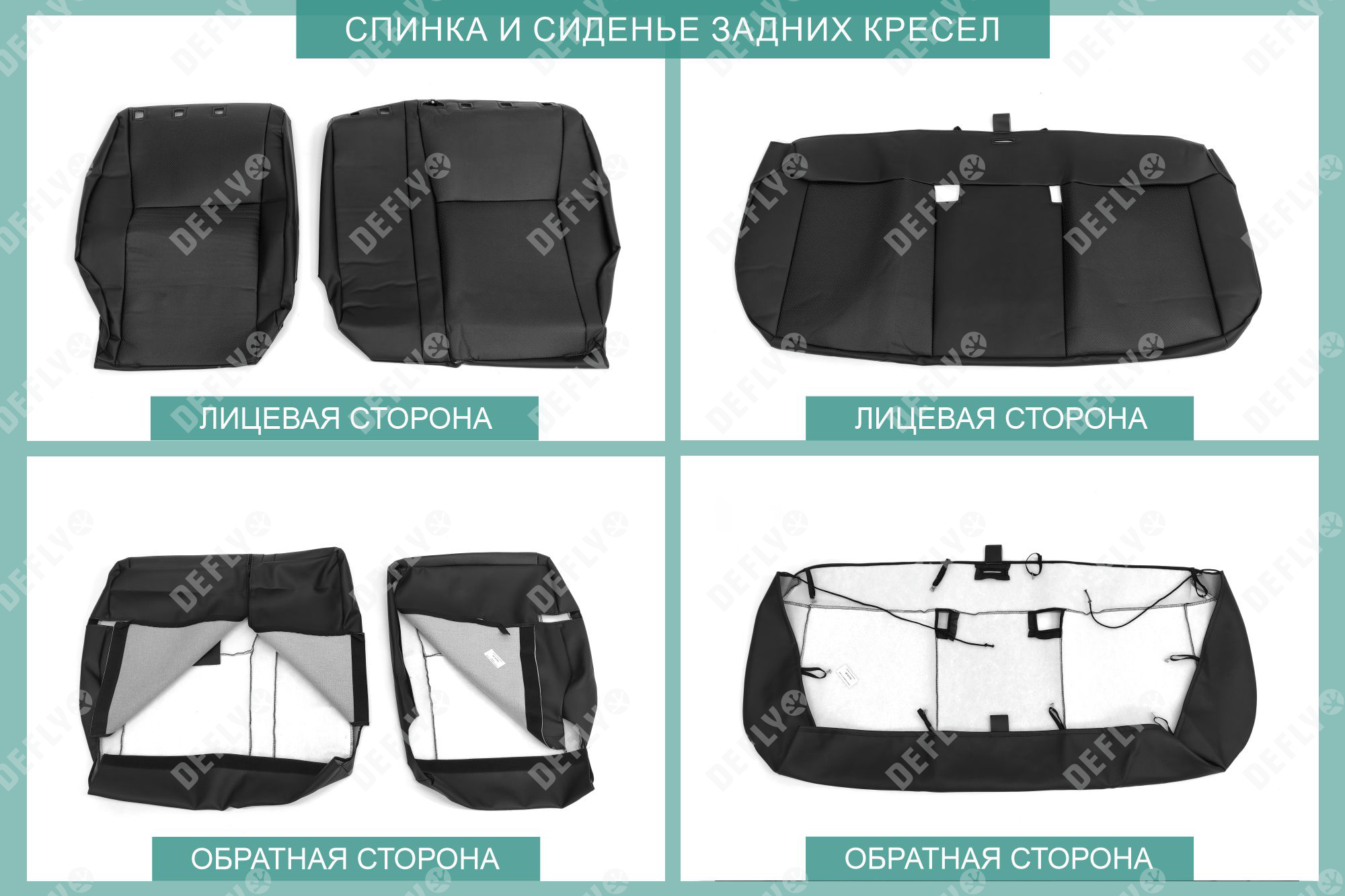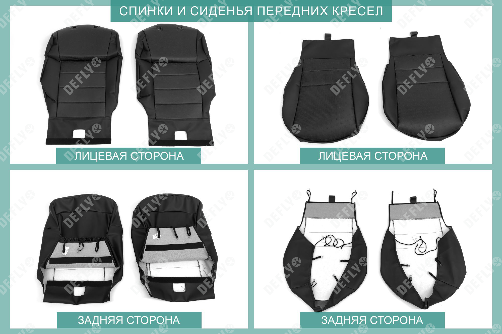 Материал: Экокожа гладкая, экокожа перфорированная, Цвет: Черный (оттенок ткани может незначительно отличаться). Модельные чехлы от производителя “Defly” индивидуально сконструированы для каждого автомобиля. Изготовленные по лекалам оригинальных кресел, чехлы гарантируют идеальную посадку. Все швы и технологические отверстия обработаны на оверлоке. Чехлы не ограничивают заводскую функциональность салона. Наличие в чехлах специального распускаемого шва не препятствует своевременному и полному раскрытию подушек безопасности. Специально разработанная система креплений позволяет надежно зафиксировать изделия. Авточехлы изготовлены из двух видов экокожи черного цвета: гладкой и перфорированной. Перфорированная экокожа используется в центральных элементах, что обеспечивает циркуляцию воздуха. * Представленные фотографии являются примером исполнения и служат для демонстрации материалов и конструкции чехлов.