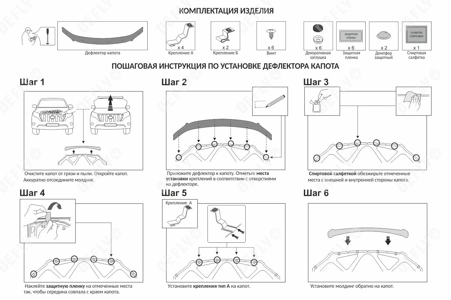 Дефлекторы капота от производителя “Defly” cерии «Original» минимально влияют на аэродинамические характеристики автомобиля и органично вписывается в его дизайн. Ребро жесткости, созданное загибом передней части дефлектора, увеличивает прочность конструкции и надежно защищает край капота от сколов. Уникальные системы креплений серии «Original» разрабатываются индивидуально для каждой модели автомобиля. Максимально надежная фиксация дефлектора обеспечивается за счет установки пластиковых клипс в штатные места, с внутренней стороны капота, и дополнительных фиксаторов по краю изделия. Дополнительные демпферы предотвращают вибрации дефлектора при движении. Изделие легко снимается, что позволяет беспрепятственно мыть, красить и производить необходимые действия с транспортным средством. Наклейку с логотипом автомобиля можно легко удалить.