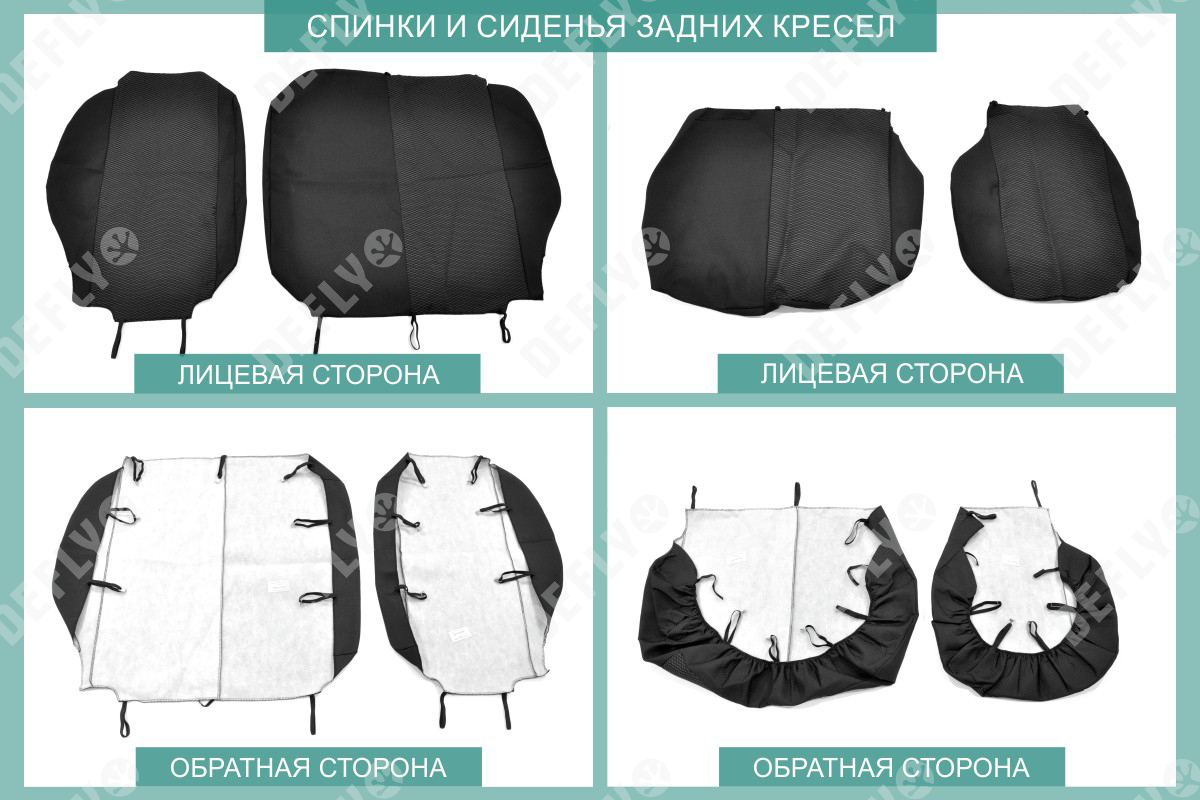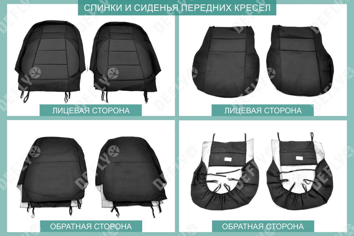 Материал: Жаккард, Цвет: Черный и темно-серый (оттенок и рисунок ткани может незначительно отличаться). Модельные чехлы от производителя “Defly” индивидуально сконструированы для каждого автомобиля. Изготовленные по лекалам оригинальных кресел, чехлы гарантируют идеальную посадку. В комплектацию входят детали всех элементов салона: передних кресел, заднего дивана, третьего ряда сидений, подголовников, подлокотников и т.д. Спинки передних кресел дополнены карманами. Все швы и технологические отверстия обработаны на оверлоке. Чехлы не ограничивают заводскую функциональность салона. Наличие в чехлах специального распускаемого шва не препятствует своевременному и полному раскрытию подушек безопасности. Специально разработанная система креплений позволяет надежно зафиксировать изделия. Авточехлы изготовлены из двух видов жаккарда: черного и темно-серого с рисунком. Подголовники, боковые и задние элементы выполнены из черного жаккарда. Центральные вставки сидений изготовлены из темно-серого жаккарда. Жаккард обеспечивает циркуляцию воздуха, что обеспечивает комфорт при длительных поездках. * Представленные фотографии являются примером исполнения и служат для демонстрации материалов и конструкции чехлов