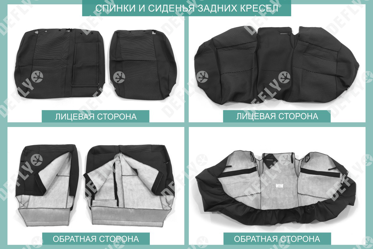 Материал: Жаккард, Цвет: Черный и темно-серый (оттенок и рисунок ткани может незначительно отличаться). Модельные чехлы от производителя “Defly” индивидуально сконструированы для каждого автомобиля. Изготовленные по лекалам оригинальных кресел, чехлы гарантируют идеальную посадку. В комплектацию входят детали всех элементов салона: передних кресел, заднего дивана, третьего ряда сидений, подголовников, подлокотников и т.д. Спинки передних кресел дополнены карманами. Все швы и технологические отверстия обработаны на оверлоке. Чехлы не ограничивают заводскую функциональность салона. Наличие в чехлах специального распускаемого шва не препятствует своевременному и полному раскрытию подушек безопасности. Специально разработанная система креплений позволяет надежно зафиксировать изделия. Авточехлы изготовлены из двух видов жаккарда: черного и темно-серого с рисунком. Подголовники, боковые и задние элементы выполнены из черного жаккарда. Центральные вставки сидений изготовлены из темно-серого жаккарда. Жаккард обеспечивает циркуляцию воздуха, что обеспечивает комфорт при длительных поездках. * Представленные фотографии являются примером исполнения и служат для демонстрации материалов и конструкции чехлов