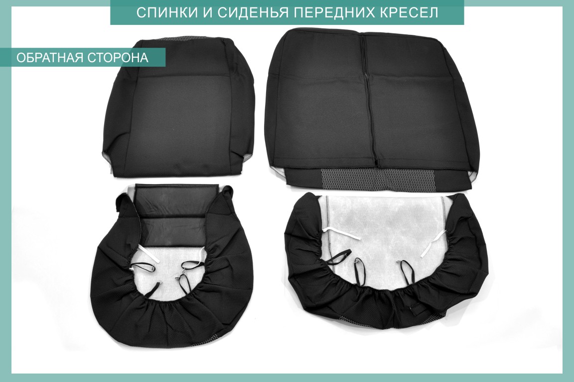 Первый ряд: Подголовник переднего кресла – 2 шт Спинка переднего кресла – 2 шт Сиденье переднего кресла – 2 шт Итого: 6 изделий