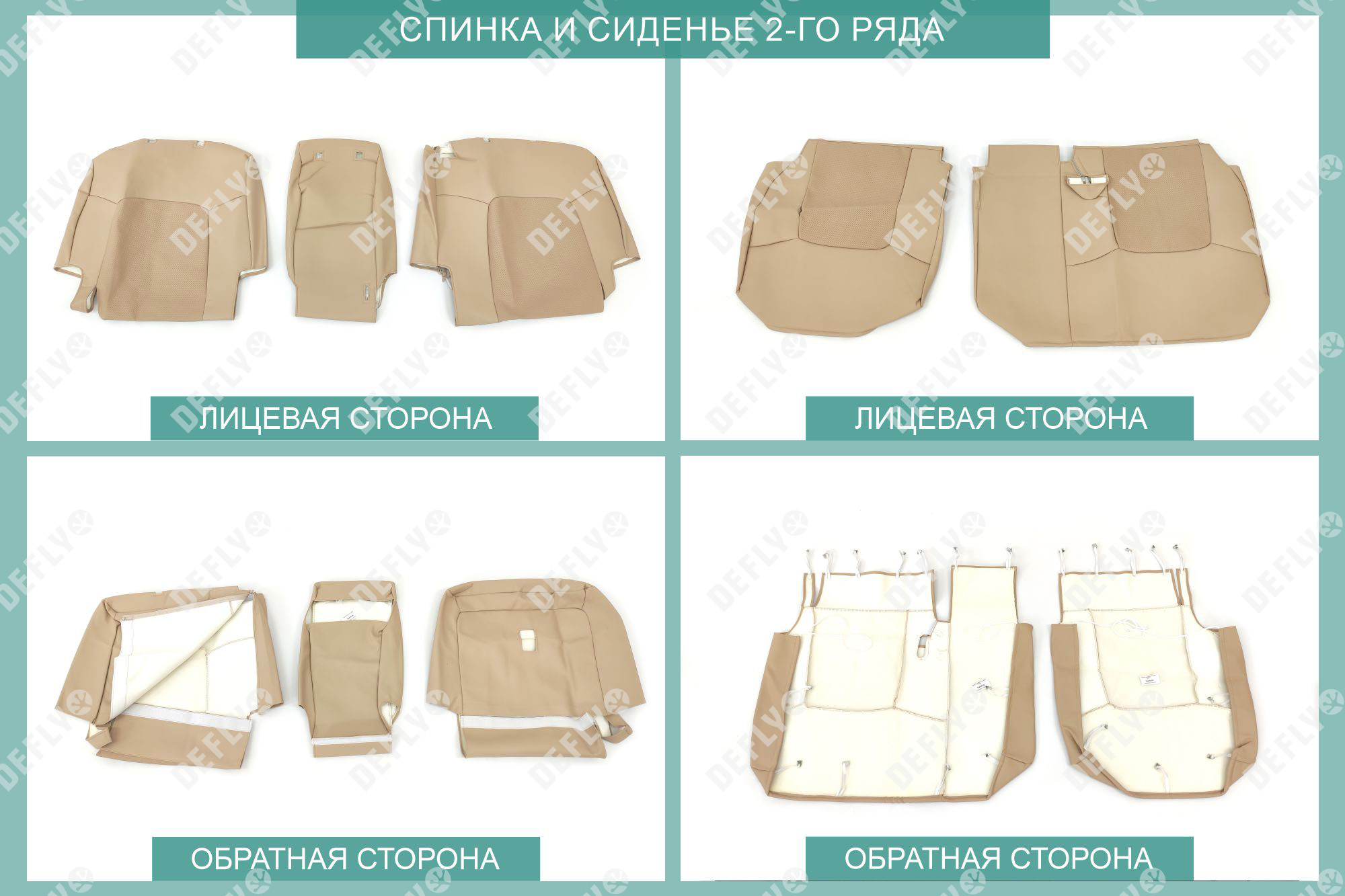 Материал: Экокожа гладкая, экокожа перфорированная, Цвет: Бежевый (оттенок ткани может незначительно отличаться). Модельные чехлы от производителя “Defly” индивидуально сконструированы для каждого автомобиля. Изготовленные по лекалам оригинальных кресел, чехлы гарантируют идеальную посадку. В комплектацию входят детали всех элементов салона: передних кресел, заднего дивана, третьего ряда сидений, подголовников, подлокотников и т.д. Спинки передних кресел дополнены карманами. Все швы и технологические отверстия обработаны на оверлоке. Чехлы не ограничивают заводскую функциональность салона. Наличие в чехлах специального распускаемого шва не препятствует своевременному и полному раскрытию подушек безопасности. Специально разработанная система креплений позволяет надежно зафиксировать изделия. Авточехлы изготовлены из двух видов экокожи бежевого цвета: гладкой и перфорированной. Перфорированная экокожа используется в центральных элементах, что обеспечивает циркуляцию воздуха. * Представленные фотографии являются примером исполнения и служат для демонстрации материалов и конструкции чехлов